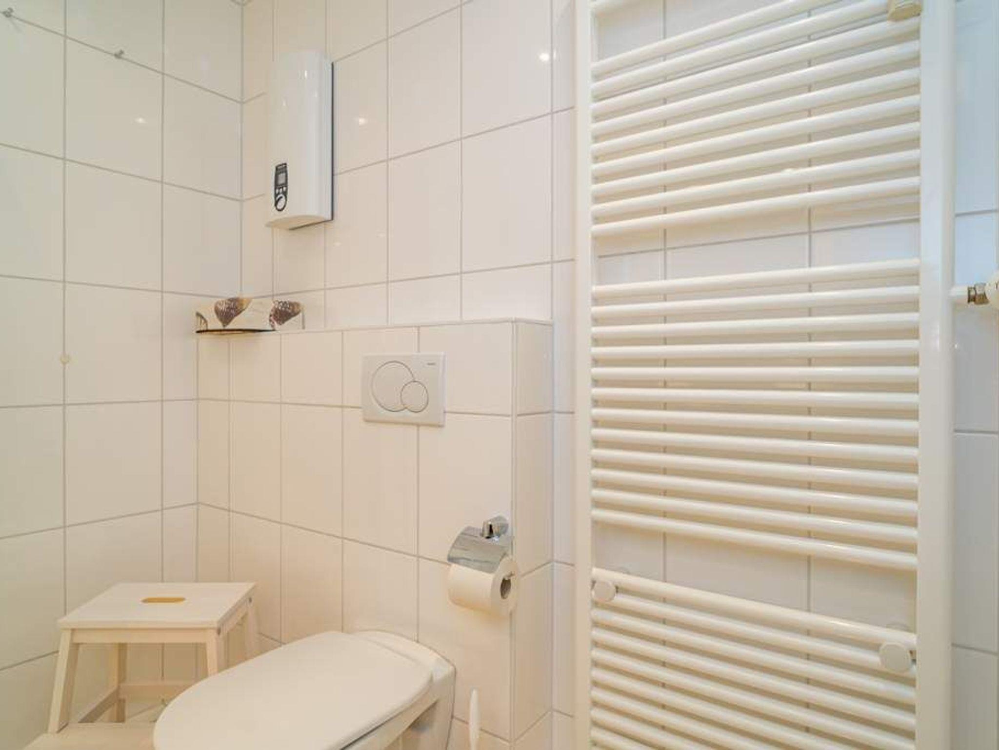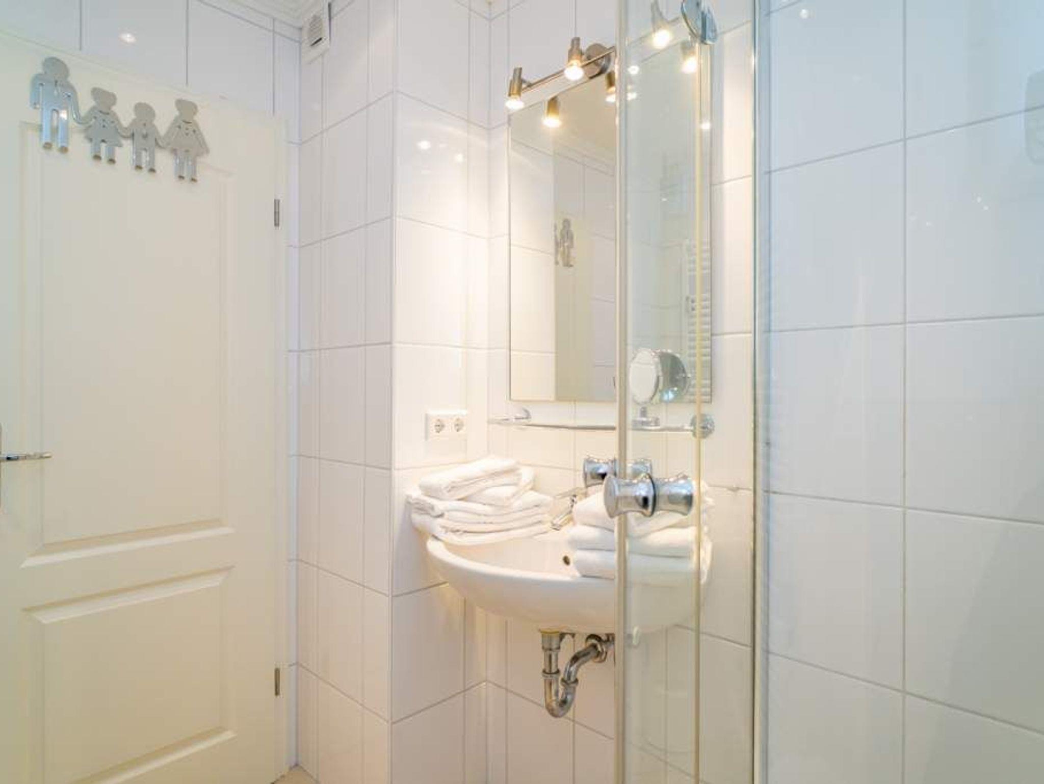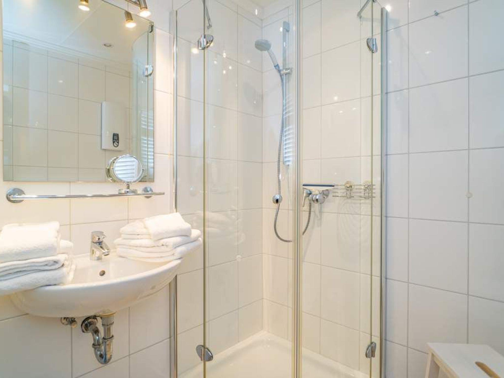 Das moderne Bad ist mit Dusche, Waschtisch, Handtuchtrockner, Fön und[nbsp][nbsp]Kosmetikspiegel komplett ausgestattet.