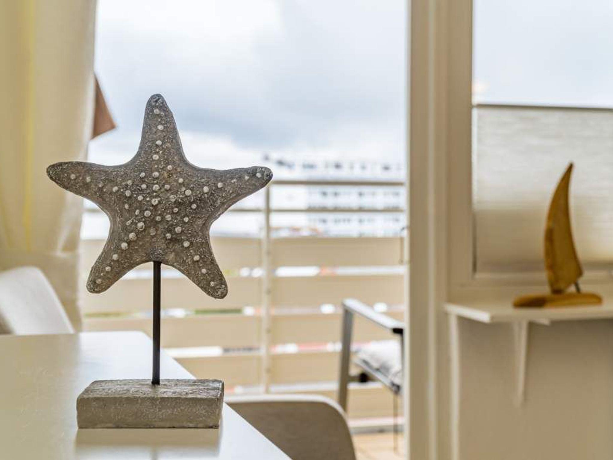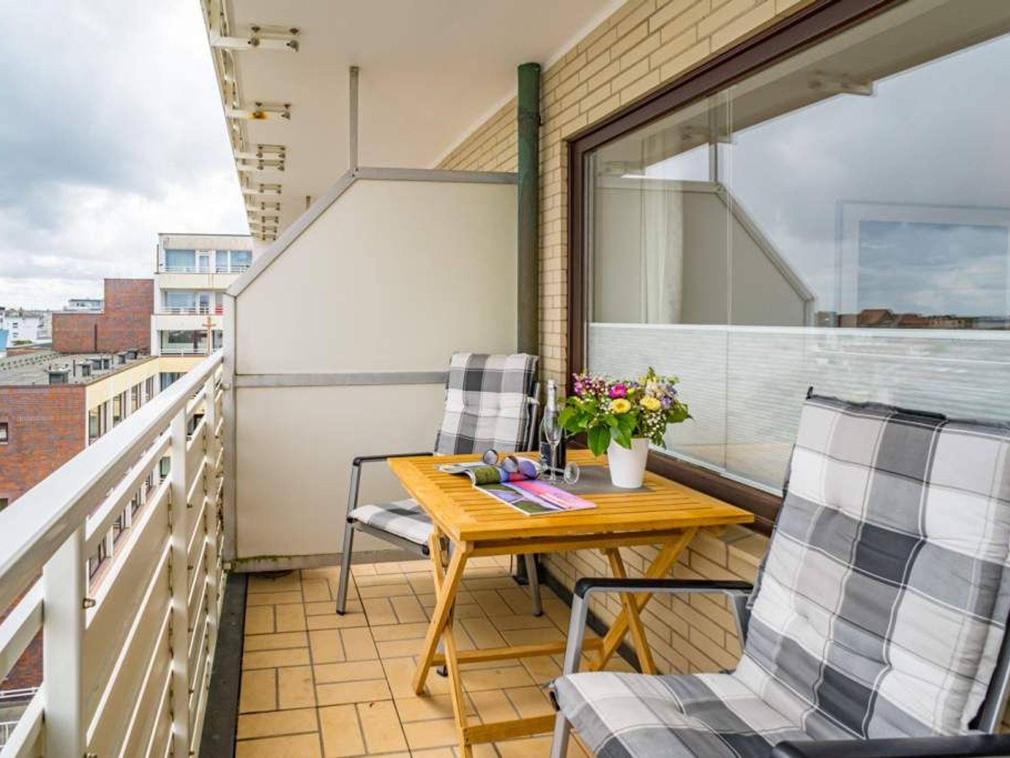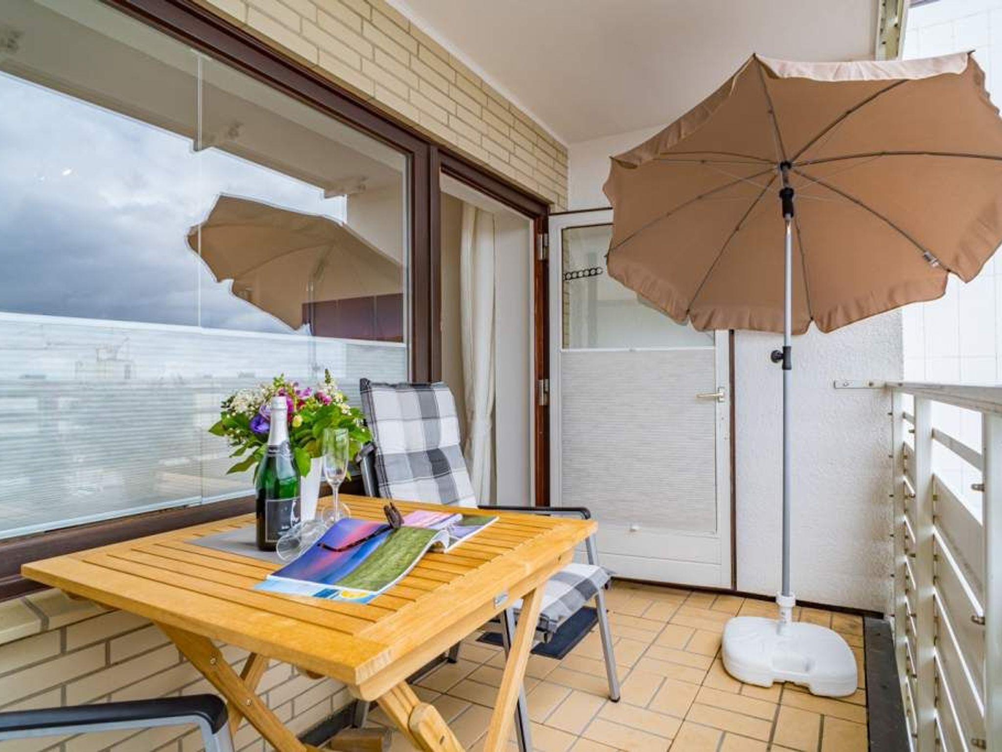 Gut ausgestattete, komplett mit Fliesen ausgelegte 2-Zimmer-Nichtraucher-Ferienwohnung, ca. 38 qm, in der 5. Etage mit Ostloggia (Morgensonne, mit Balkonmöbel und Auflagen) für max. 2 Personen.