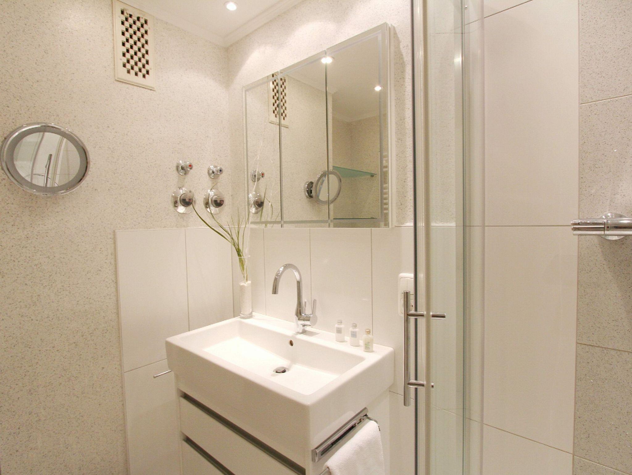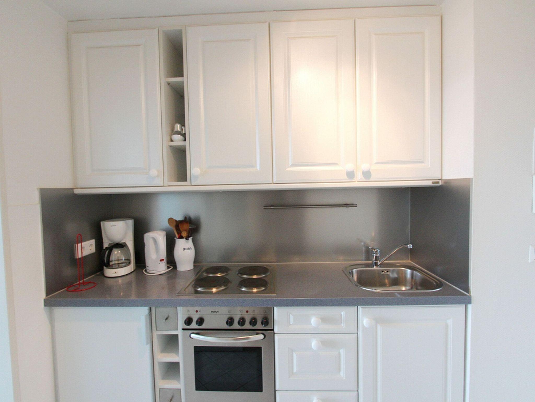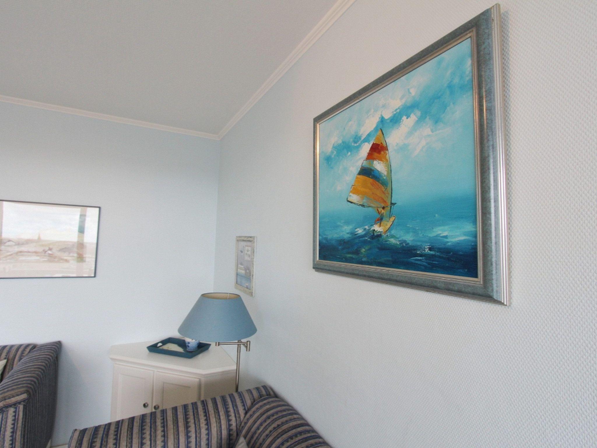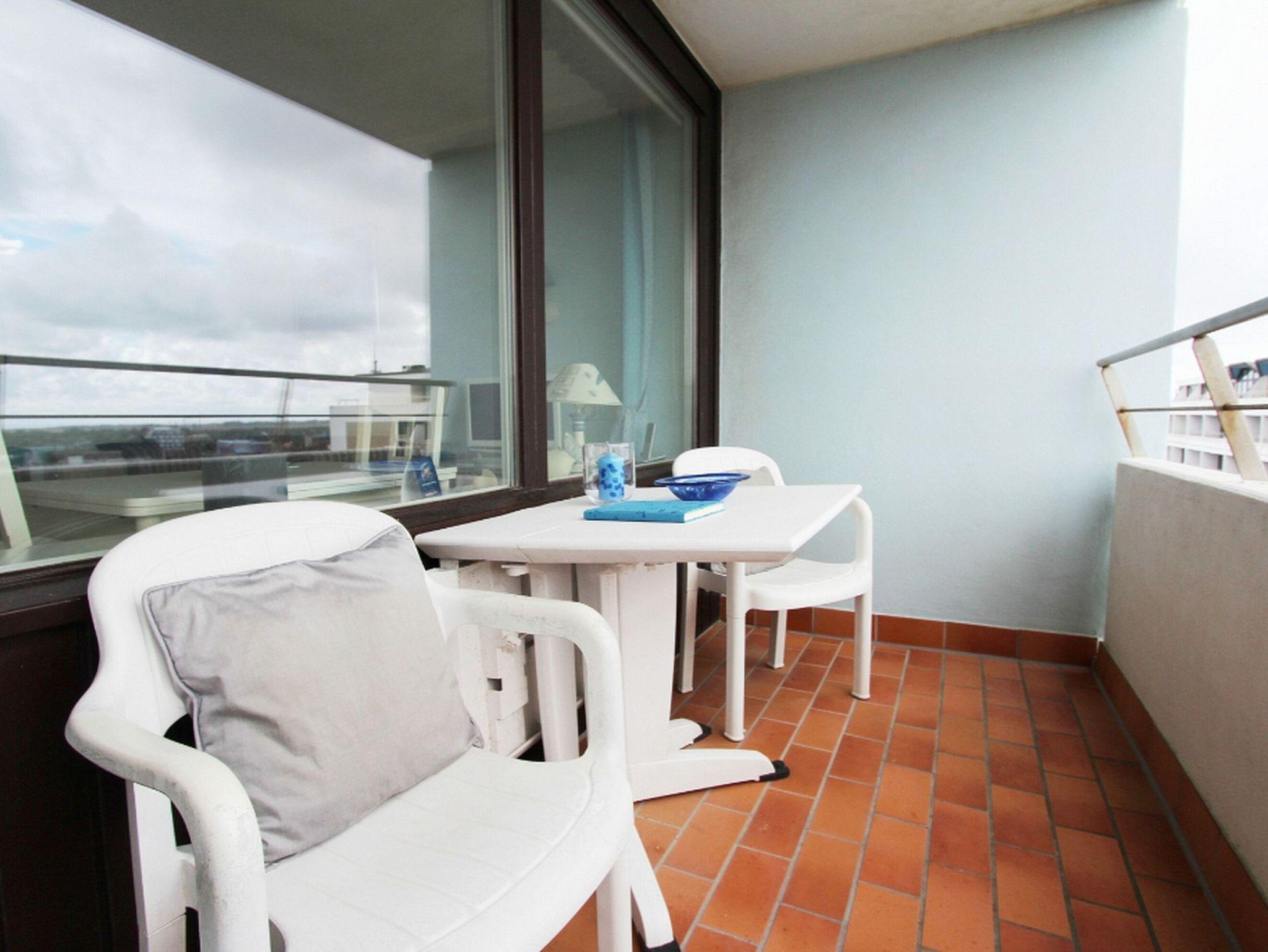 Hübsche Einzimmerwohnung in der 8. Etage im Haus Metropol zur Landseite mit herrlichem Weitblick über die Insel und die Stadt. Bei klarem Wetter auf das nordfriesische Wattenmeer bis zum Festland. Der kombinierte Wohn-/Schlafraum mit vorgelagertem großen Ostbalkon verfügt über Einzelschrankbetten, einen Essplatz mit 2 Stühlen am Fenster sowie eine Sitzgruppe. Holzfußboden verleiht dem Raum Gemütlichkeit. Das moderne Badezimmer hat eine Dusche. Im Flur befindet sich eine Einbauküche mit Backofen in der sich sie sich bequem selbst verpflegen können. Zur technischen Ausstattung gehört: ein Flachbildfernseher mit integriertem DVD Player, Radio mit IPod Station, Telefon. Ein freies WLAN Netzwerk (WEG Haus Metropol - Passwortfrei - ohne Gewähr) steht ihnen kostenfrei zur Verfügung. Wohnungsgröße 30 m².