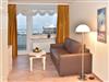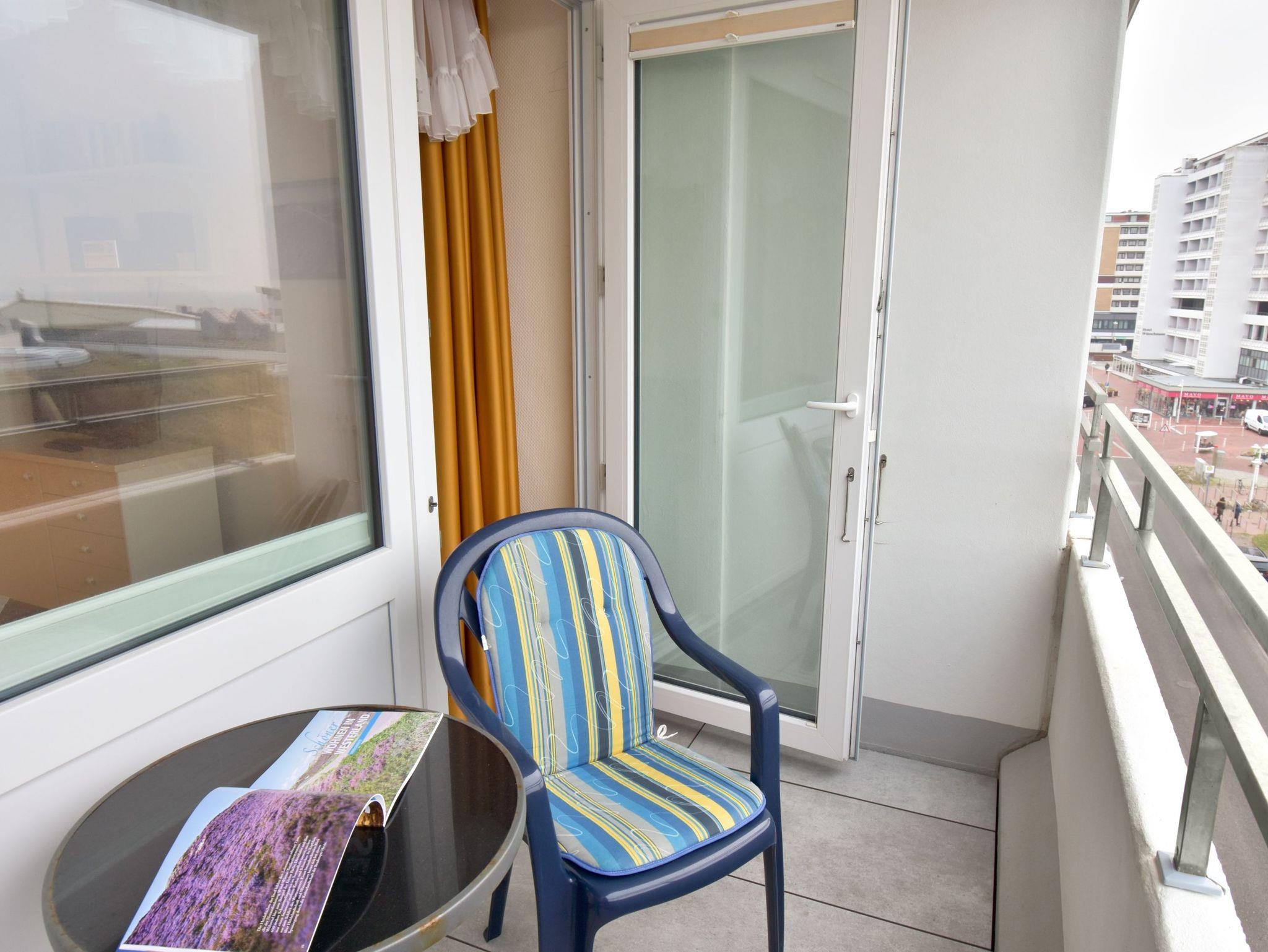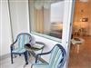 Komplett geflieste 1-Zimmer-Ferienwohnung (ca. 25 m²) in der 5. Etage zur Seeseite mit Westloggia und herrlichem Meerblick (Nachmittagssonne, mit Balkonmöbeln und Auflagen) für max. 2 Personen.