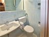 Im Bad befindet sich eine Dusche, ein WC und ein Waschtisch.