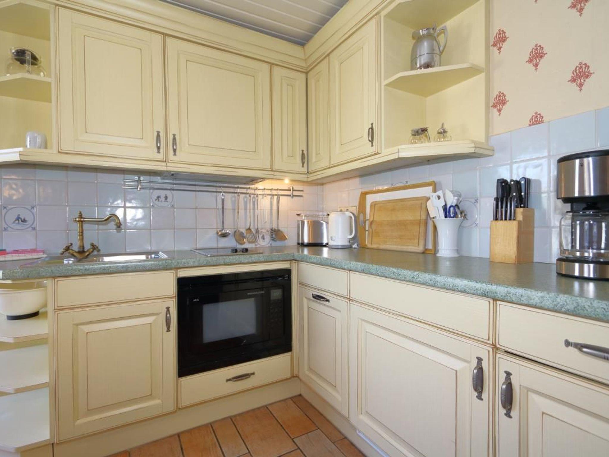 Die Wohnung ist für bis zu vier Personen nutzbar. Das Wohnzimmer hat eine Couchgarnitur mit Ottomane, die auch als weitere Schlafgelegenheit dient. Der Küchenbereich mit dem Essplatz ist offen vom Wohnzimmer aus zugänglich. Die gesamte Wohnung ist im Laura Ashley Stil eingerichtet und hat viele liebevolle Details. Die Küche ist hochwertig und komplett ausgestattet. Das Schlafzimmer hat ein Doppelbett und einen Einbauschrank. Im Bad ist eine Dusche. Die Wohnung wird über einen eigenen Außeneingang betreten, daneben befindet sich die eigene möblierte Terrasse.