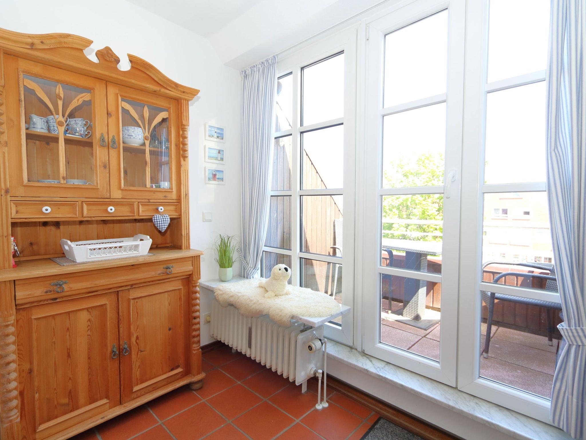 Das Appartementhaus, in dem sich diese Ferienwohnung befindet, steht an der Fußgängerzone, die in die Friedrichstr. übergeht. Das Appartement ist in der 2. Etage und ist ohne Stufen mit Fahrstuhl zu erreichen. Der Strandübergang Friedrichstraße ist fußläufig in 5 Minuten erreichbar und ca 600 Meter entfernt. Es ist ein 2-Zimmer Appartement für bis zu 4 Personen auf ca.46qm Wohnfläche.