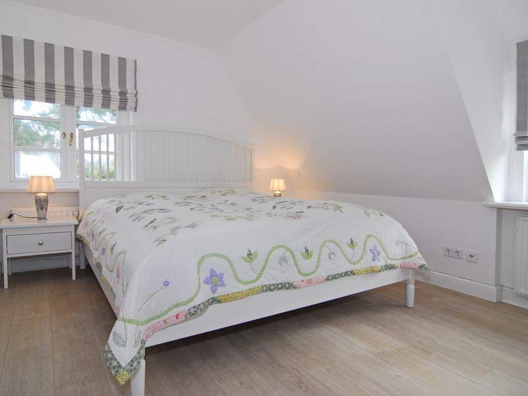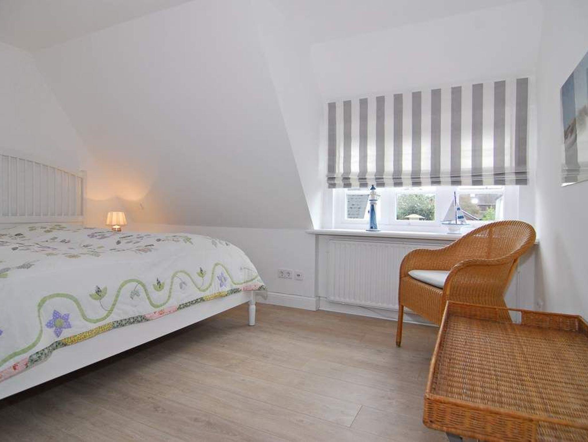Hübsche Doppelhaushälfte mit eingewachsenem Garten in Alt-Westerland für max. 4 Personen, Nichtraucher, ca. 100 m². EG: Wohnraum mit Couchecke und Essplatz, Kabel-TV, Radio und W-LAN (ohne Gewähr), Zugang zur großen Südterrasse mit Gartenmöbeln und Strandkorb (April-Oktober), separate Küche mit Backofen, Mikrowelle, Geschirrspüler und Nespresso-Maschine, Duschbad/WC und Wasch-/Trockner, Flur mit Garderobe. OG: 1 Schlafzimmer mit Doppelbett (2x90x200), offener Bereich (vom Flur abgegehender Bereich) mit Kleiderschrank, 1 Schlafzimmer mit Doppelbett (2x90x200), Kleiderschrank und TV, Vollbad/WC (mit Duschvorrichtung). Rauchen und Tierhaltung ist nicht gestattet. 2 PKW-Stellplätze am Haus vorhanden. Bettwäsche und Handtücher sind zur Anreise aufgezogen.