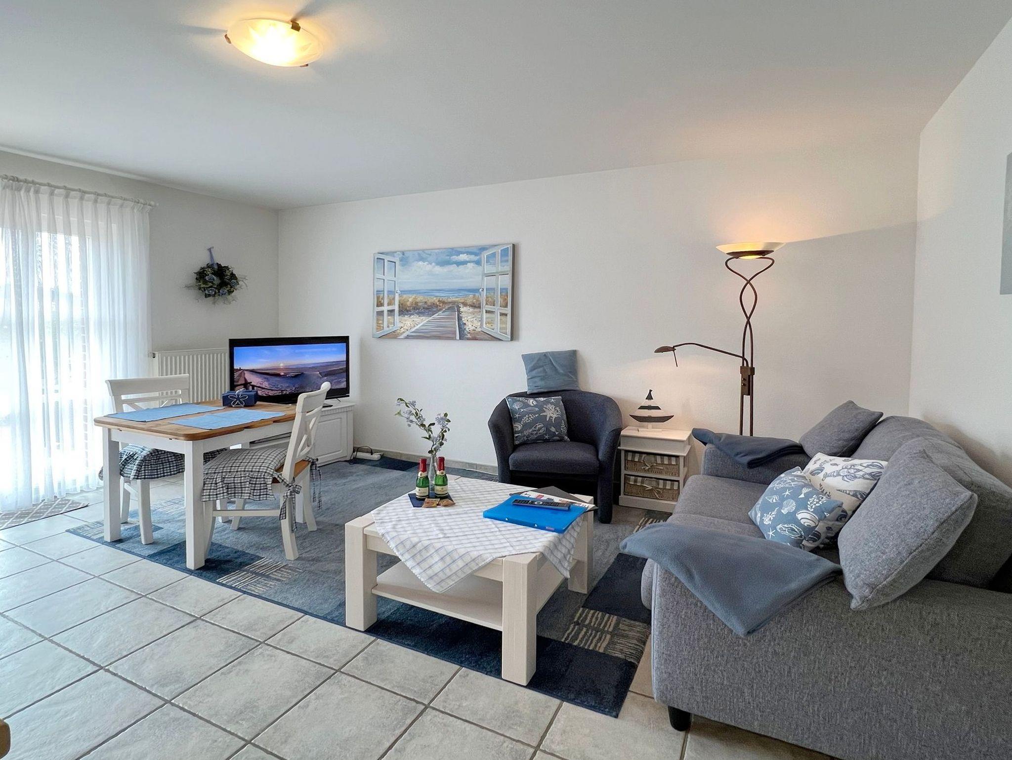 2 Zimmerwohnung (EG) mit Terrasse, Wohnzimmer mit Sitzgruppe, Eßecke und Fernseher, offene Küchenzeile mit Geschirrspüler und Backofen, Doppelschlafzimmer, schönes helles Duschbad, Sauna mit im Haus, Nichtraucher, keine Haustiere erlaubt, allergikerfreundlich, 1PKW-Stellplatz, Wäsche ab 7 ÜN inklusive .