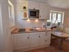Die moderne Küchenzeile mit Essplatz ist bestens ausgestattet ? mit einem 2-Platten-Ceranfeld, Mikrowelle, Kühlschrank samt 3-Sterne-Gefrierfach sowie Kaffeemaschine, Wasserkocher und Toaster.