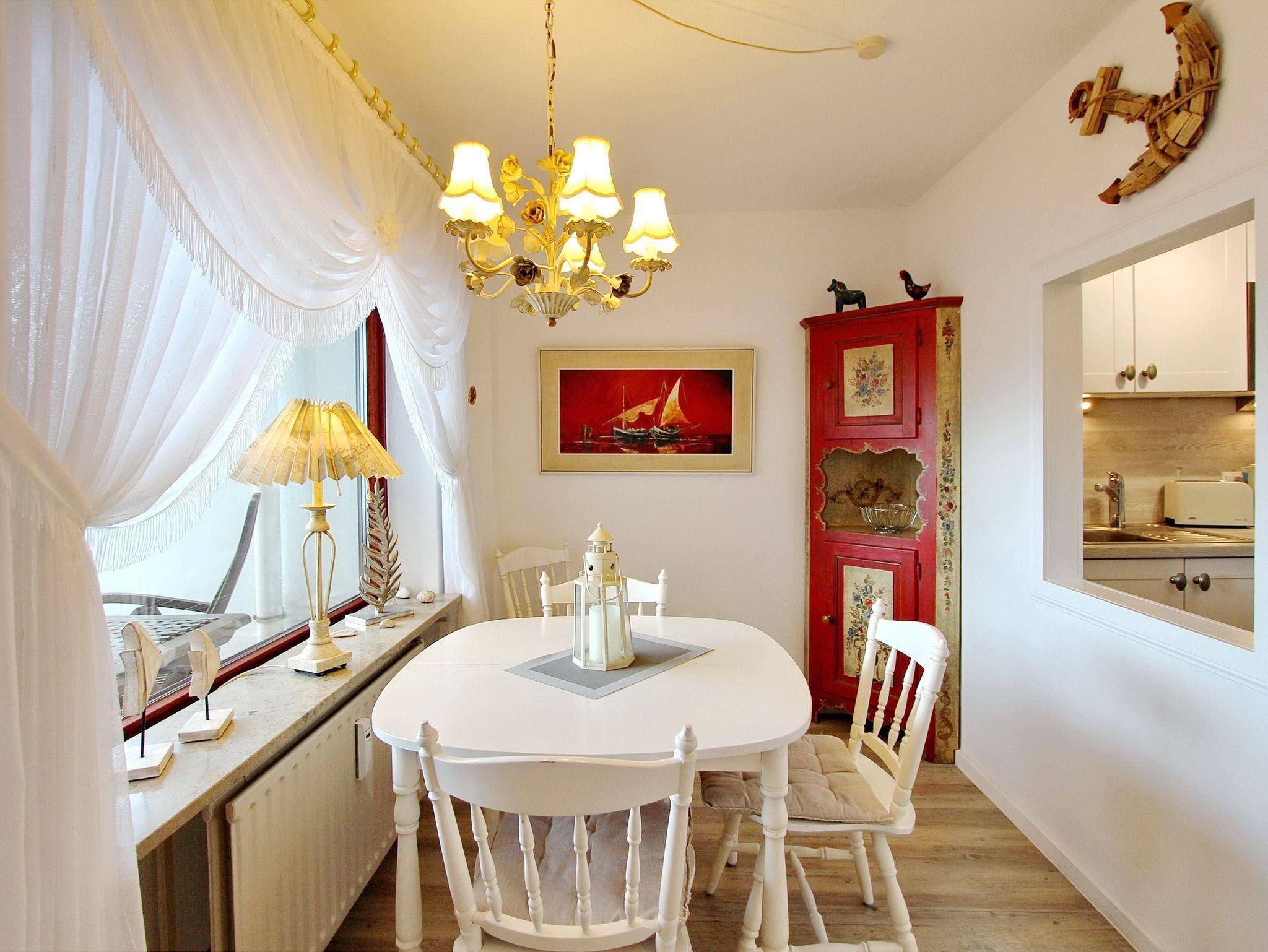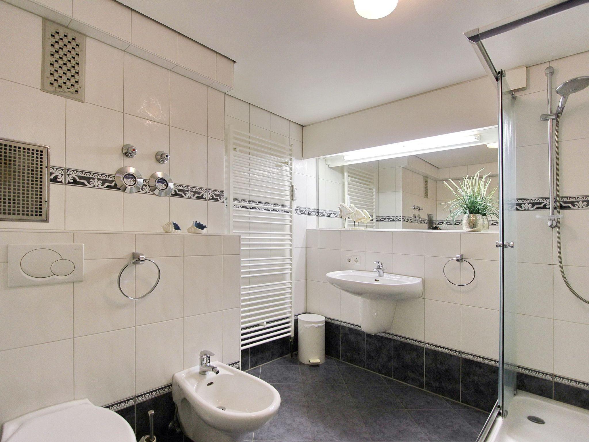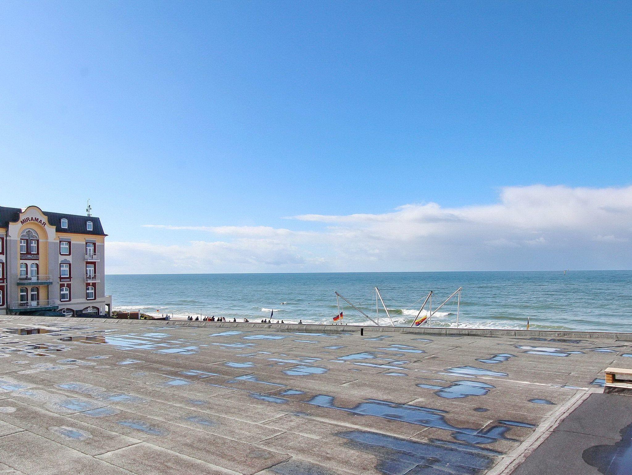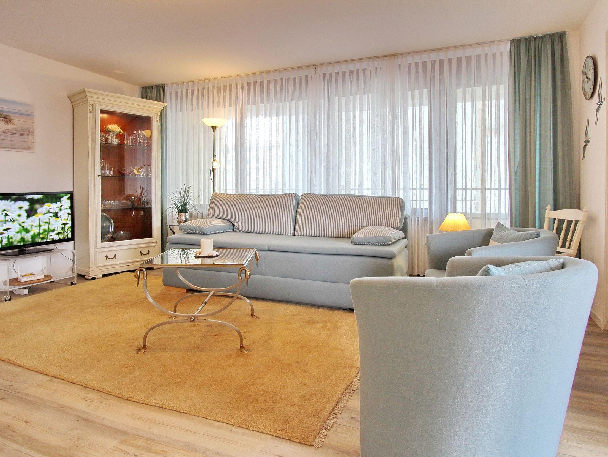 Die schöne, freundlich eingerichtete Zweizimmerwohnung in der 1. Etage im Haus Metropol bietet Ihnen einem schönen Blick auf die Nordsee. Das Wohnzimmer ist aufgrund der großen Fensterfronten und des Balkons lichtdurchflutet und verfügt über eine gemütliche Couchgarnitur mit Schlaffunktion und einem Tisch, zwei Cocktail-Sessel, sowie einem großen Smart TV. Der Essplatz mit vier Stühlen befindet sich zwischen der Durchreiche zur Küche und dem möblierten Südbalkon. Das separate Schlafzimmer mit eigenem Ostbalkon ist mit einem Doppelbett und einem Schrank mit reichlich Stauraum ausgestattet. Das Bad ist vom Flur und Schlafzimmer begehbar und verfügt über eine Eckdusche und ein Bidet und einem großem Handtuchheizkörper In der Küche mit Geschirrspüler, Mikrowelle, Backofen und Ceranfeld können Sie sich selbst verpflegen und die Speisen durch die Durchreiche bequem zum Essplatz weitergeben. Zur technischen Ausstattung dieser Nichtraucherwohnung gehört: ein Radio mit CD Player. Haustiere sind nicht gestattet. Der freie WLAN Hot Spot des Hauses (WEG Haus Metropol - Passwortfrei - ohne Gewähr) steht Ihnen kostenfrei zur Verfügung. Die Wohnung hat eine Größe von ca. 74 m².