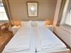 Das Schlafzimmer hat ein Doppelbett (Einzelmatratzen, Liegefläche 90 x 2m), einen weiteren Flachbild-TV und ein Duschbad/WC en Suite.