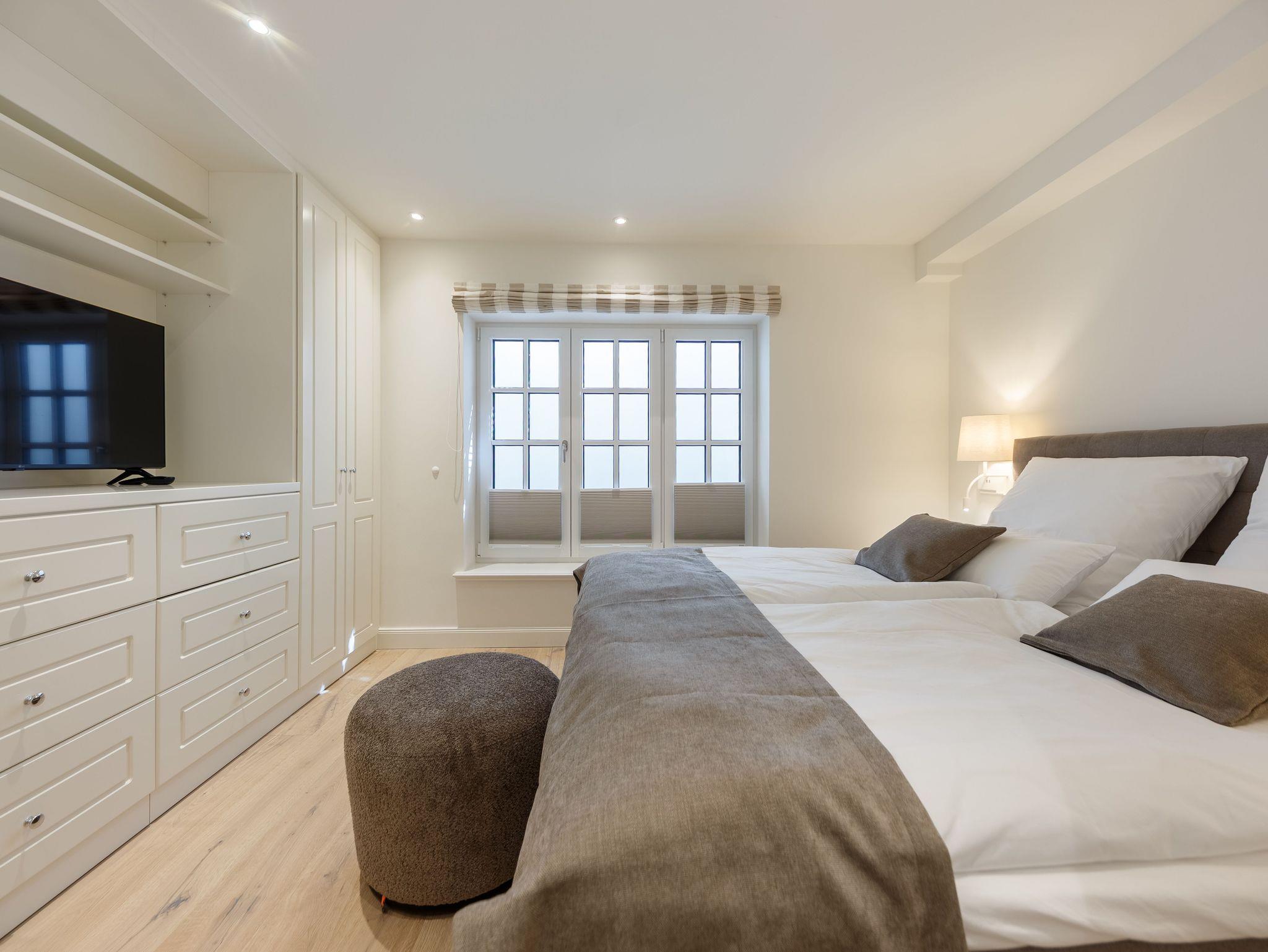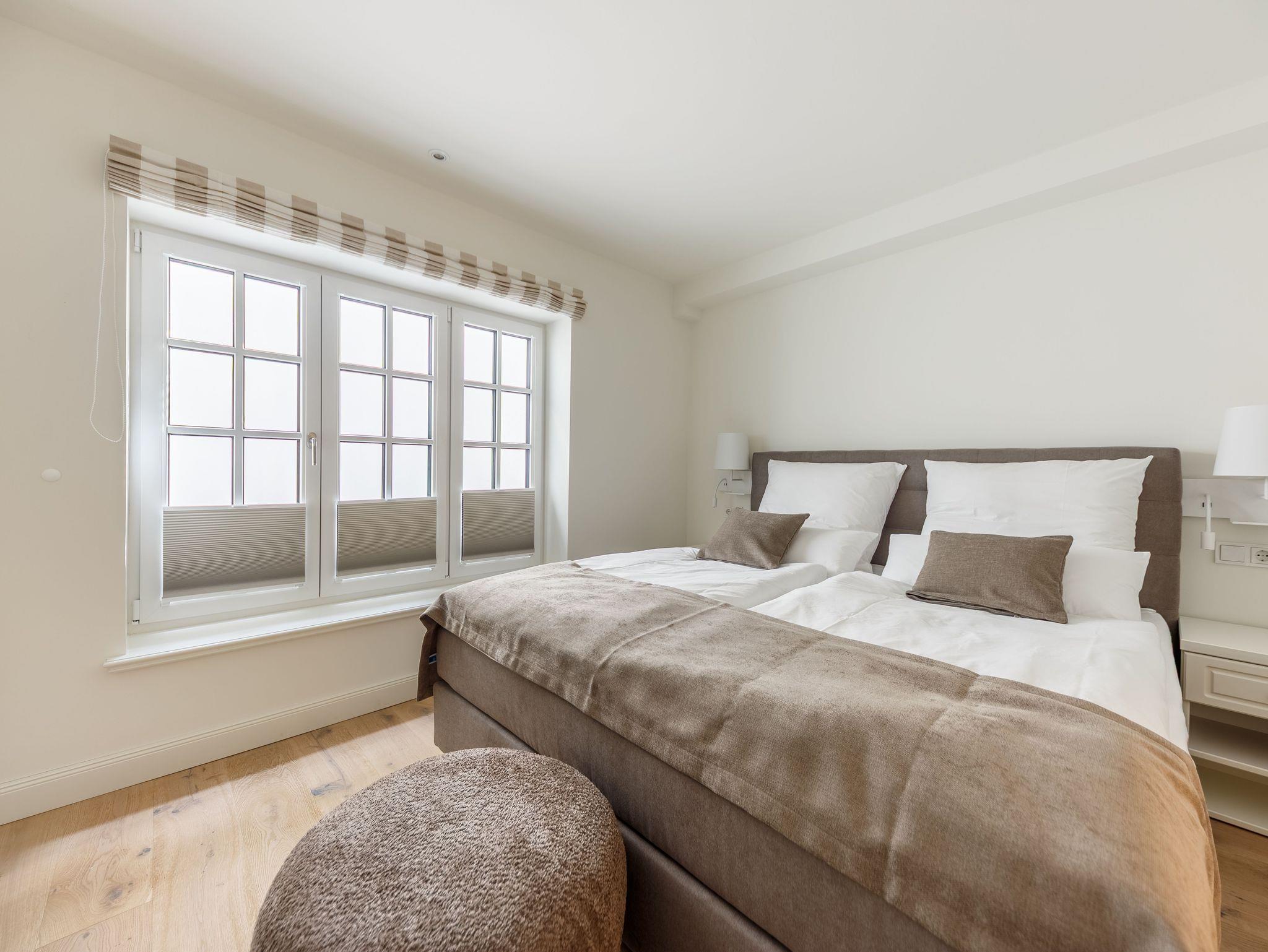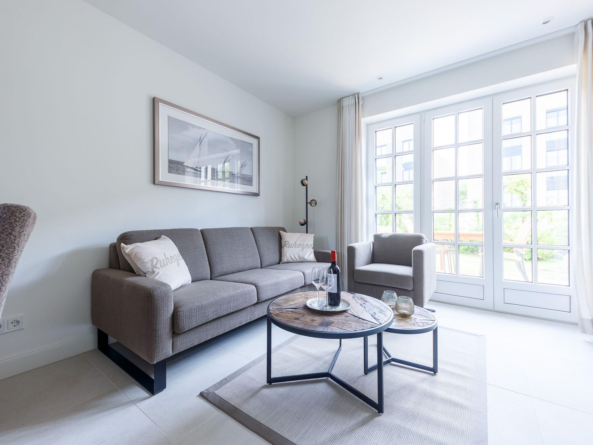RUHIG, ZENTRAL GELEGEN. NEU und CHIC! Reihenhaus mit möblierter TERRASSE nach Süden, KAMINOFEN und schöner Ausstattung. Für bis 4 Personen. Mit elegantem und gemütlichem Wohnbereich mit hochwertiger Einbauküche und Eßplatz, 2 modernen Bädern (eins mit Wanne und Dusche, eins mit Dusche) und zusätzlichem Gäste-WC. Der Kaminofen sorgt in der Herbst- und Winterzeit für heimeliges Ambiente (für Brennholz muß - wenn Kaminofennutzung gewünscht ist - selbst gesorgt werden). Das Haus hat einen separaten Eingang und verfügt über einen Parkplatz vor dem Haus. Vom Haus aus können Sie das Ortszentrum (Friedrichstrasse) in ca. 10 Minuten und den Strand in ca. 15 Minuten zu Fuß erreichen (zum Strand sind es ca. 1,2 km). ca. 68 qm Fläche (Sylter Maß).