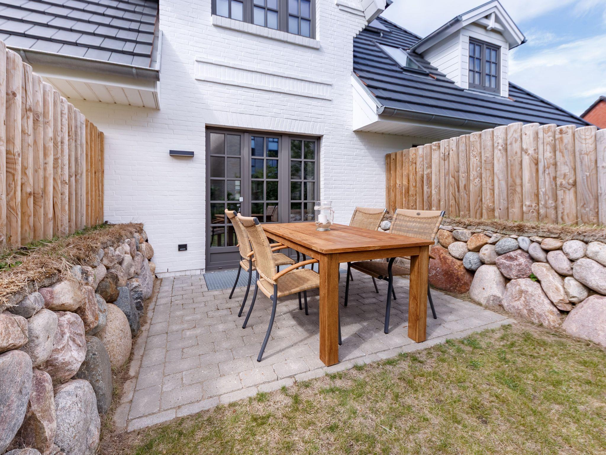 RUHIG, ZENTRAL GELEGEN, NEU und CHIC! Reihenhaus mit möblierter TERRASSE nach Süden mit Minigarten, KAMINOFEN und schöner Ausstattung. Für bis 4 Personen (incl. Kindern), mit elegantem und gemütlichem Wohnbereich mit Einbauküche und Eßplatz, 2 modernen Bädern (eins mit Wanne und Dusche, eins mit Dusche) und zusätzlichem Gäste-WC. Der Kaminofen sorgt in der Herbst- und Winterzeit für heimeliges Ambiente (für Brennholz muß - wenn Kaminofennutzung gewünscht ist - selbst gesorgt werden). Das Haus hat einen separaten Eingang und verfügt über einen Parkplatz vor dem Haus. Vom Haus aus können Sie das Ortszentrum (Friedrichstrasse) in ca. 5 Minuten und den Strand in ca. 10 Minuten zu Fuß erreichen (zum Strand sind es ca. 1,2 km). Ca. 68 qm Fläche (Sylter Maß). WLAN incl..