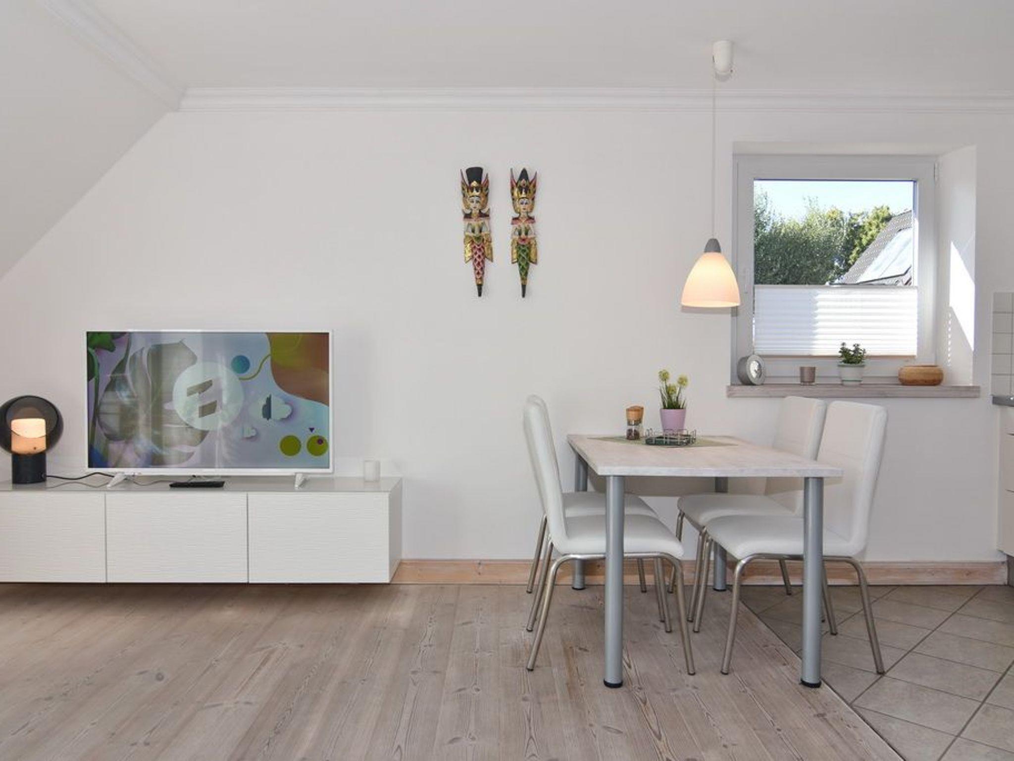 Hell, geräumig, ruhig - einfach eine tolle Wohnung. Im Obergeschoß des Einfamilienhauses Louise befindet sich die 2-Zimmer-Wohnung mit ca. 46qm. Das Wohnzimmer verfügt über eine gemütliche Sitzecke, eine voll ausgestattete Küchenzeile mit Geschirrspüler und Backofen, einem Essplatz, Flat-TV und einem herrlichen Südbalkon mit Balkonmöbeln und Markise. Über den Wohnungsflur mit Garderobe gelangen Sie in das Schlafzimmer mit Doppelbett (180x200) und Kleiderschrank sowie das Duschbad / WC. Ein Pkw-Stellplatz sowie Fahrradständer befinden sich vor dem Haus. WLAN (ohne Gewähr) ist im Haus vorhanden. Bettwäsche und Handtücher sind zur Anreise aufgezogen.
