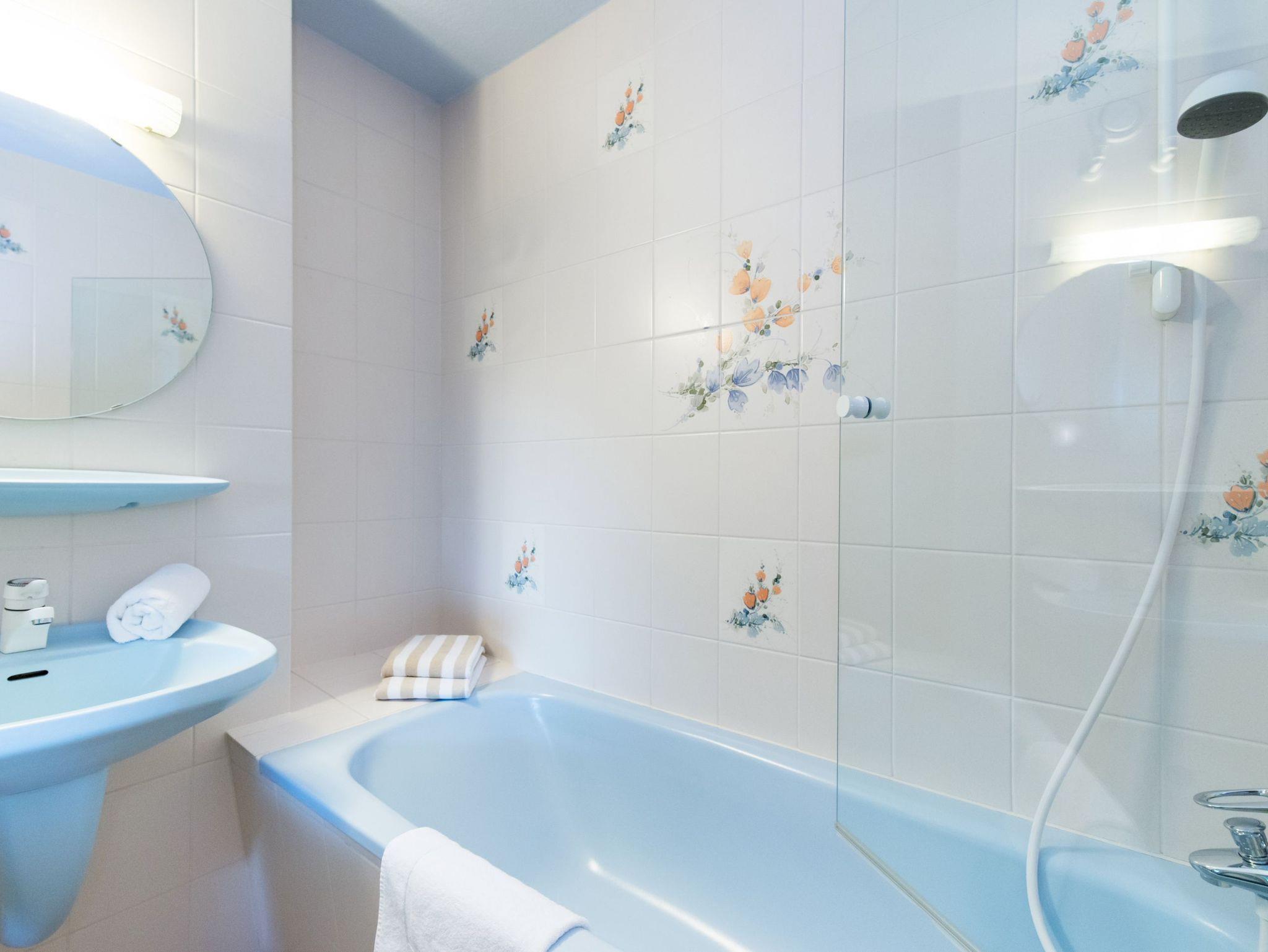 Im 2. Bad befinden sich eine Wanne, ein WC und ein Wachtisch.