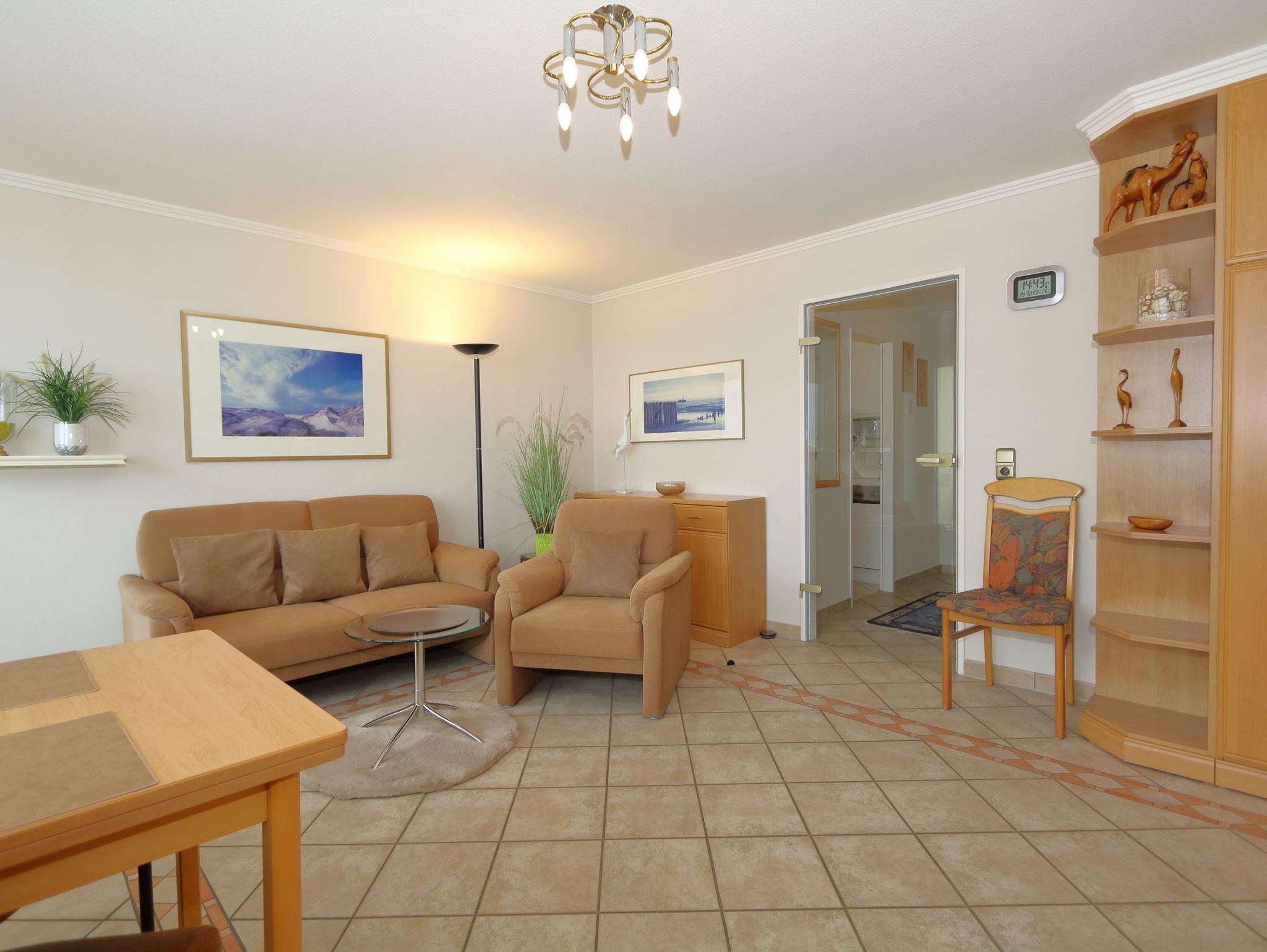 Das gut aufgeteilte Appartement verfügt über eine separate Einbauküche, ein Badezimmer mit Dusche, einen Ostbalkon mit eingeschränktem Blick über Westerland und einen praktischen Schlaf-und Wohnbereich.