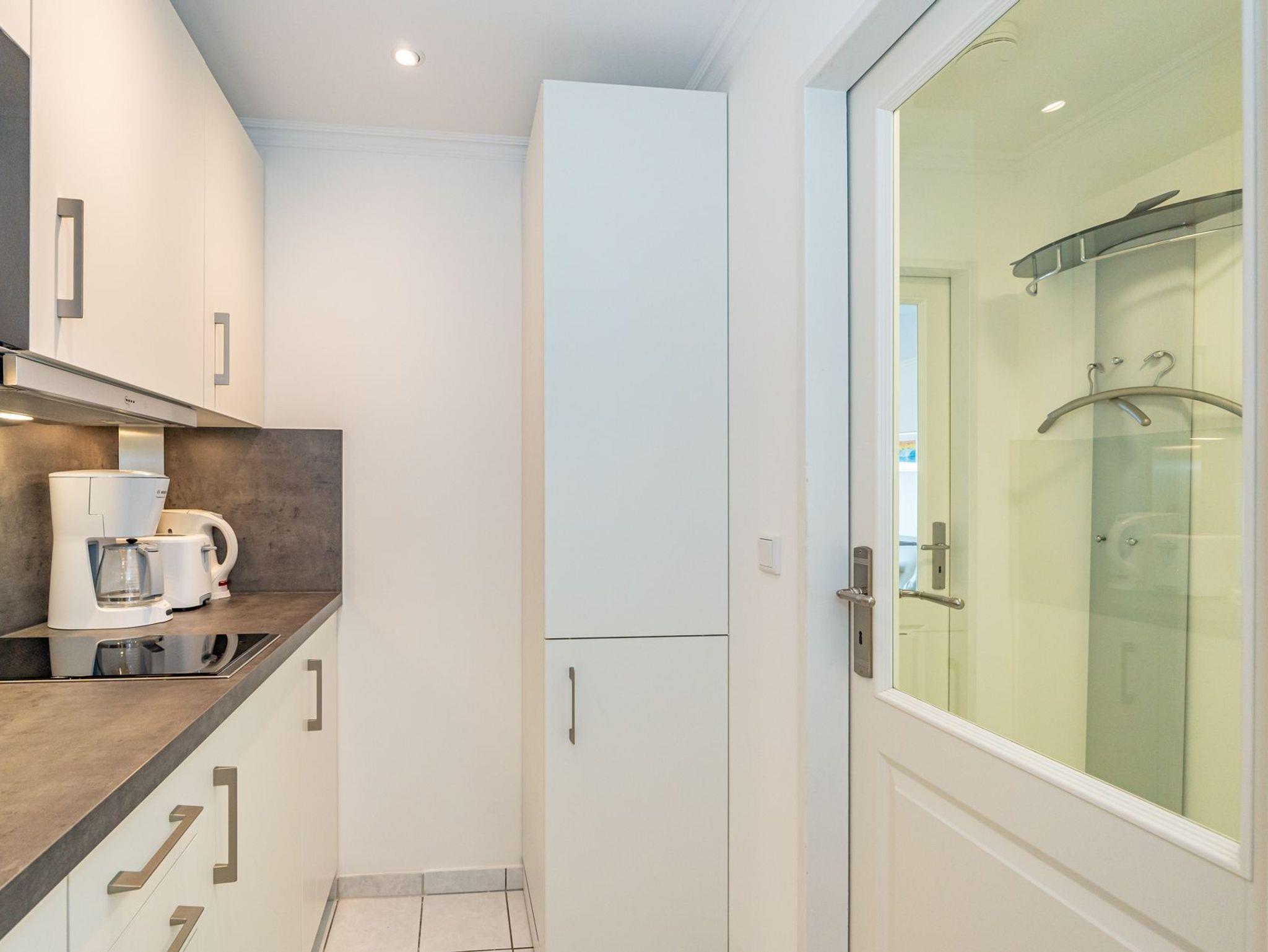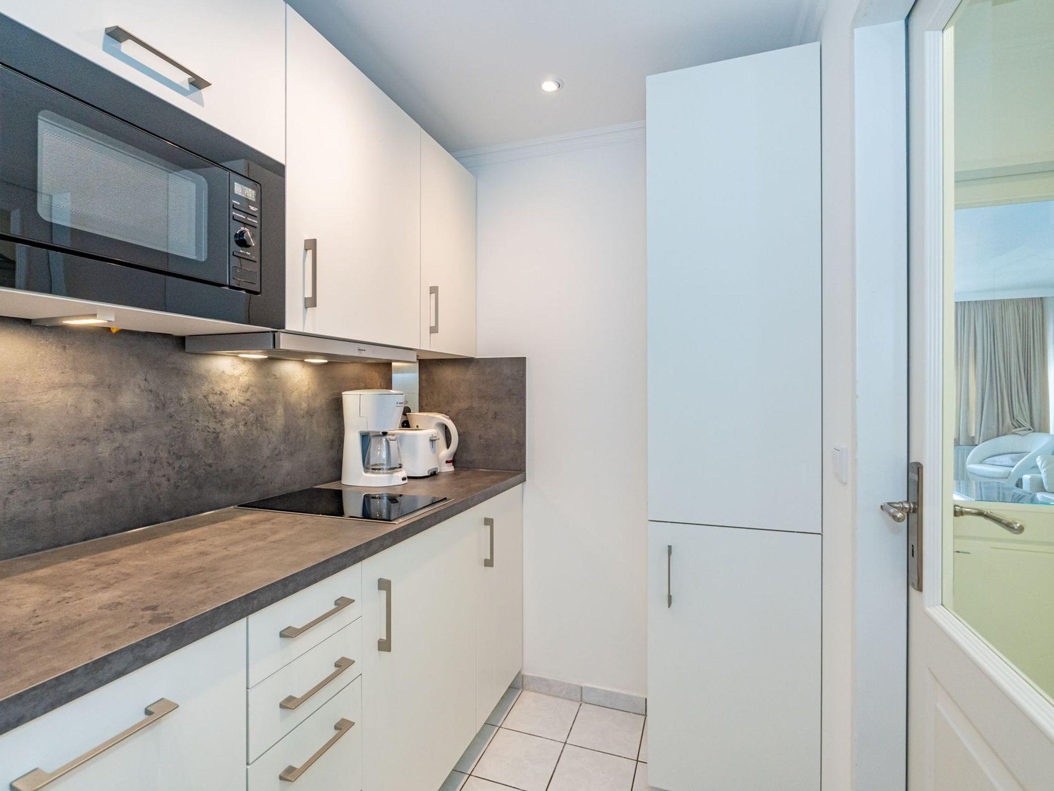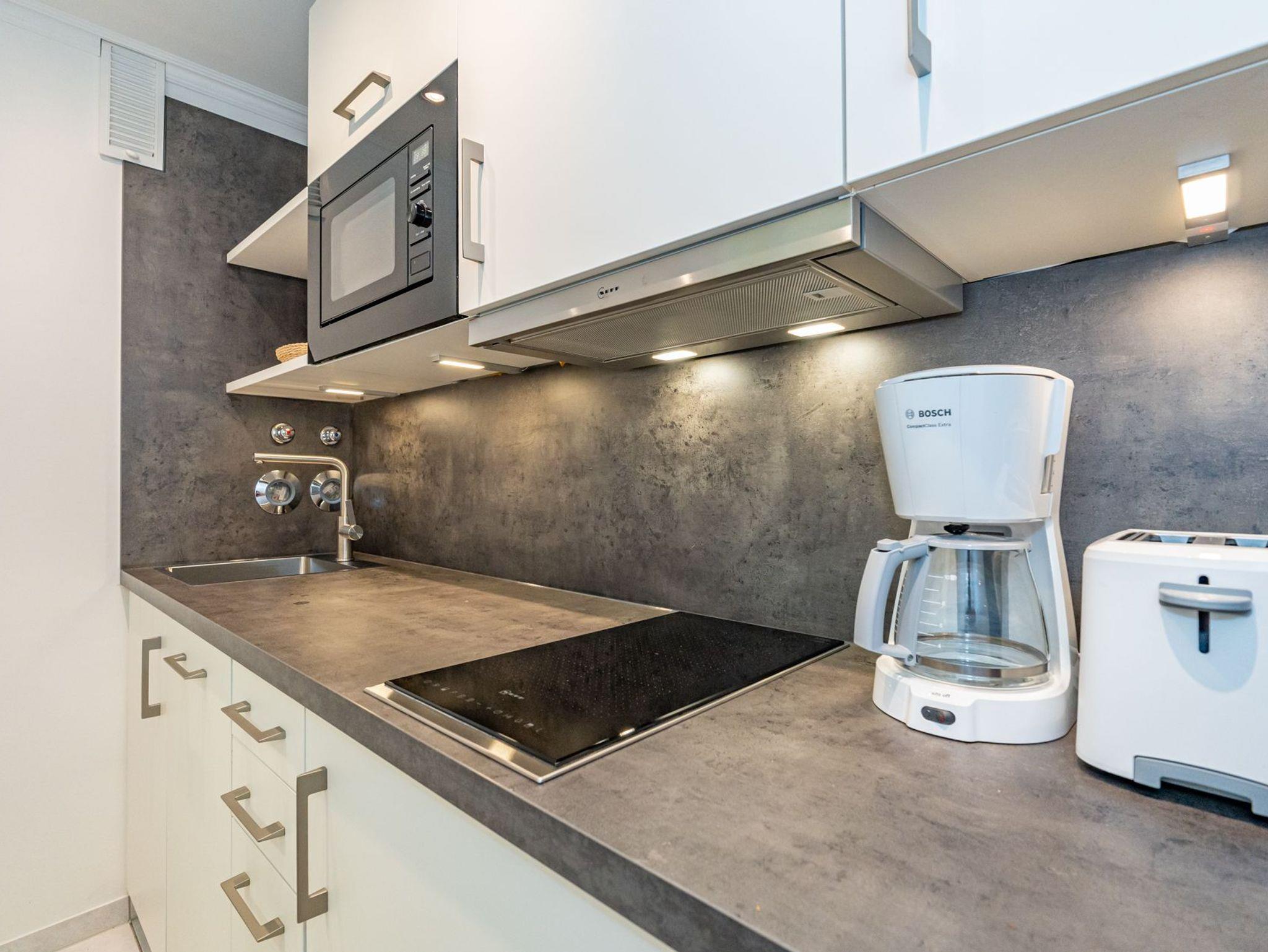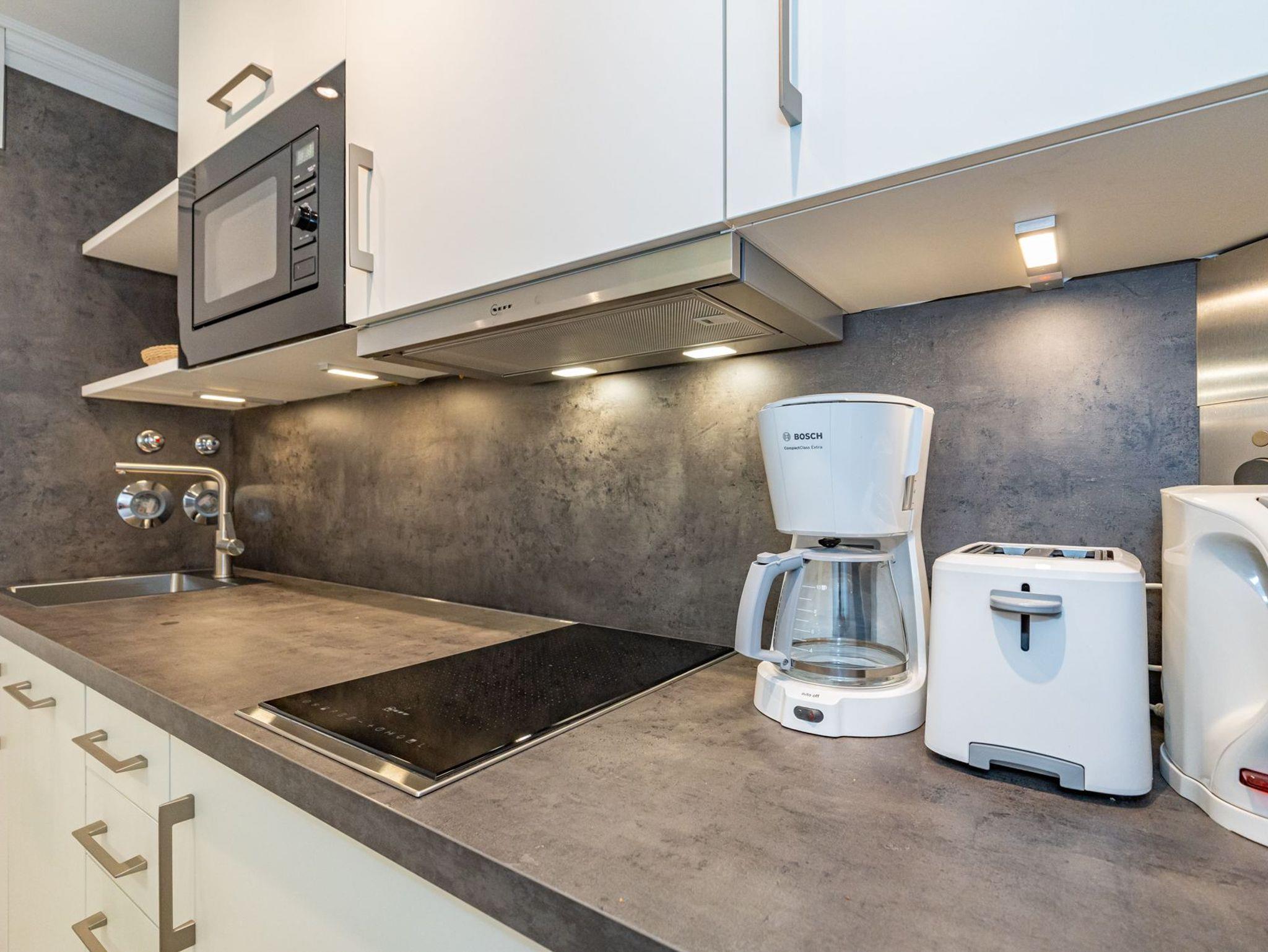 Die Küche hat eine Mikrowelle, ein Cerankochfeld, einen Geschirrspüler und einen Kühlschrank mit 3*-Gefrierfach. Kaffeemaschine, Wasserkocher und Toaster gehören zur Grundausstattung.