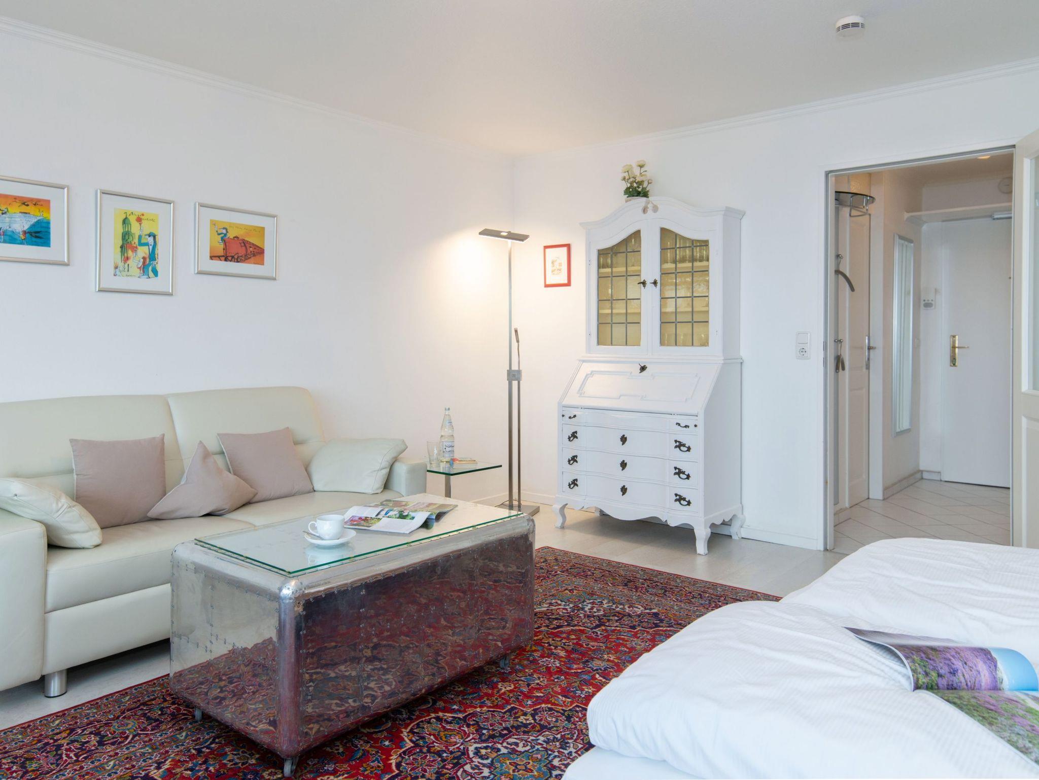 Angeboten wird Ihnen ein 1-Zimmer-Nichtraucher-Appartement (ca. 43 qm) in der 3. Etage mit Meerblick und Westloggia (Nachmittagssonne/Sonnenuntergang) für 2 Personen.
