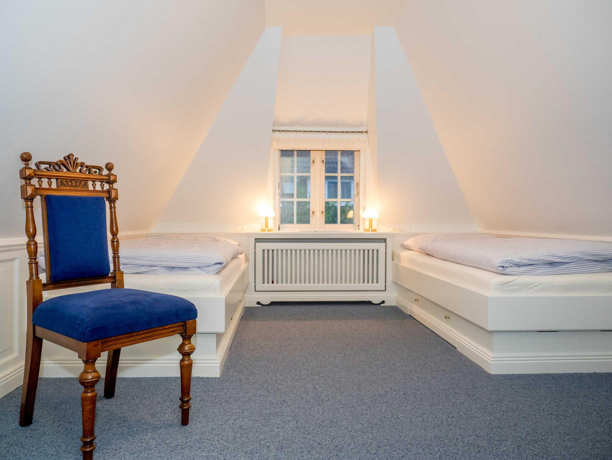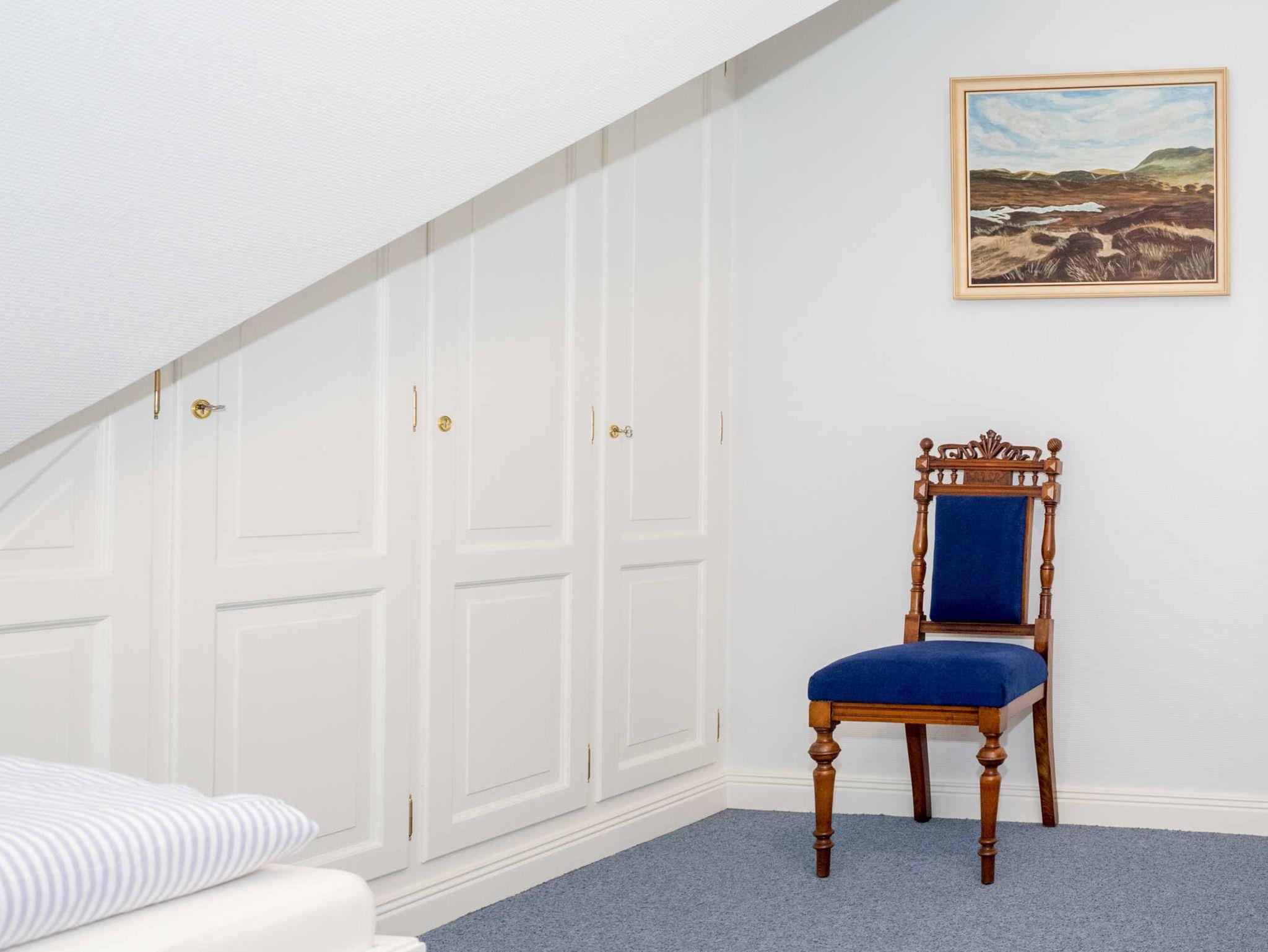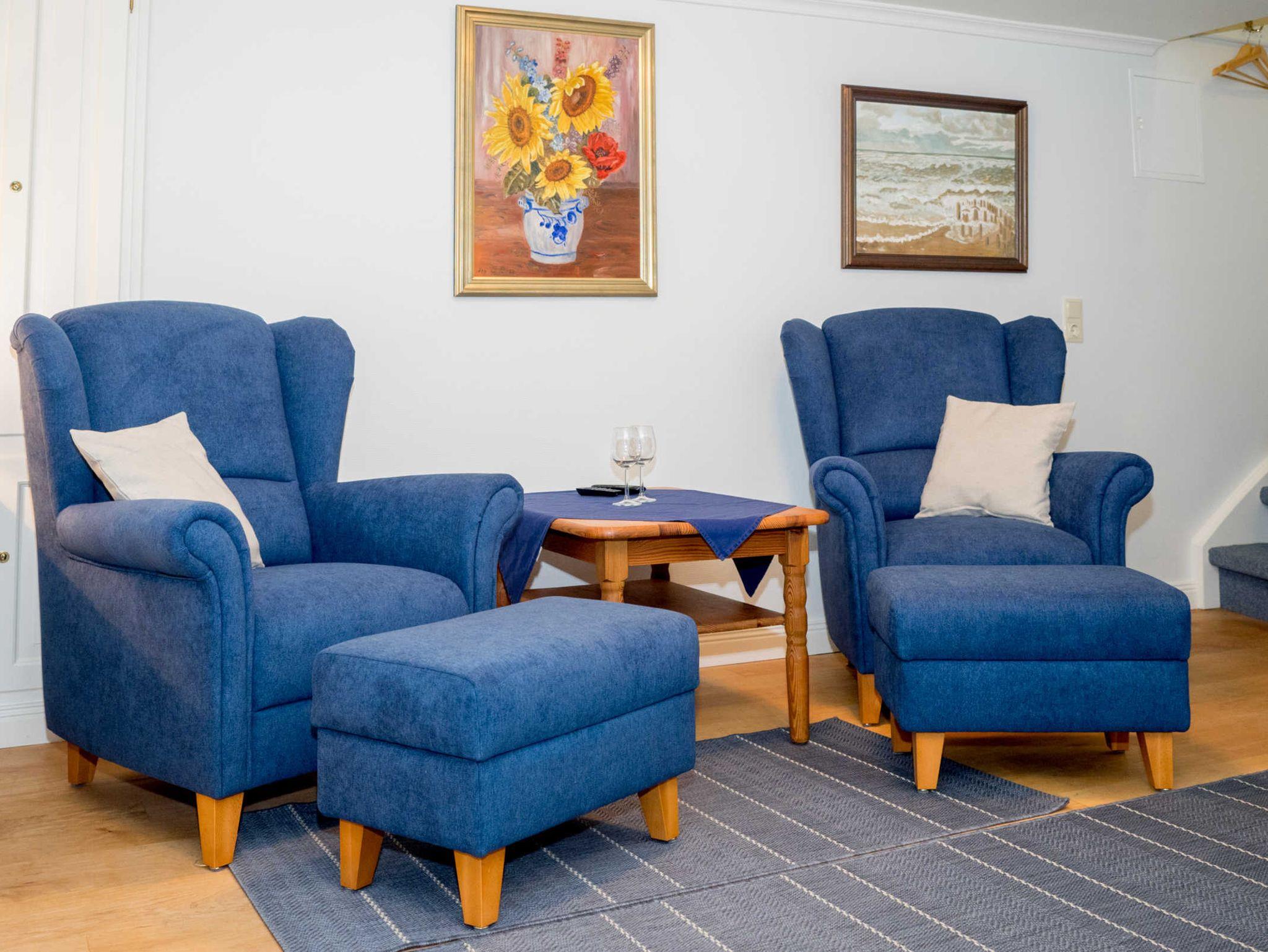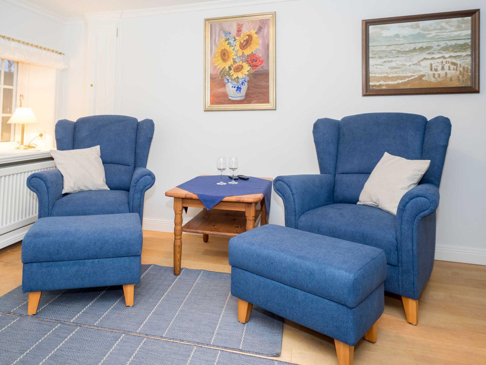 Die Ferienwohnung für 1-2 Person (ca. 37m²) befindet sich im Parterre und Obergeschoss (Dachschrägen) eines 1 1/2-geschossigen reetgedeckten Friesenhauses mit 2 Wohneinheiten. Wohnzimmer mit 2 gemütlichen Sesseln und Hocker, Esstisch mit 3 Stühlen, Einbauschränken, Parkettfußboden. Schlafzimmer mit Teppichboden (1. Etage) mit 2 getrennt stehenden Einzelbetten. Gartenbenutzung mit eigenem Strandkorb und Gartenmöbeln. Haustiere sind nicht erlaubt! Auf Rücksicht der nachfolgenden Gäste ist das Rauchen in diesem Objekt nicht gestattet. WLAN vorhanden.