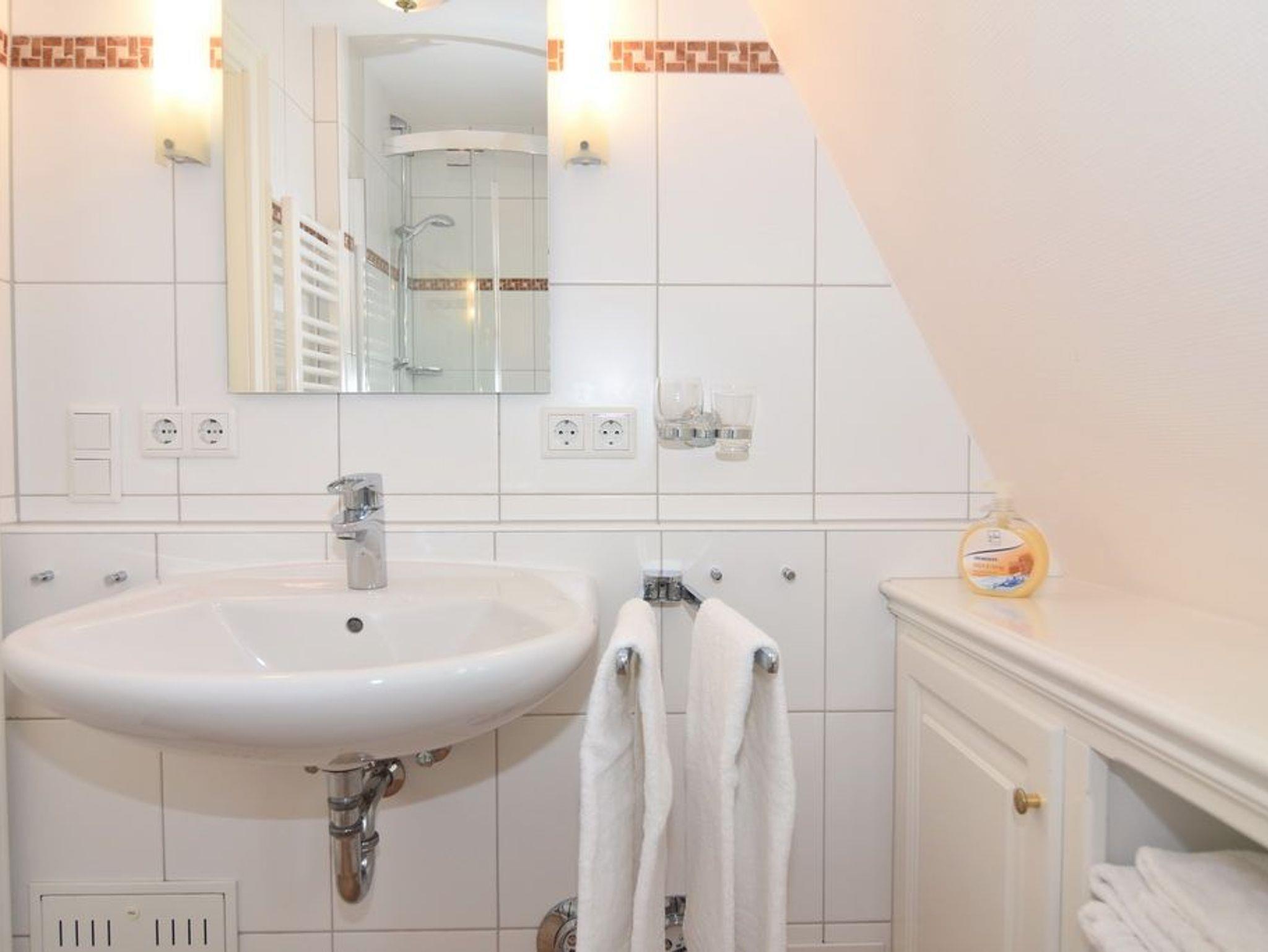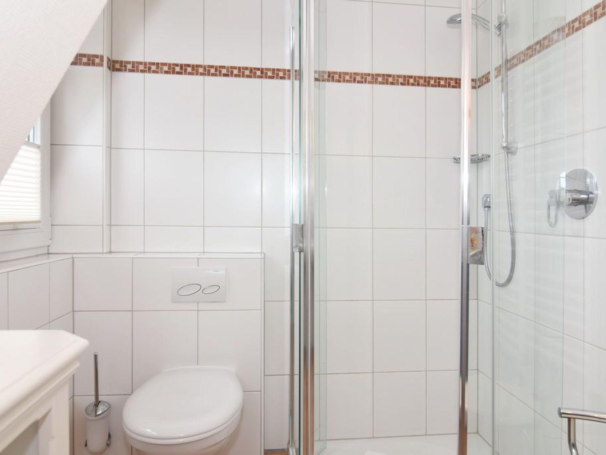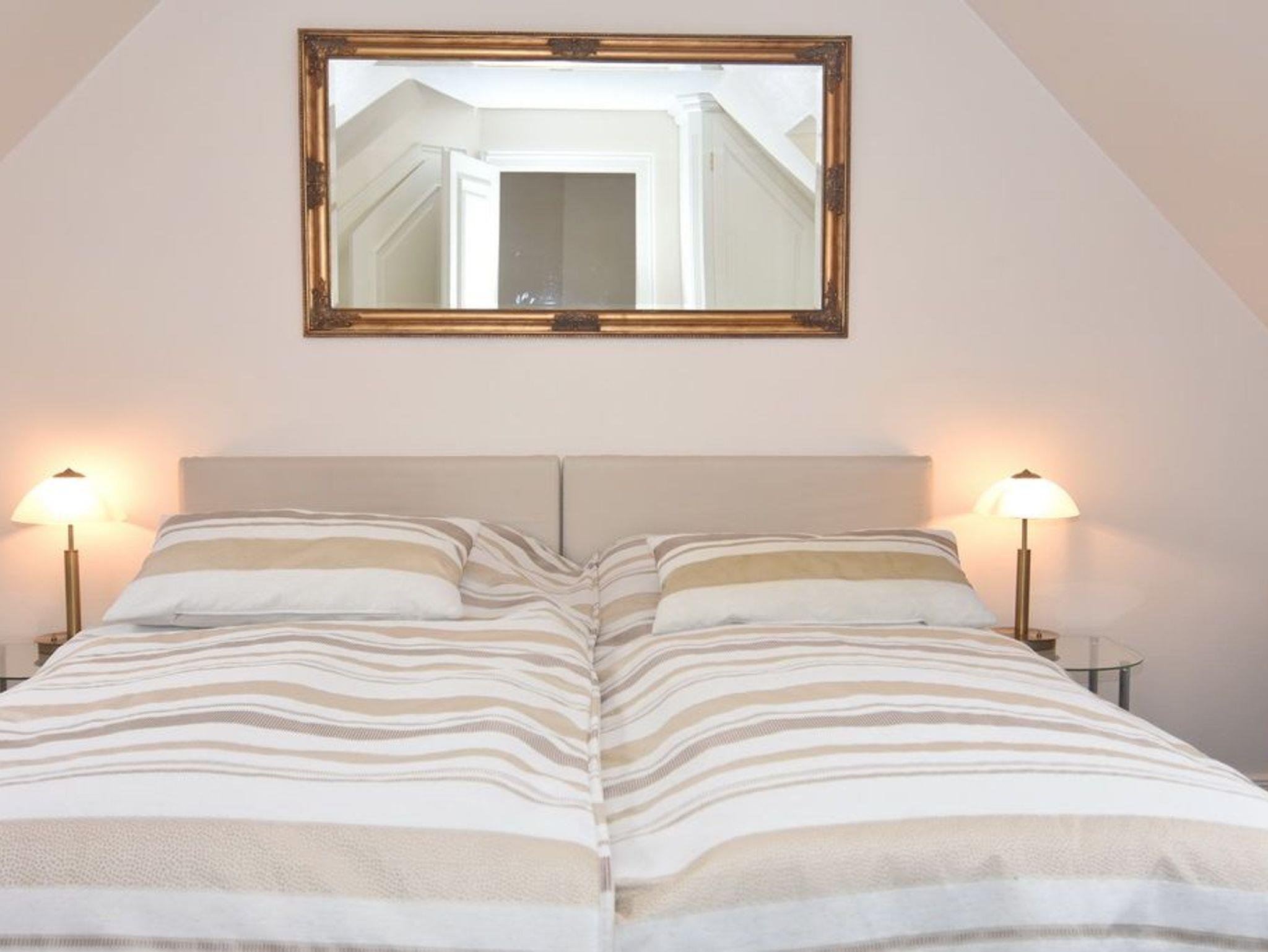 Exklusive 3-Zimmer-Ferienwohnung, Nichtraucher ca. 57 m². 1. OG.: Wohnraum mit Couch und 2 Sesseln, Essplatz, Kabel-TV, Stereo-Anlage, W-Lan, Südbalkon mit Balkonmöbeln, offene Küche mit Mikrowelle, Backofen und Geschirrspüler, Duschbad/WC. 1 Schlafzimmer mit Doppelbett (160x190) und Einbauschrank. DG: 1 Schlafzimmer mit Doppelbett, Einbauschrank und Gäste / WC mit Waschmaschine. PKW-Stellplatz am Haus. Tierhaltung verboten. Bettwäsche und Handtücher sind zur Anreise aufgezogen.