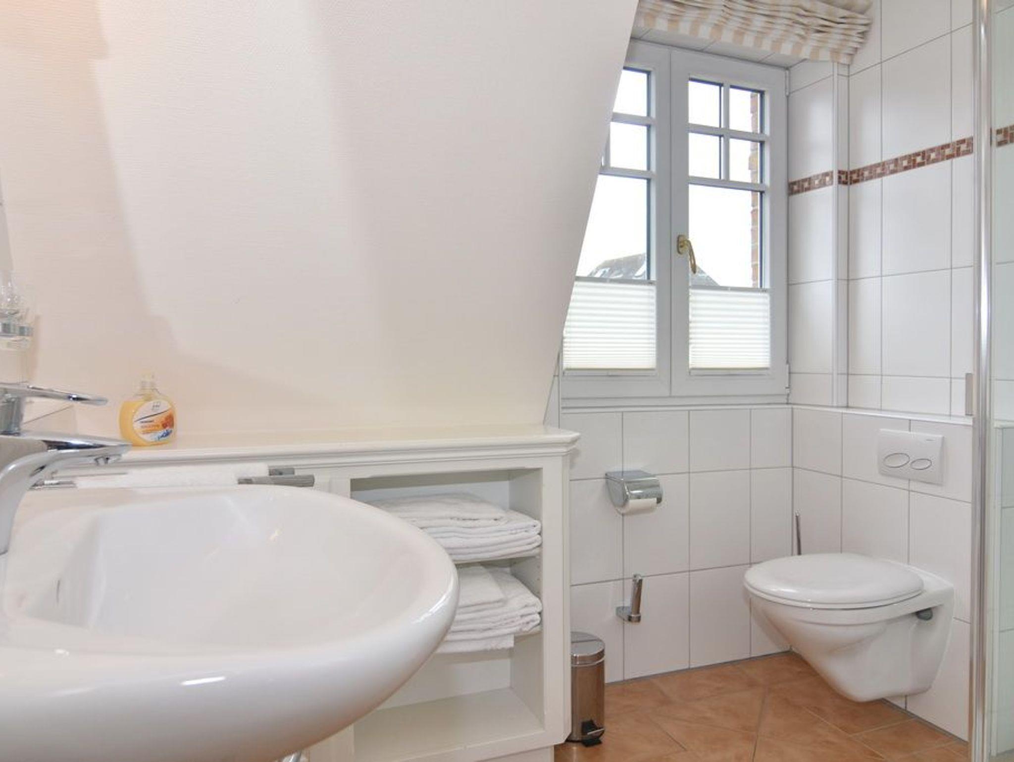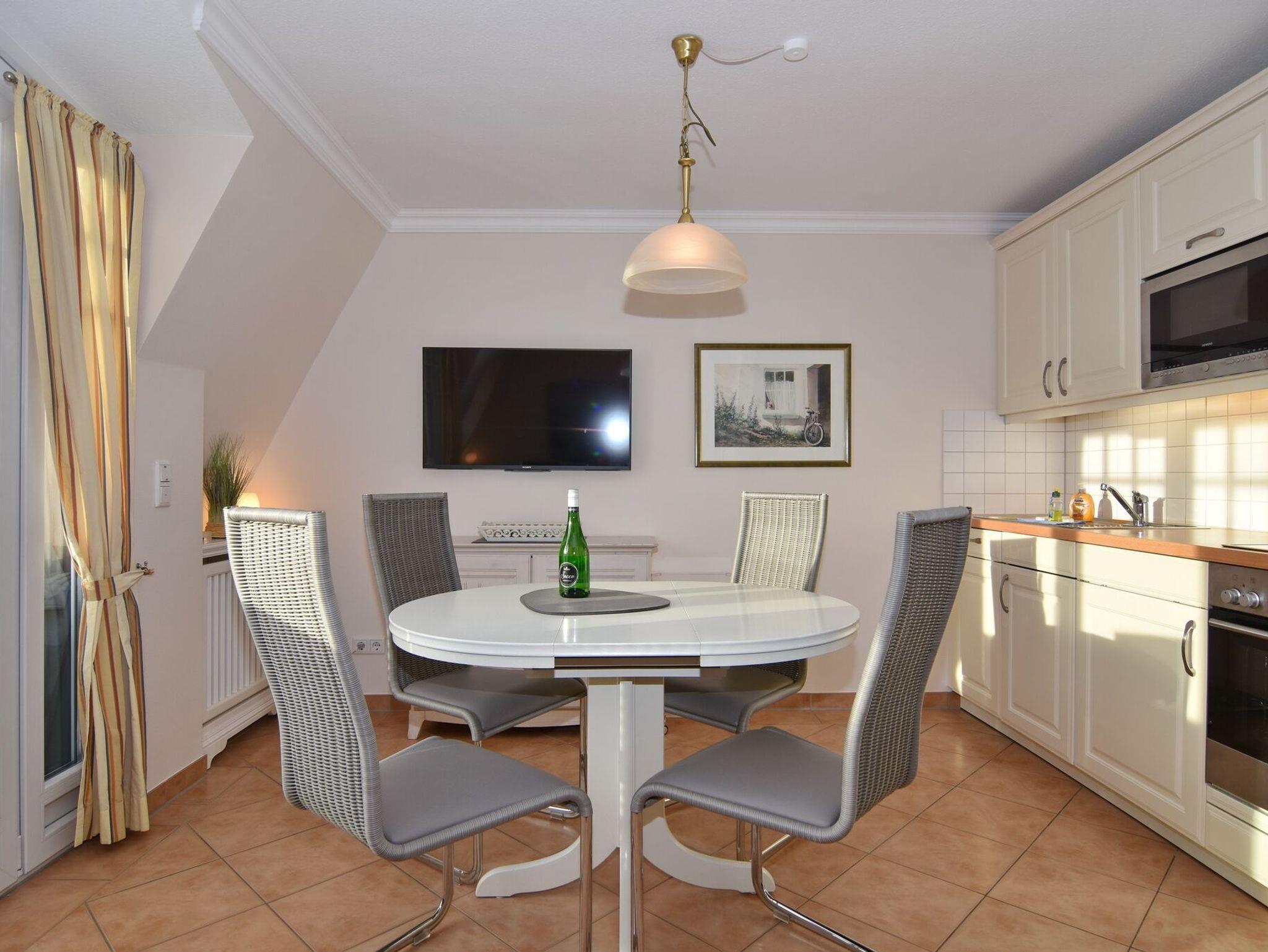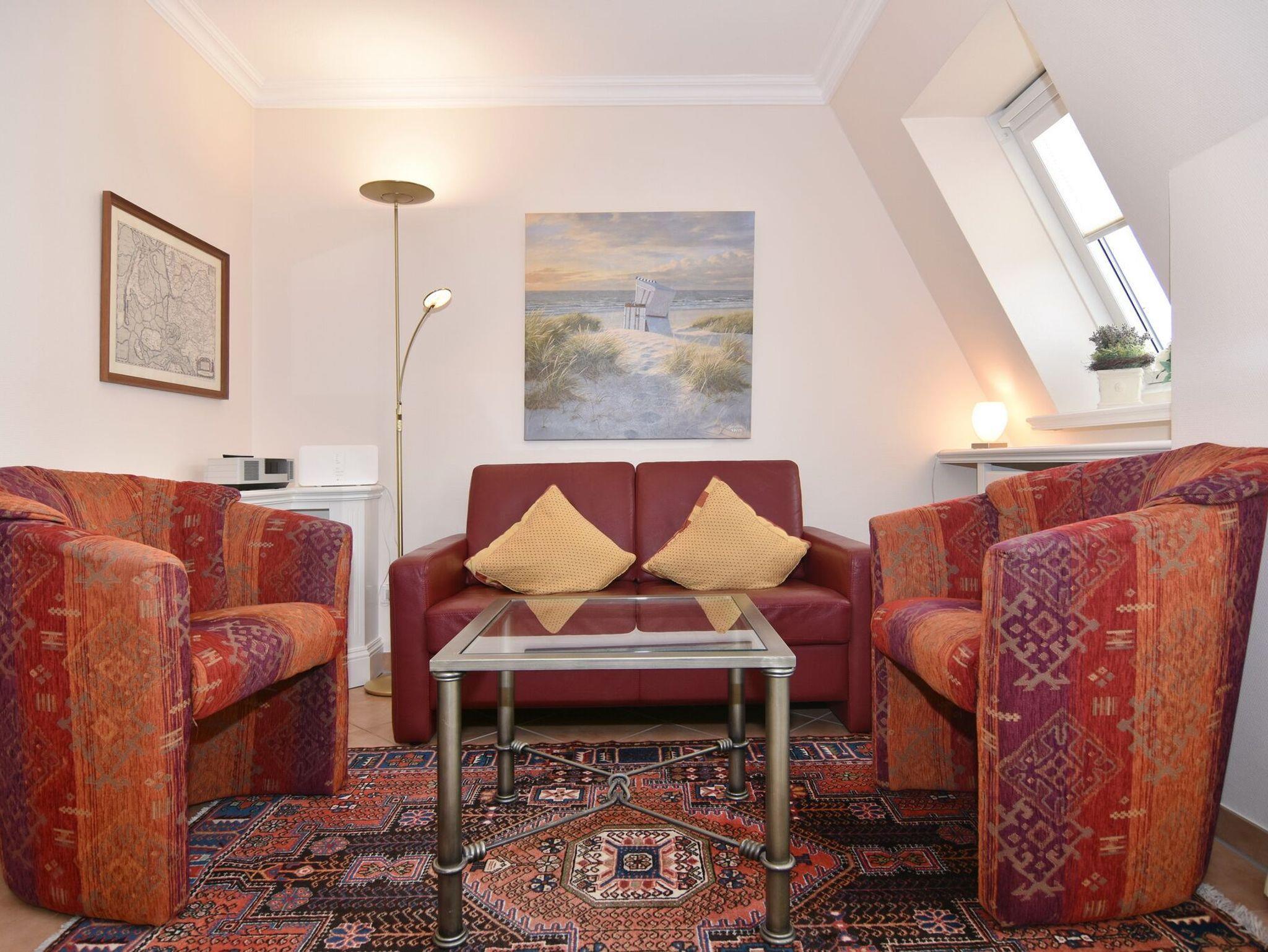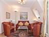 Exklusive 3-Zimmer-Ferienwohnung, Nichtraucher ca. 57 m². 1. OG.: Wohnraum mit Couch und 2 Sesseln, Essplatz, Kabel-TV, Stereo-Anlage, W-Lan, Südbalkon mit Balkonmöbeln, offene Küche mit Mikrowelle, Backofen und Geschirrspüler, Duschbad/WC. 1 Schlafzimmer mit Doppelbett (160x190) und Einbauschrank. DG: 1 Schlafzimmer mit Doppelbett, Einbauschrank und Gäste / WC mit Waschmaschine. PKW-Stellplatz am Haus. Tierhaltung verboten. Bettwäsche und Handtücher sind zur Anreise aufgezogen.