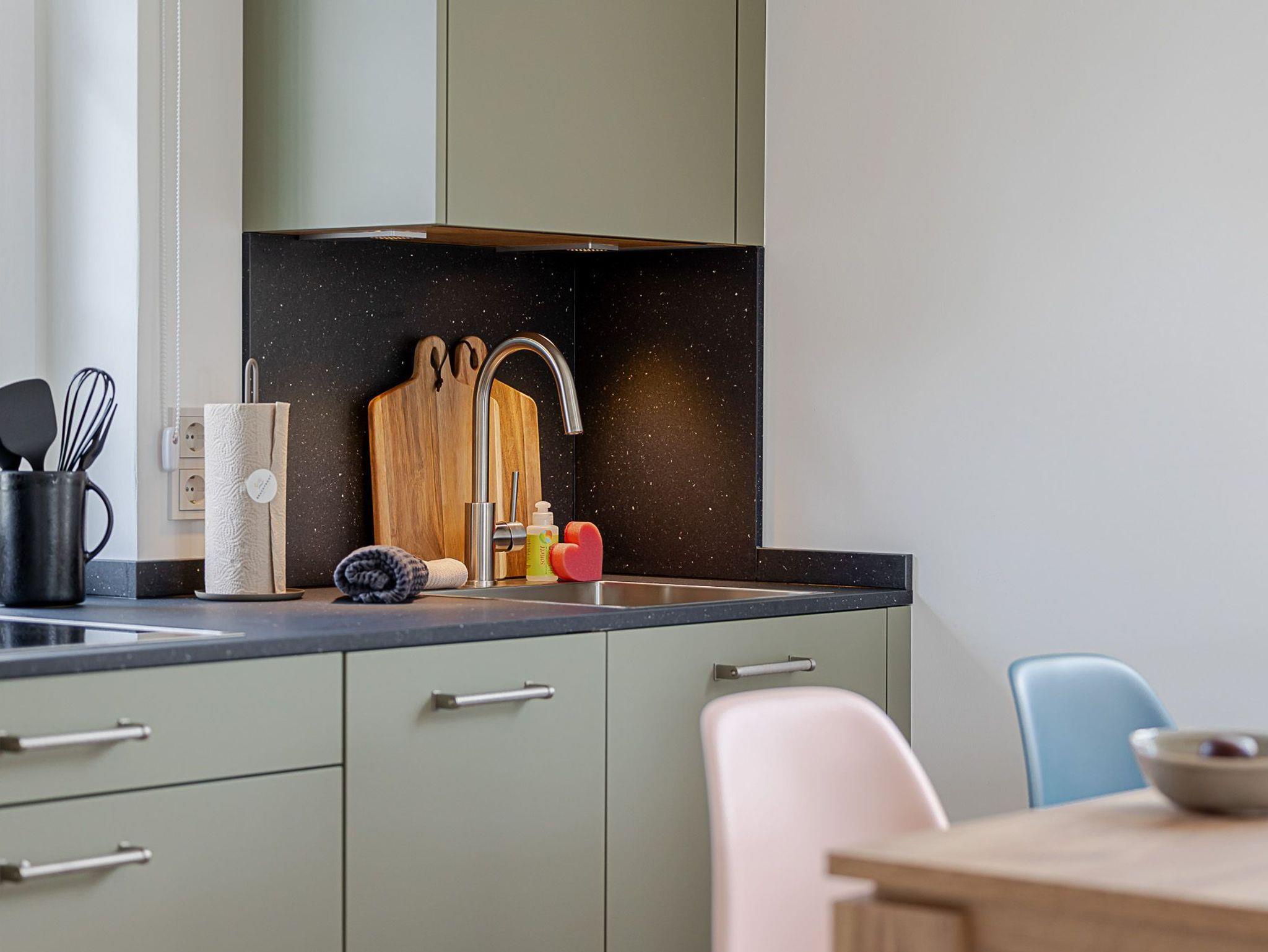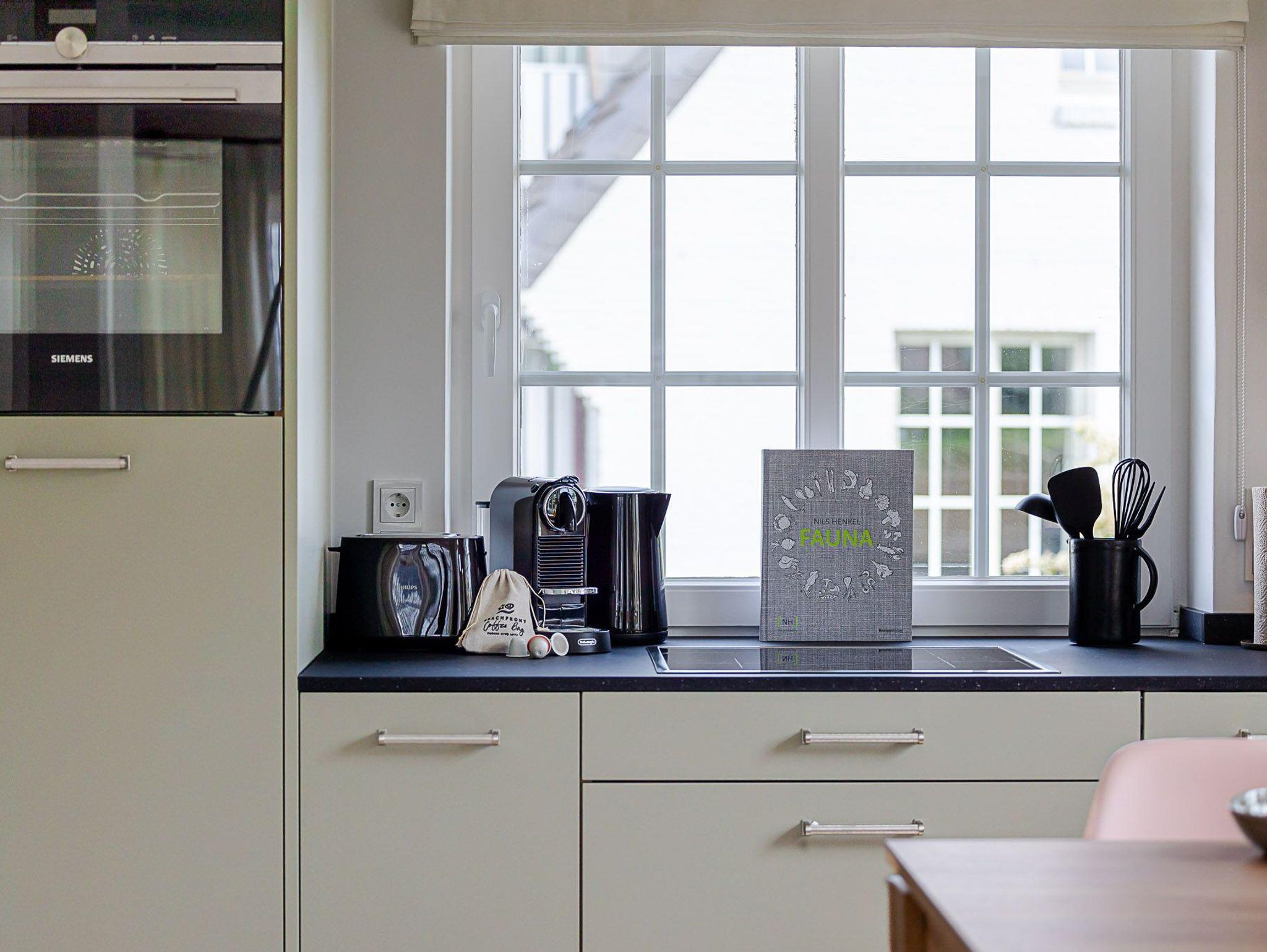 Die Küche, mit Ausblick auf das Dock 6b, ist mit Markengeräten, u.a. der Firma Miele, ausgestattet. Hier finden Sie alle notwendigen Küchenhelfer, die beim Zubereiten Ihrer Mahlzeiten zuverlässige Dienste leisten. Fühlen Sie sich also ganz wie zu Hause, wir haben an alles gedacht. Tipp: Falls etwas fehlt, ein gut sortierter Supermarkt und ein Weinhandel sind in 5 Minuten zu Fuß erreichbar.