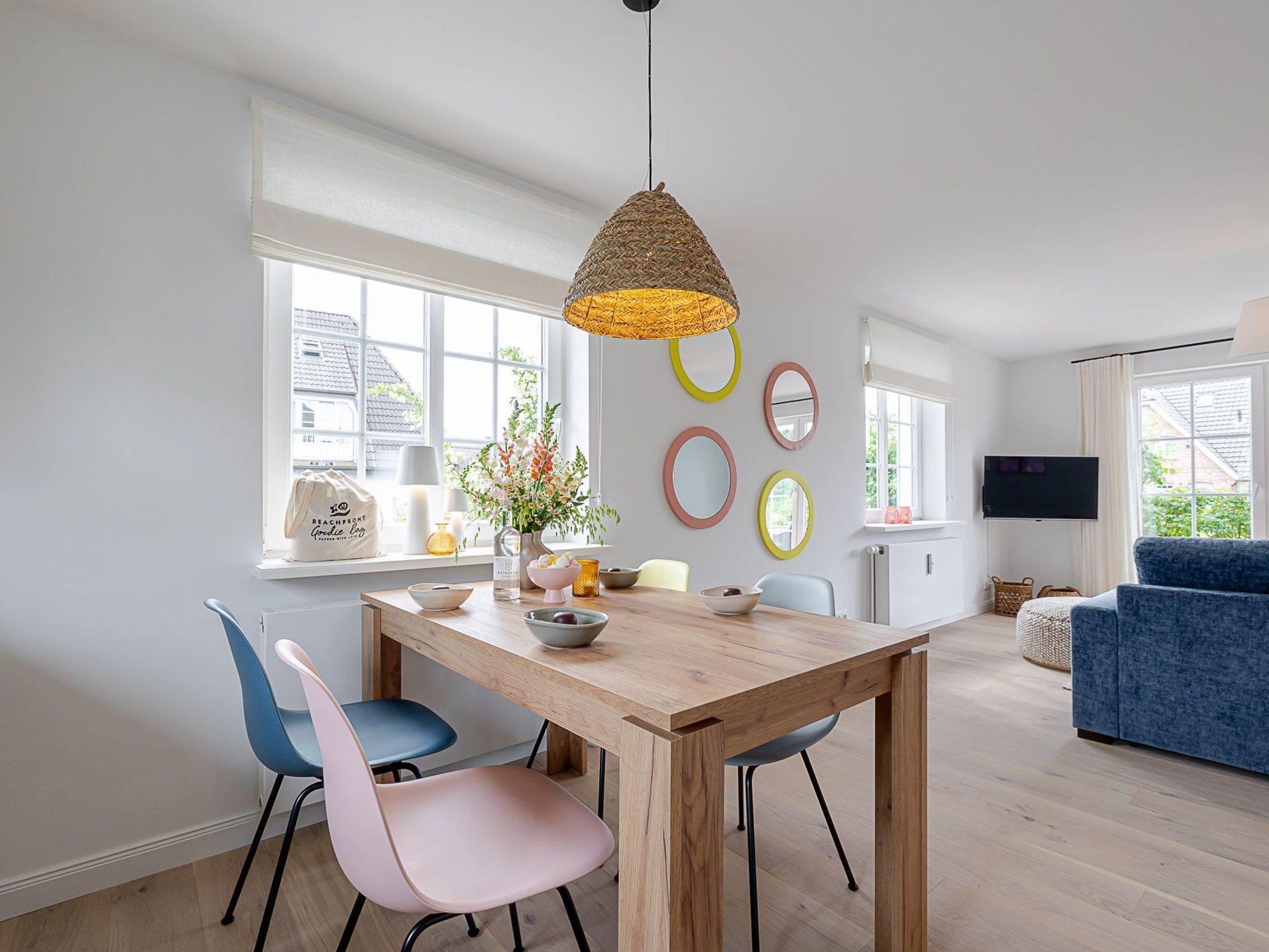 Der Wohn- und Essbereich punktet mit einem ?Sylter -Charme?, der sich durch die Gemütlichkeit und gehobenen Komfort auszeichnet. Außerdem verfügt es über ein vollwertiges Schlafsofa, welches bei Bedarf zu einer weiteren Schlafgelegenheit am Abend im Handumdrehen umfunktioniert werden kann.