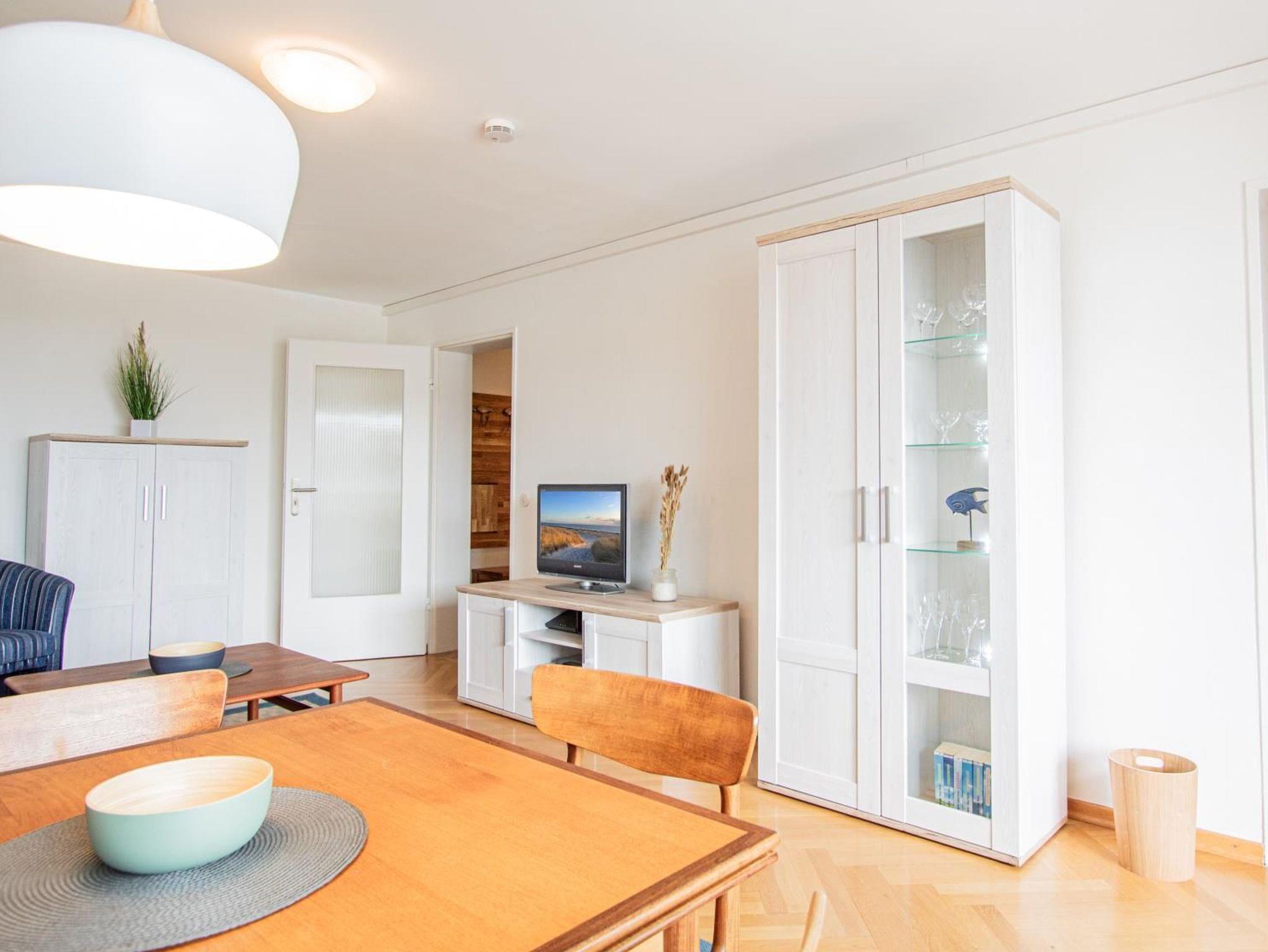 Das Wohnzimmer ist mit Parkett ausgelegt. Es ist eingerichtet mit einer Couchgarnitur ( Schlafcouch 1,70 m breit). Ferner gibt es den Essplatz für 4 Personen und harmonisch auf die Einrichtung abgestimmt, helle Wohnzimmermöbel. Vor dem Wohnzimmer ist der Ostbalkon. Die neue, separate Küche ist mit Mikrowelle, Backofen, Spülmaschine, Kaffeemaschine, Toaster und Wasserkochersowie allen wichtigen Utensilien ausgestattet. Kabel-TV, W-Lan und Internetradio sind vorhanden. Im Schlafzimmer, ebenfalls mit Ostbalkon, steht ein Doppelbett, das in einer Schrankwand integriert ist. Das geräumige Bad ist neu, mit hellen Fliesen und einer halbrunden Dusche ausgestattet. Insgesamt eine ansprechende, harmonische und gepflegte Ausstattung.