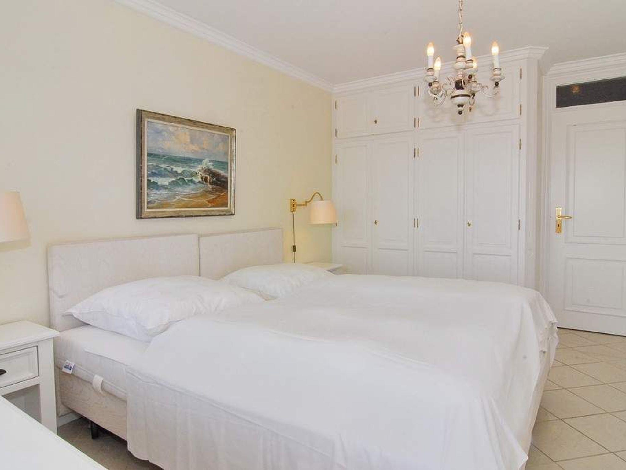 Gepflegte 2-Zimmer-Ferienwohnung im Haus Metropol, 11.OG, Nord-Ost-Ecke. Wohnraum mit Couch, Sessel und Schlafsofa, Kabel-TV, Radio, Telefon, WLAN (ohne Gewähr), Eßplatz, Nordbalkon mit Meeresblick und Ostbalkon mit Blick über die Insel, Küchenecke mit Geschirrspüler und Mikrowelle, Schlafzimmer mit Doppelbett (2x90x200) und Ostbalkon, Duschbad/WC. Das Apartment ist gefliest, Rauchen und Tierhaltung ist nicht gestattet.PKW-Stellplatz/Garage kann kostenpflichtig gebucht werden. Bettwäsche und Handtücher sind zur Anreise aufgezogen.
