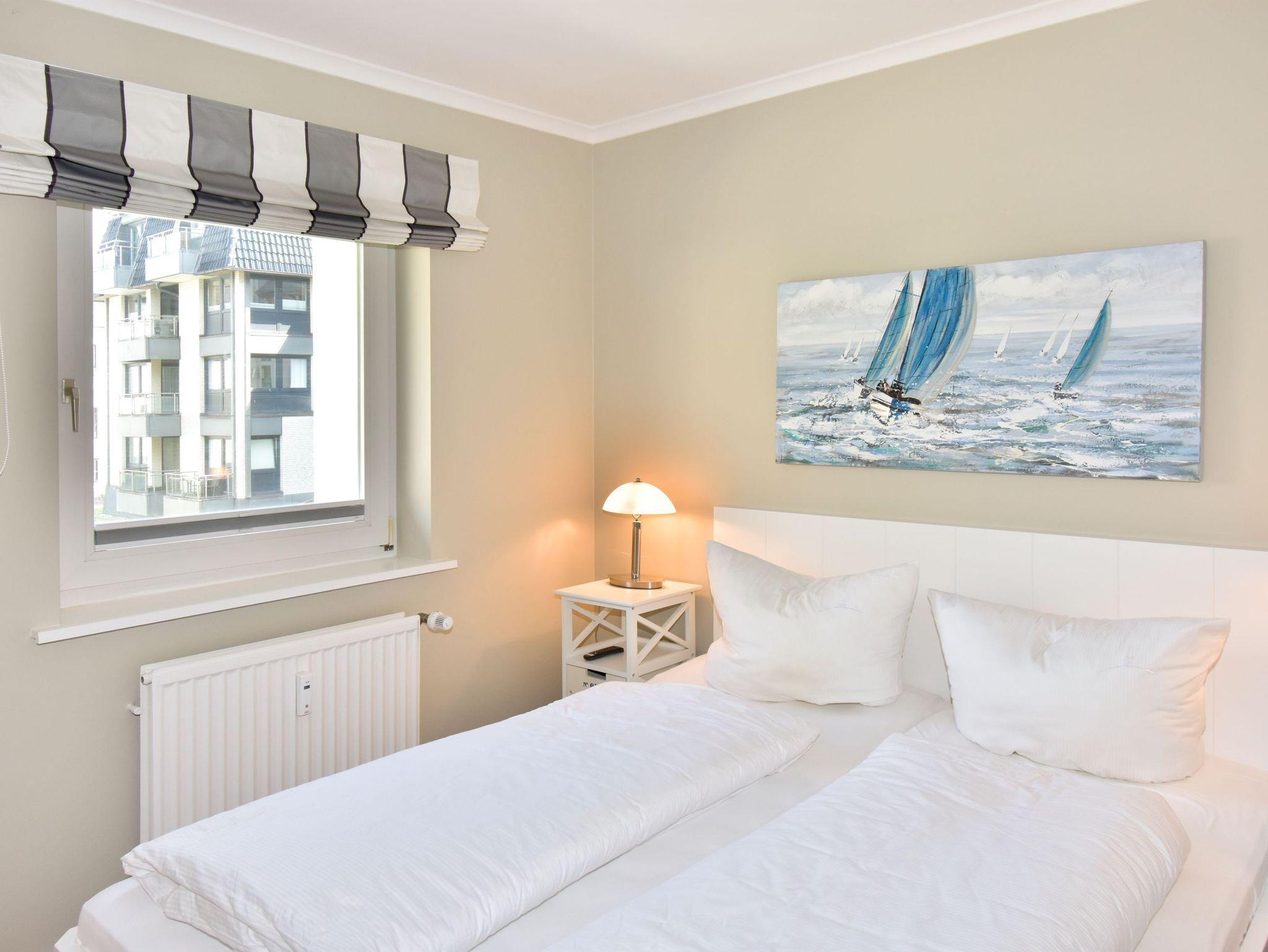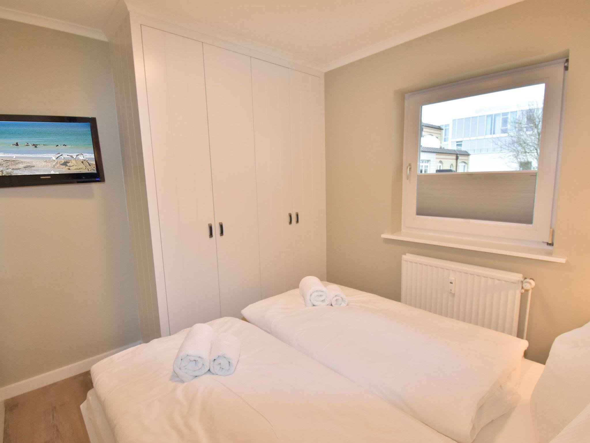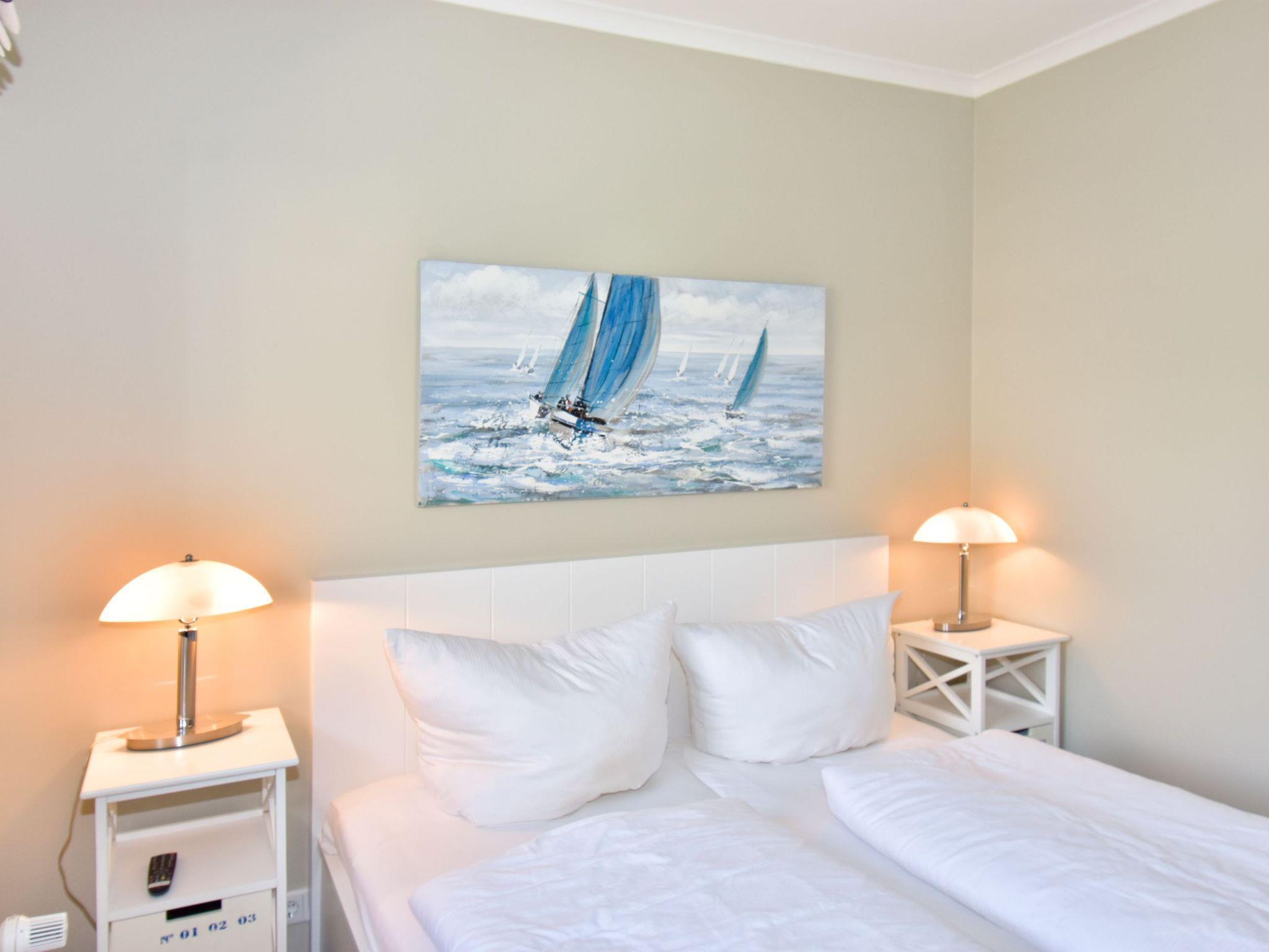 Das Schlafzimmer hat ein neues Doppelbett (Liegefläche 1,60 x 2m mit zwei Einzelmatratzen 0,80 x 2,00 m) mit verstellbarem Kopf- und Fußteil, einen Kleiderschrank mit LED-Innenbeleuchtung und einen weiteren Flachbild-TV.