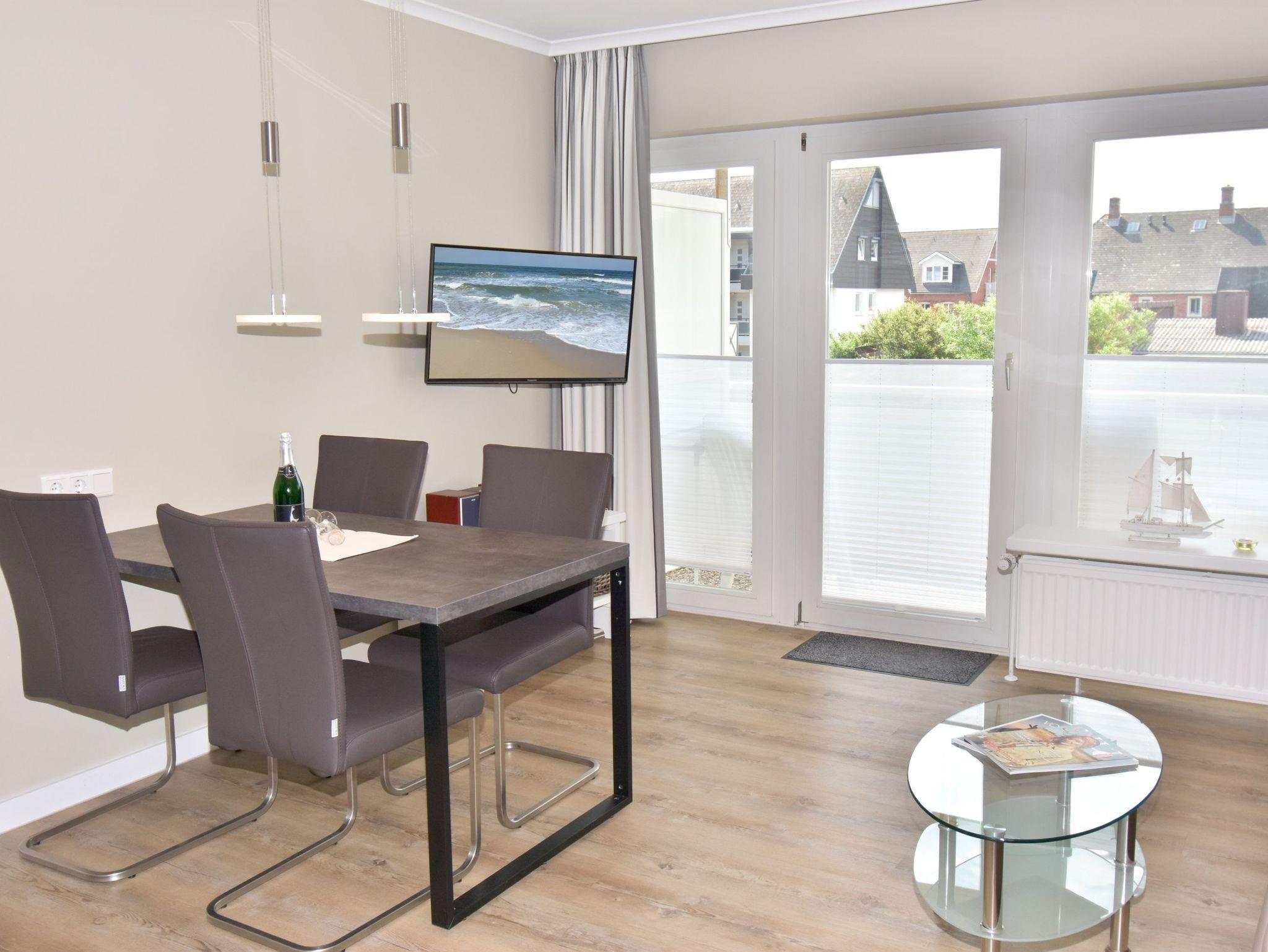 Die frisch renovierte 2-Zimmer-Ferienwohnung, ca. 50 qm, befindet sich in der 1. Etage des Hauses und ist mit Südbalkon (Sonnenseite, mit Balkonmöbeln und Auflagen) nach Süden ausgerichtet.