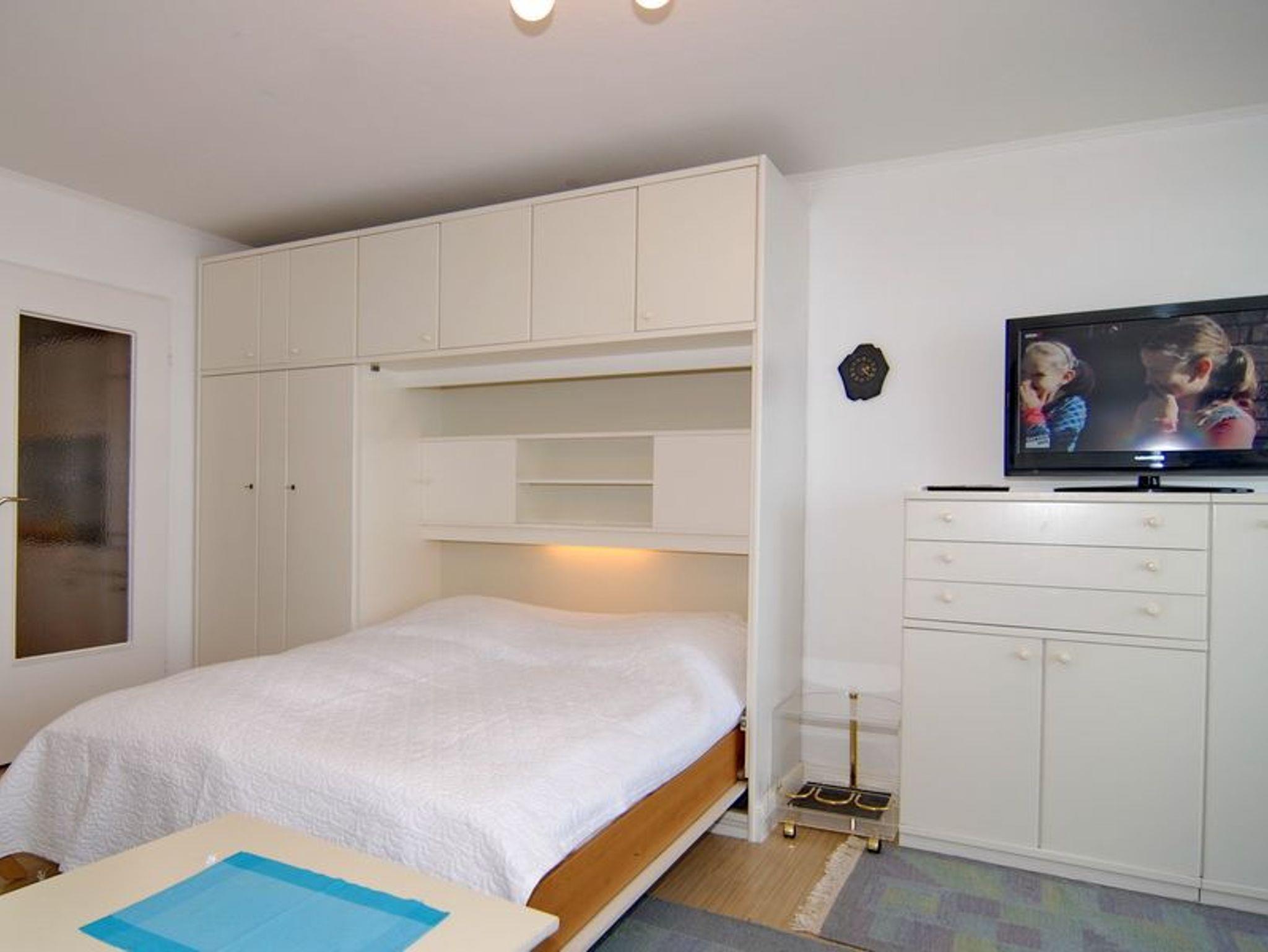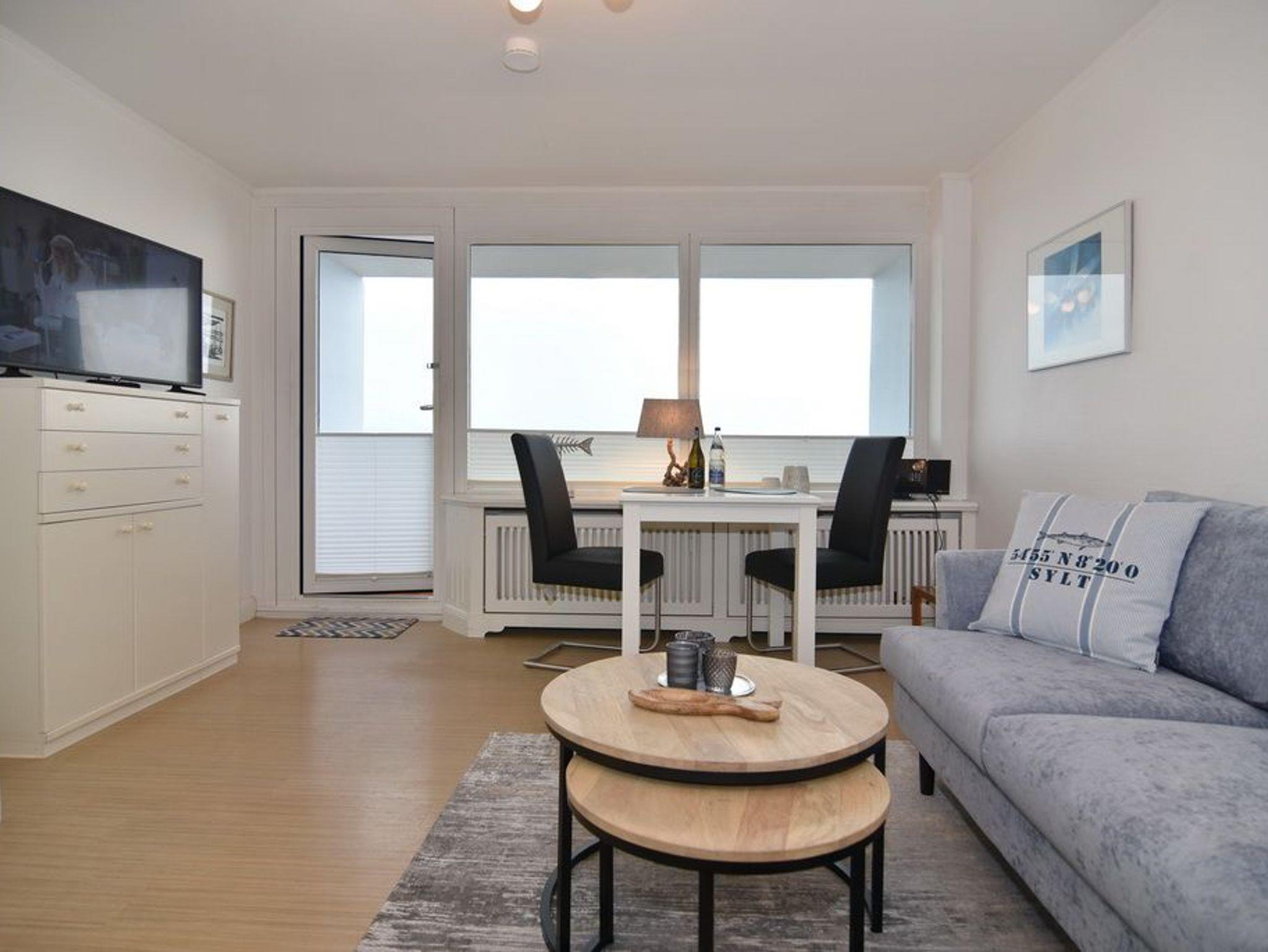 1 Zimmer-Ferienwohnung im Haus Metropol zur Seeseite, 12. OG, ca. 34 m². Kombinierter Wohn-/Schlafraum mit Doppelschrankbett (2x80x200), 2-Sitzer-Couch, Sessel, Eßtisch, Kabel-TV, Radio, WLAN (ohne Gewähr), Westbalkon mit Meeresblick, Küchenzeile mit Geschirrspüler, Duschbad/WC.[ Wohnung ist mit Fliesen und Parkett verlegt. Tierhaltung und Rauchen ist hier nicht gestattet. Bettwäsche und Handtücher sind zur Anreise aufgezogen. Ein PKW-Stellplatz kann kostenpflichtig zugebucht werden.