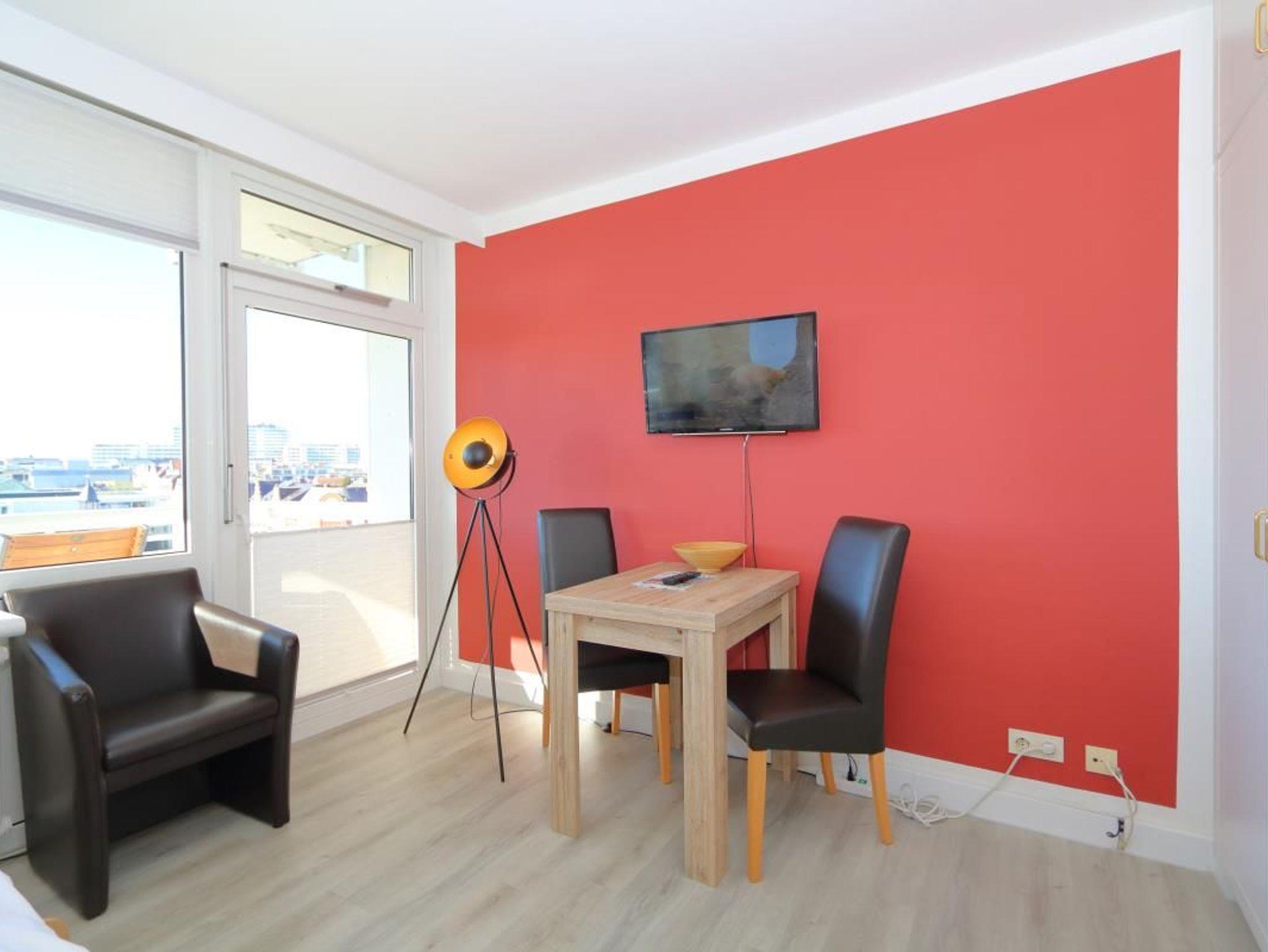 Das Appartementhaus steht an der Fußgängerzone Wilhelmstraße, die in die Friedrichstraße übergeht. Zum Strand sind es ca. 500 m. Das Appartement befindet sich in der 5. Etage mit Blick Richtung Westen.