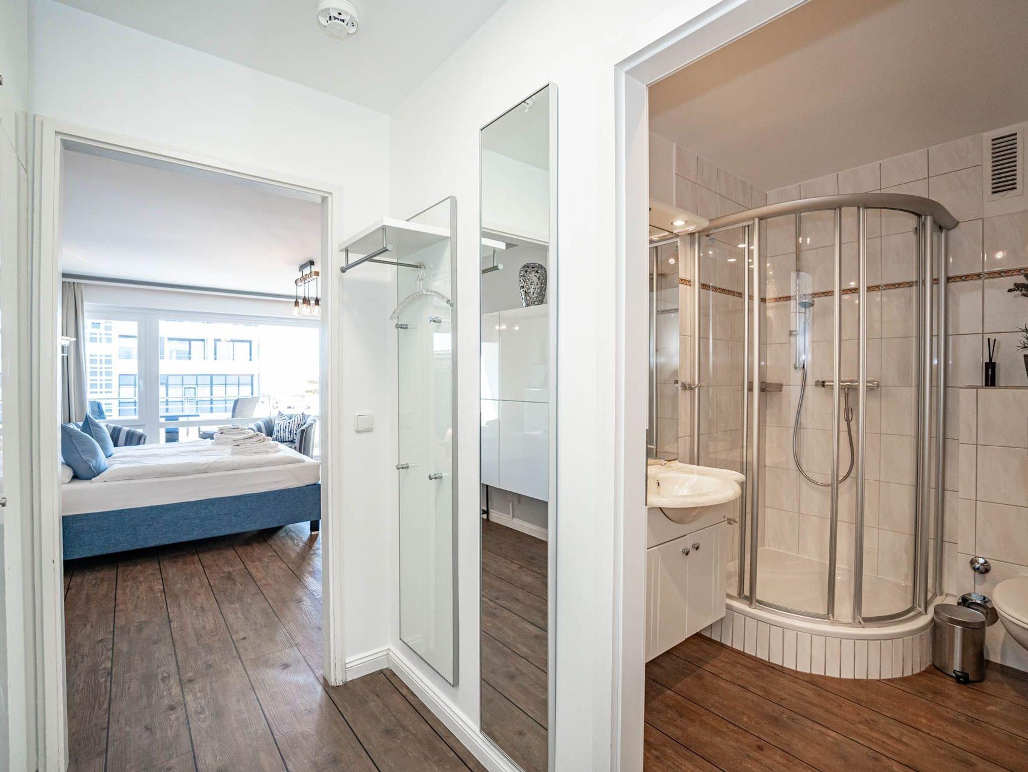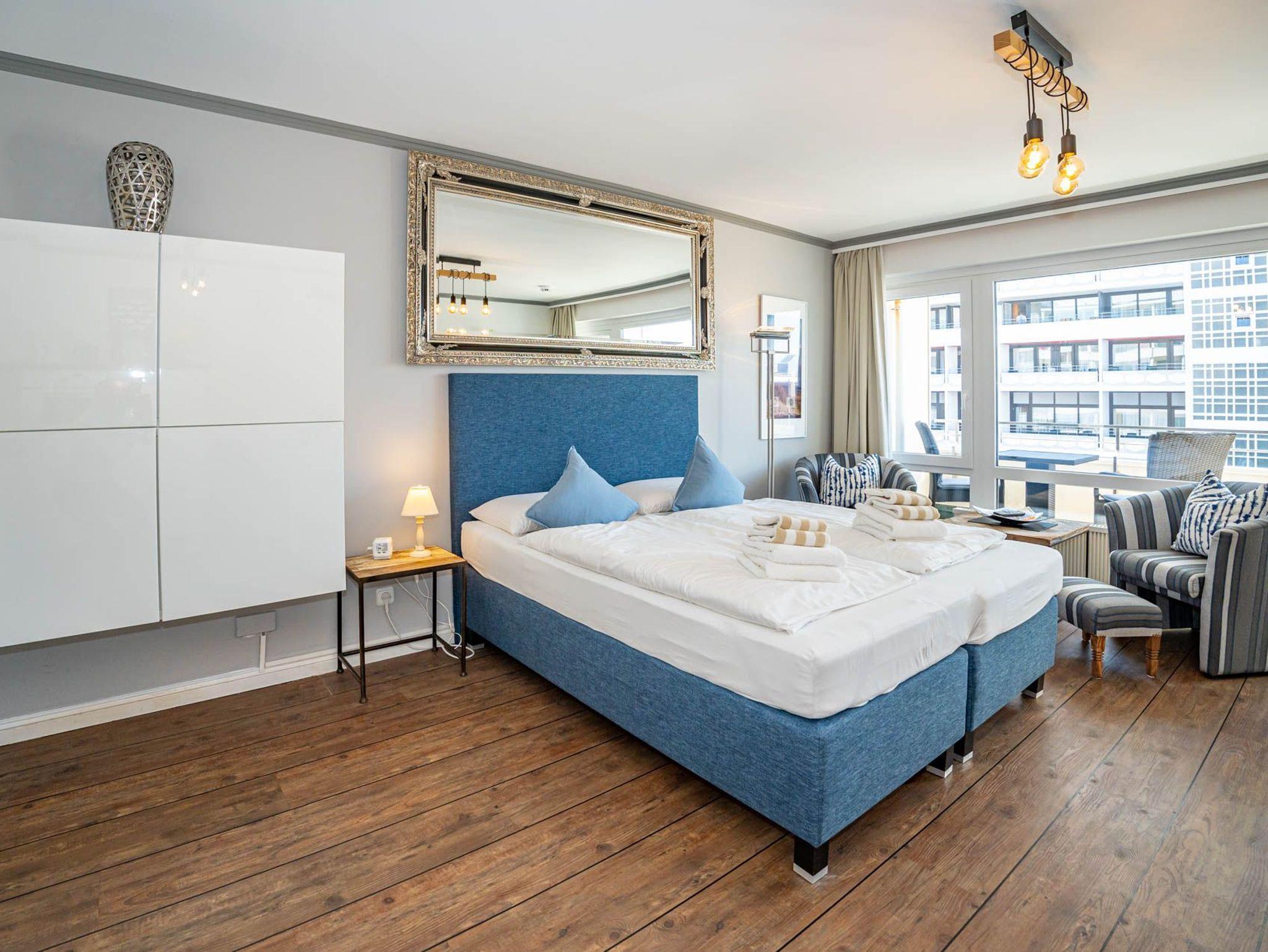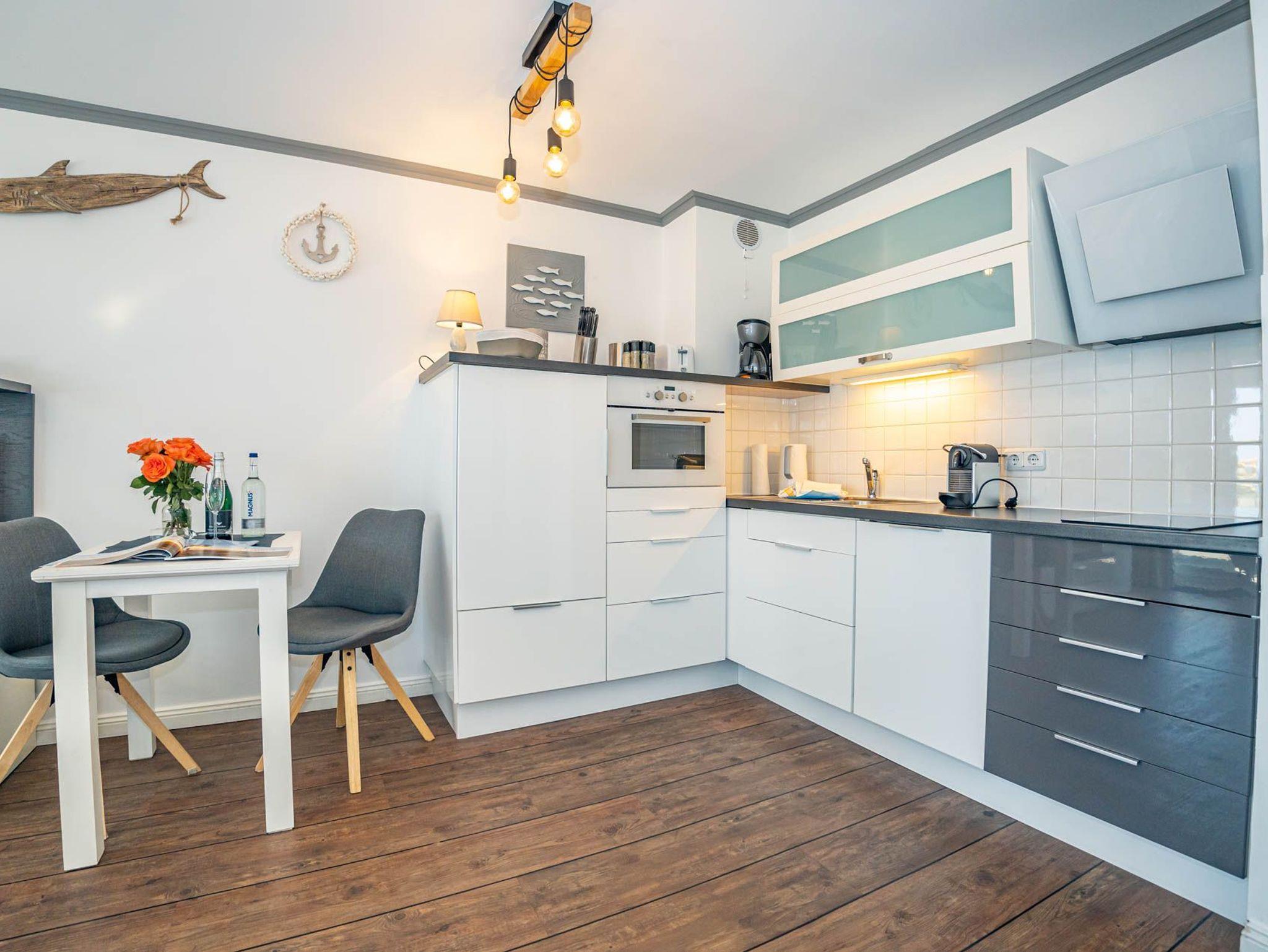 Diese gut ausgestattete und renovierte 1-Zimmer-Nichtraucher-Ferienwohnung (ca. 30 qm) bietet einen kleinen Meerblick sowie einen Westbalkon, der in der Nachmittagssonne mit bequemen Möbeln und Auflagen zu entspannten Stunden einlädt. Die Wohnung befindet sich in der 2. Etage und ist ideal für zwei Personen.