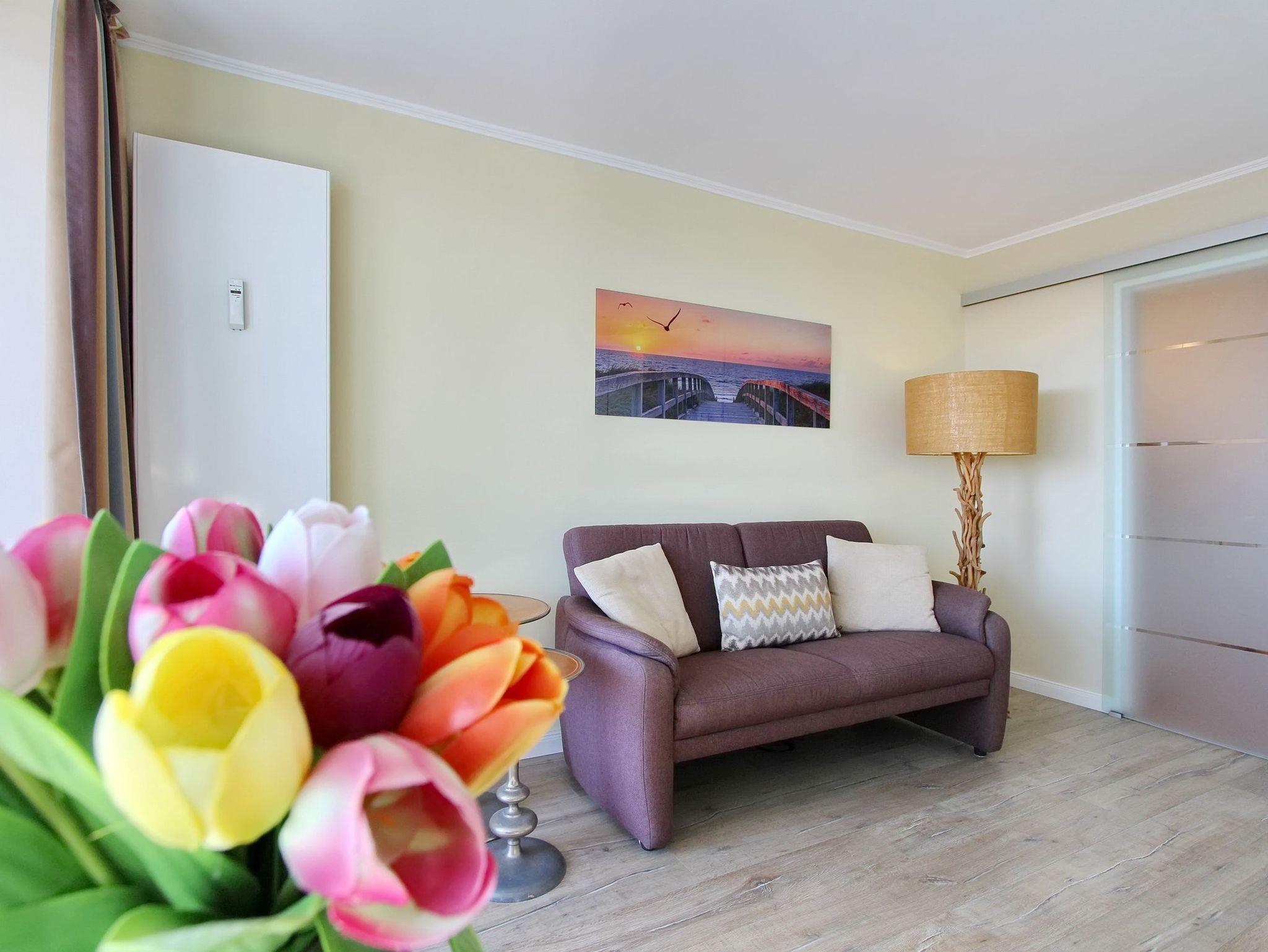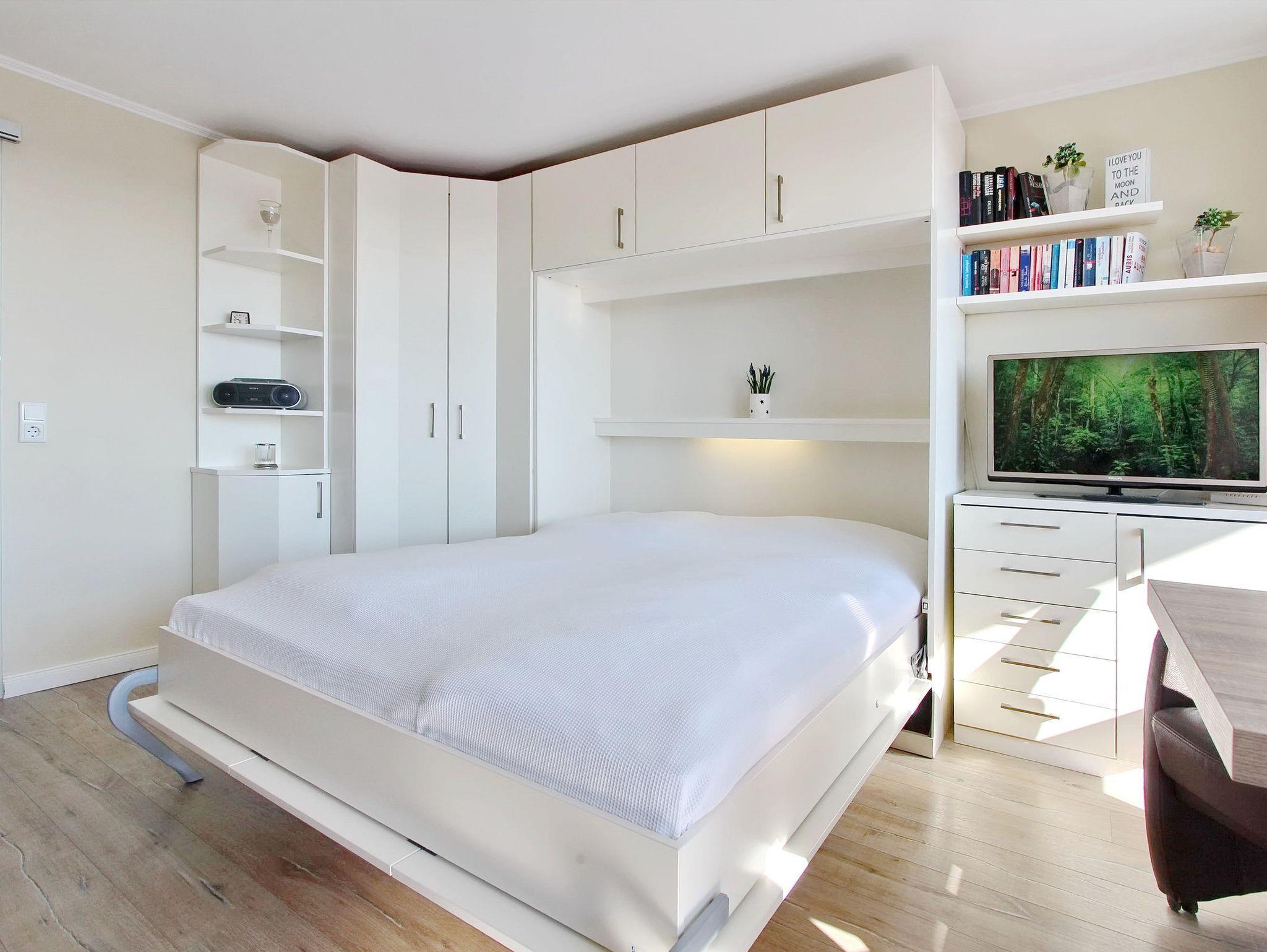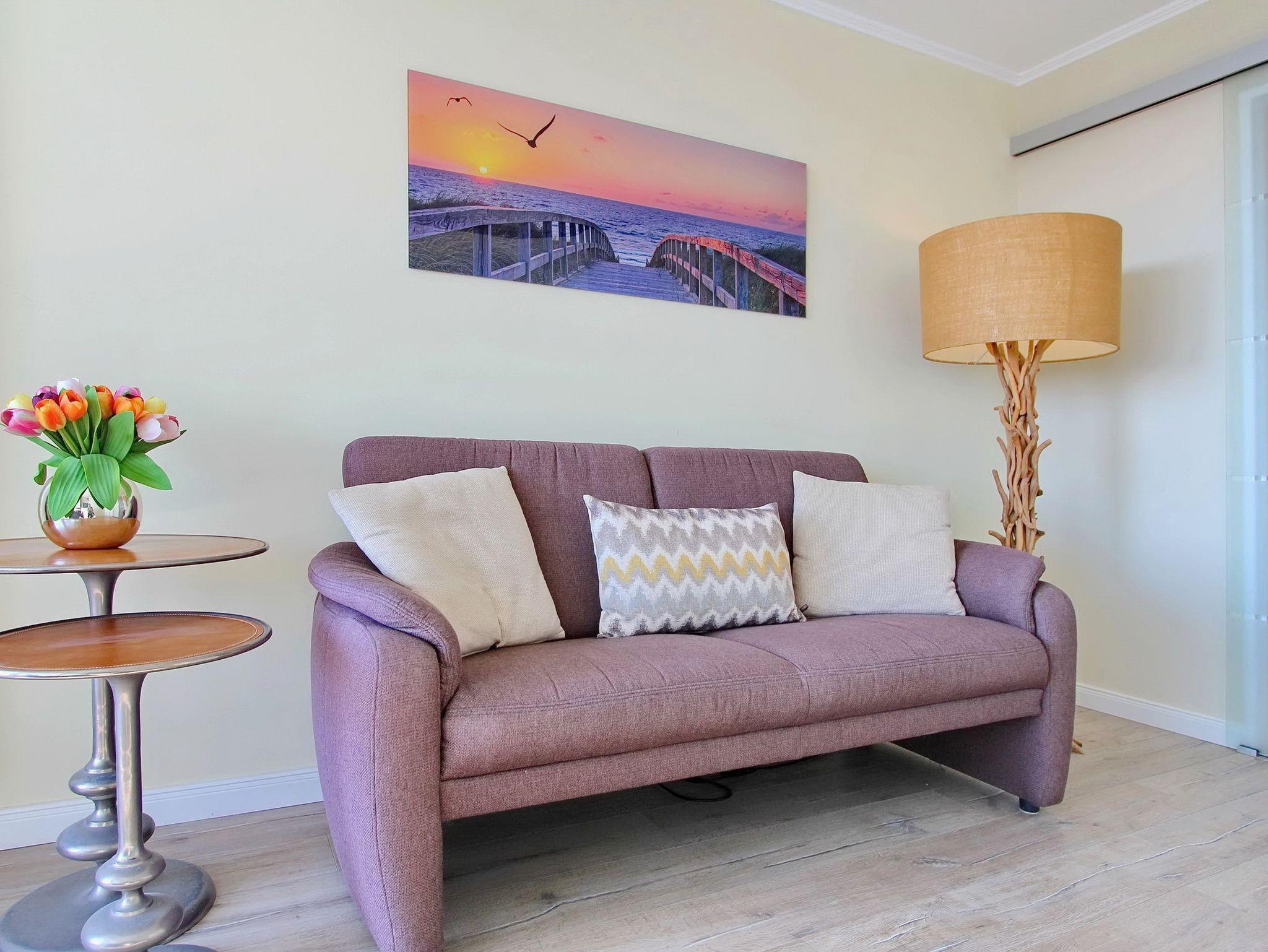 Im Haus Metropol in der 12. Etage befindet sich diese wunderschöne Einzimmerwohnung. Sie hat einen herrlichen Weitblick über die Insel und die Stadt und bei klarem Wetter können Sie bis zum nordfriesischen Wattenmeer und dem Festland schauen. Der Wohn-Schlafraum mit vorgelagertem Balkon zur Ostseite (inkl. Balkonmöbeln) hat bodentiefe Fenster und ist daher lichtdurchflutet. Direkt am Fenster steht der Essplatz mit 2 bequemen Sesseln und des weiteren gibt es eine Couch und eine Schrankwand mit einem Doppelschrankbett. Stauraum für Ihre persönlichen Dinge ist vorhanden. Das Badezimmer hat eine Dusche, Handtuchtrockner und einen Fön. Die Einbauküche mit 2 Cerankochplatten befindet sich im Flur. Zur technischen Ausstattung der Wohnung gehört ein Flachbildfernseher, ein DVD Player, sowie ein Stereo-CD-Radioplayer. Ein freies WLAN Netzwerk (WEG Haus Metropol - Passwortfrei - ohne Gewähr) steht ihnen kostenfrei zur Verfügung. Diese Nichtraucherwohnung hat eine Größe von ca. 30 m².