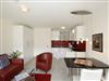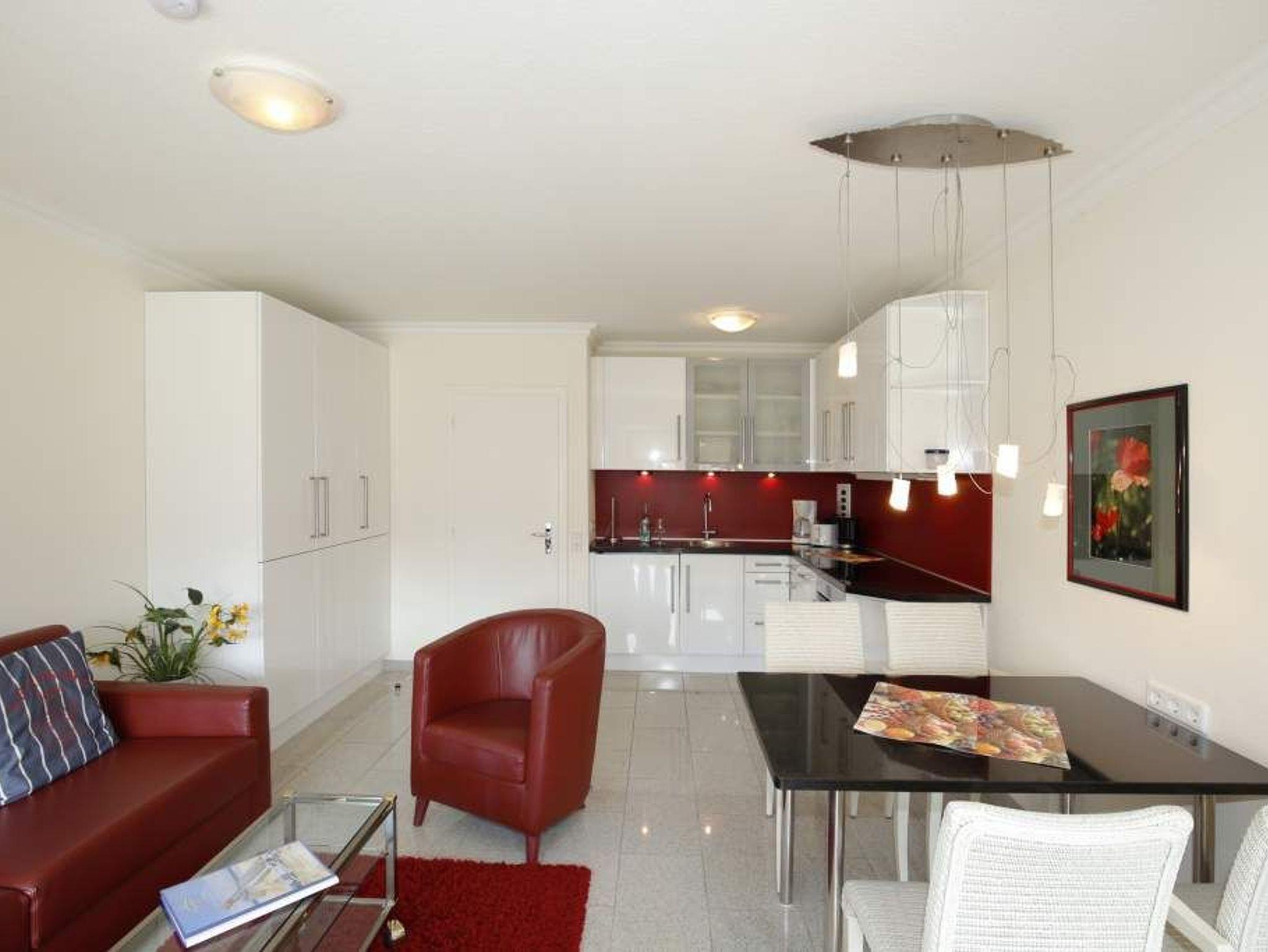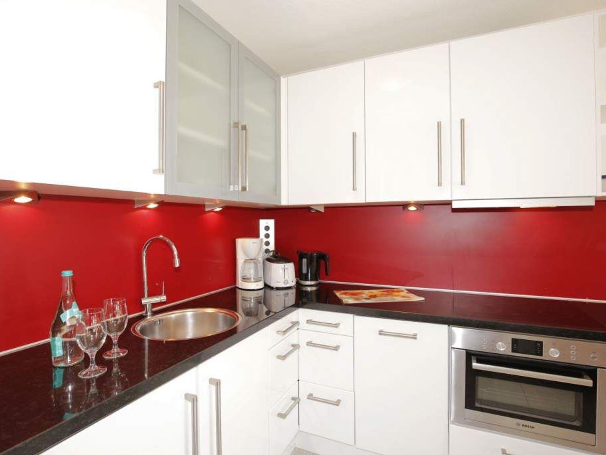 Die Küchenzeile hat einen Geschirrspüler, einen Mikrowellen-Kompakt-Backofen, ein Ceranfeld und einen Kühlschrank mit 3*-Gefrierfach. Kaffeemaschine, Wasserkocher, Toaster und Milchaufschäumer gehören zur Grundausstattung.