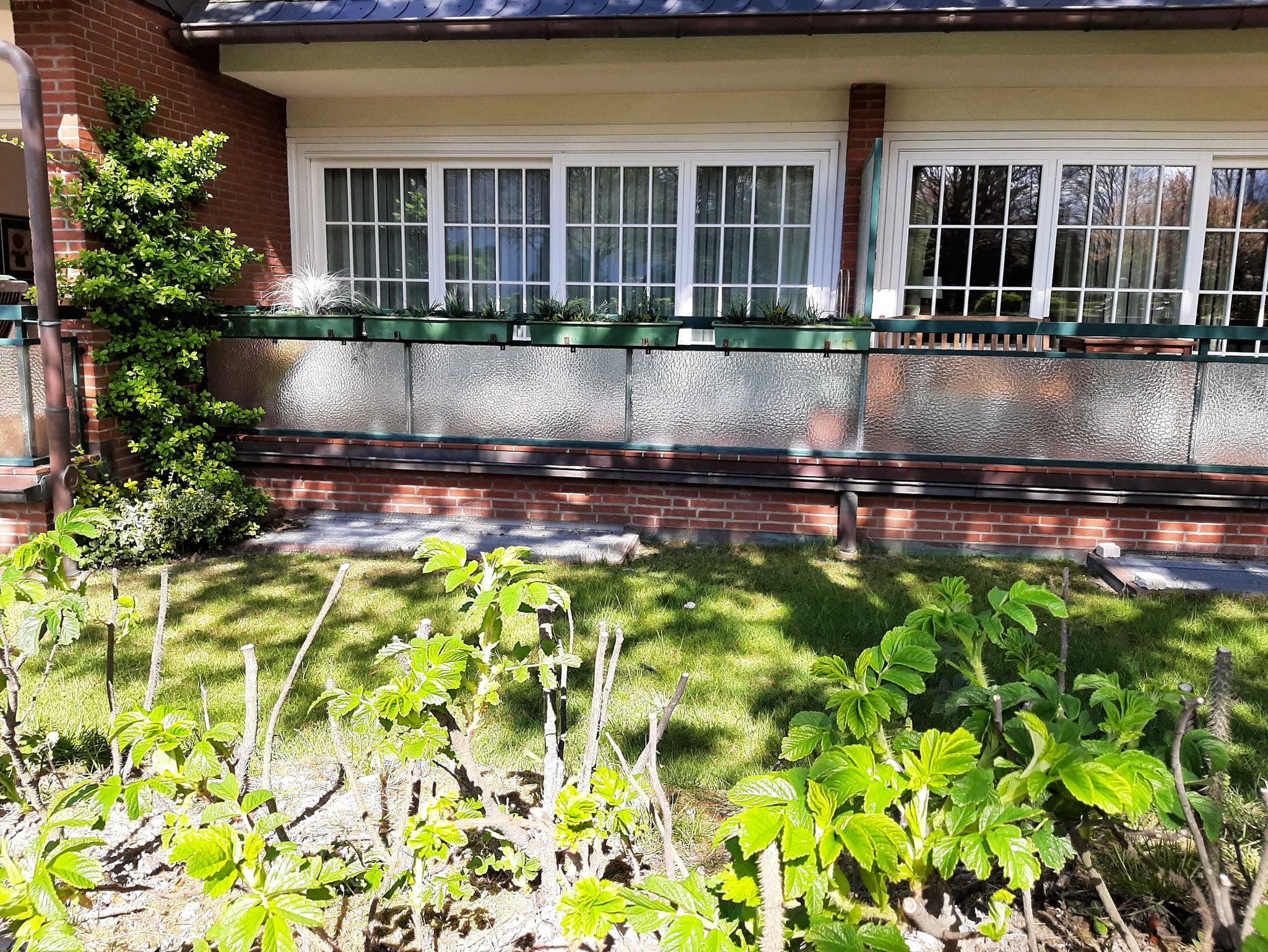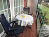 Der große, möbliert Balkon lädt in der Morgensonne zum Frühstück ein.