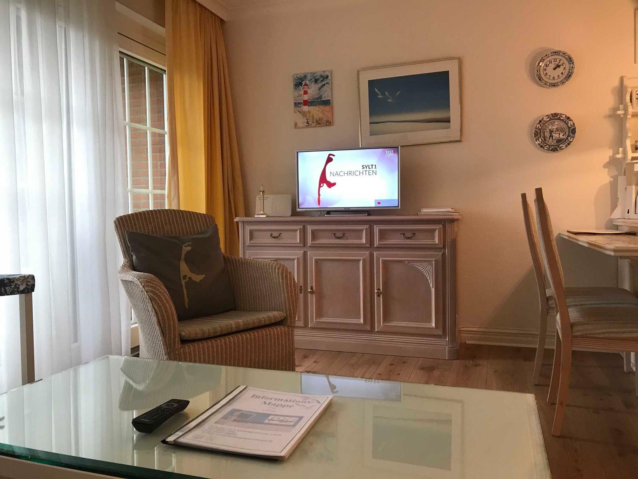 Multimedia: Flachbild-TV, Stereoanlage mit CD-Player und Radio.