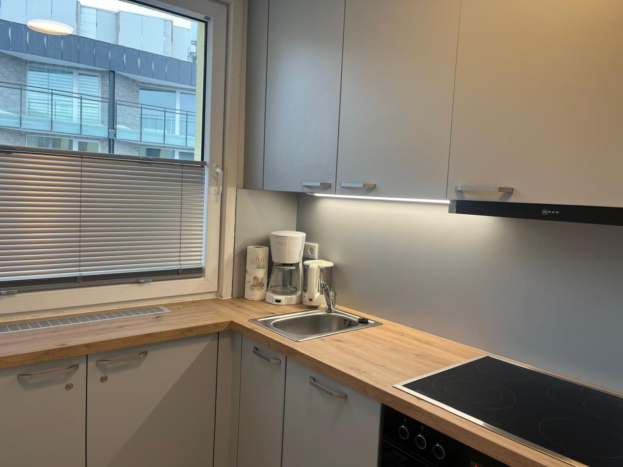 liegt das moderne, 5-geschossige Appartementhaus mit Fahrstuhl. Im Untergeschoss steht ein Gemeinschaftsraum mit Münzwaschmaschine und Münzwäschetrockner zur Verfügung. Eine kostenpflichtige Parkmöglichkeit kann für 5.00€ am Tag hinzugebucht werden. Der Fahrstuhl hält in den Zwischenetagen das Appartement ist über 7 Treppenstufen zu erreichen.