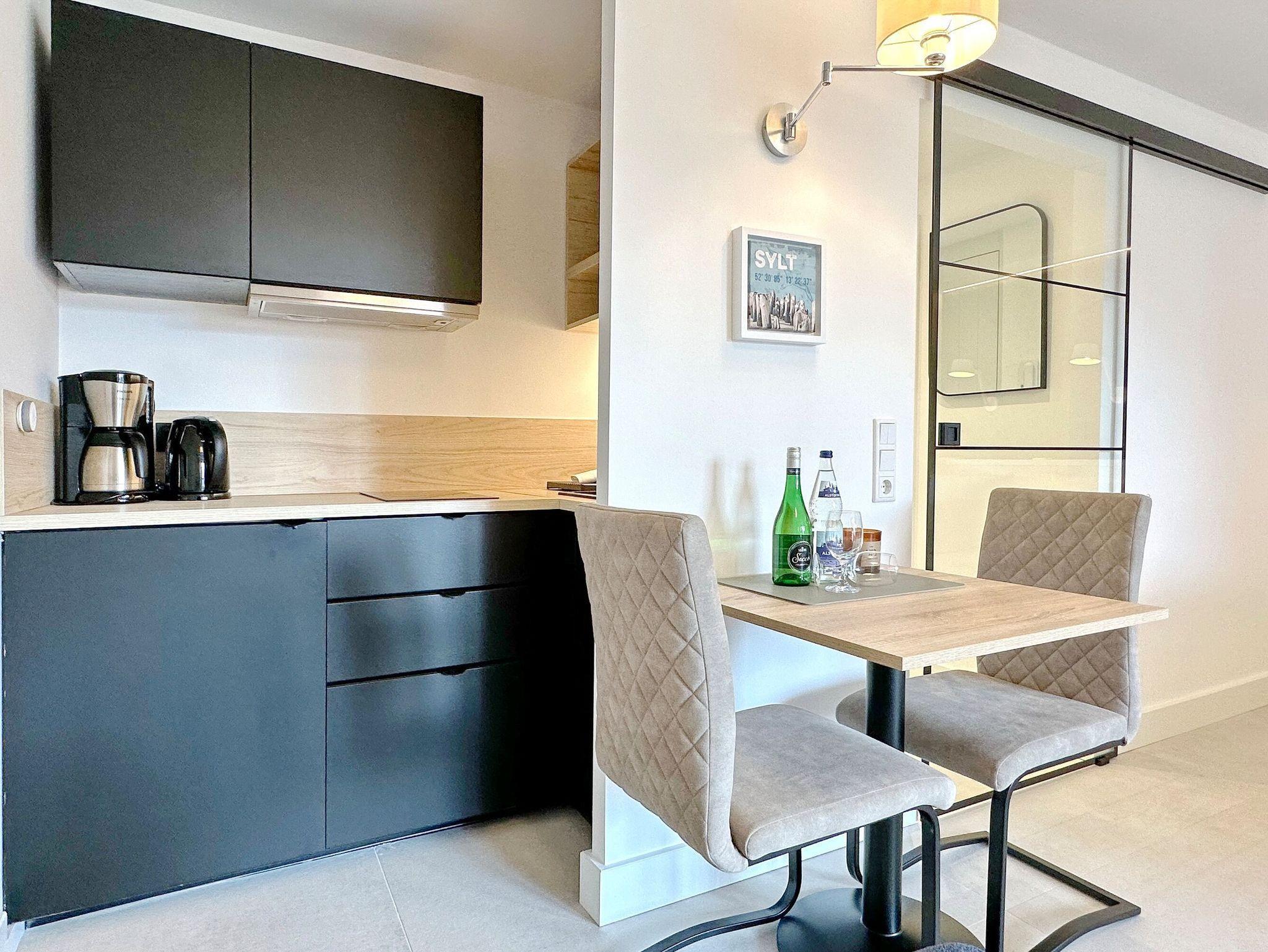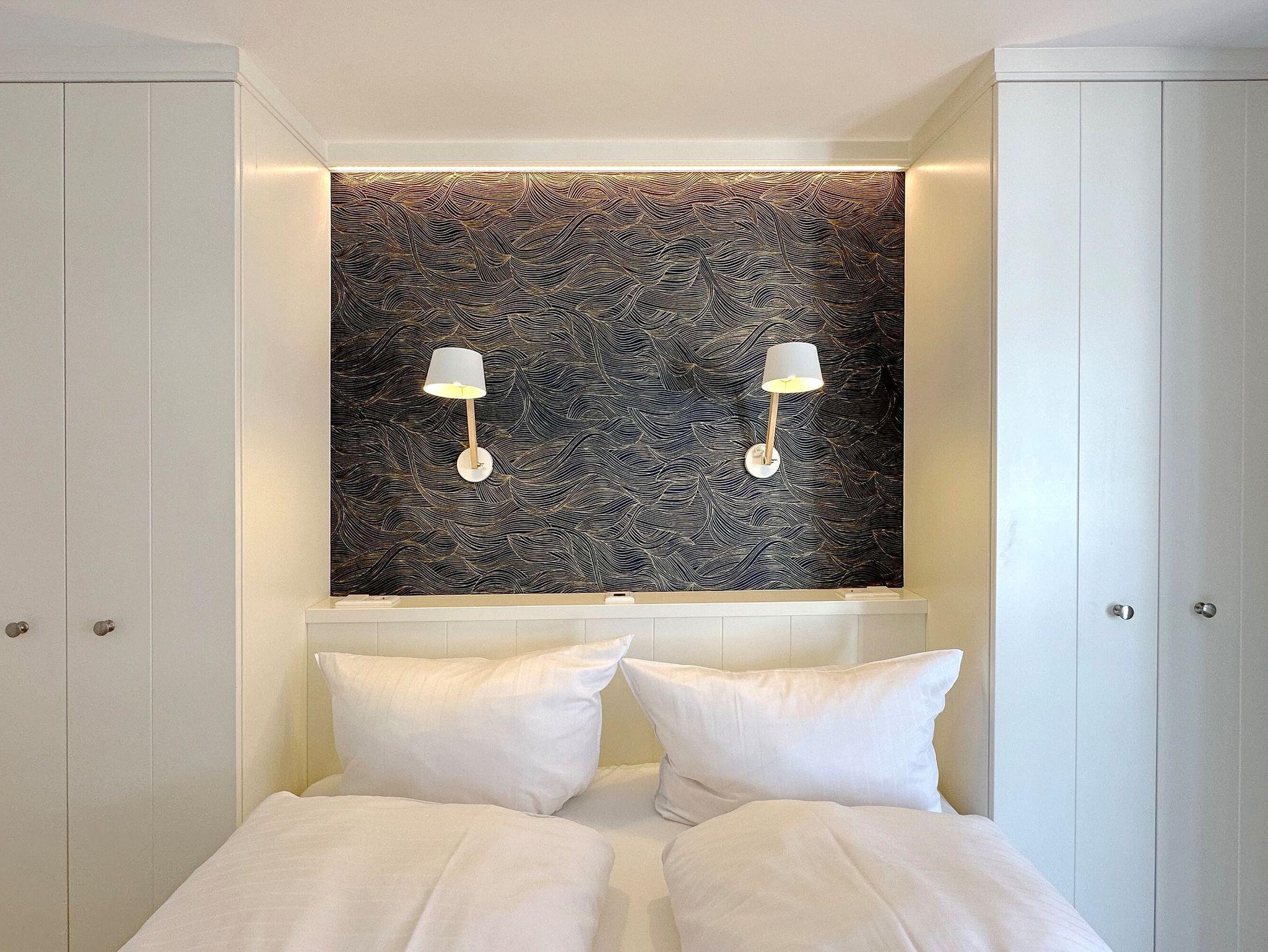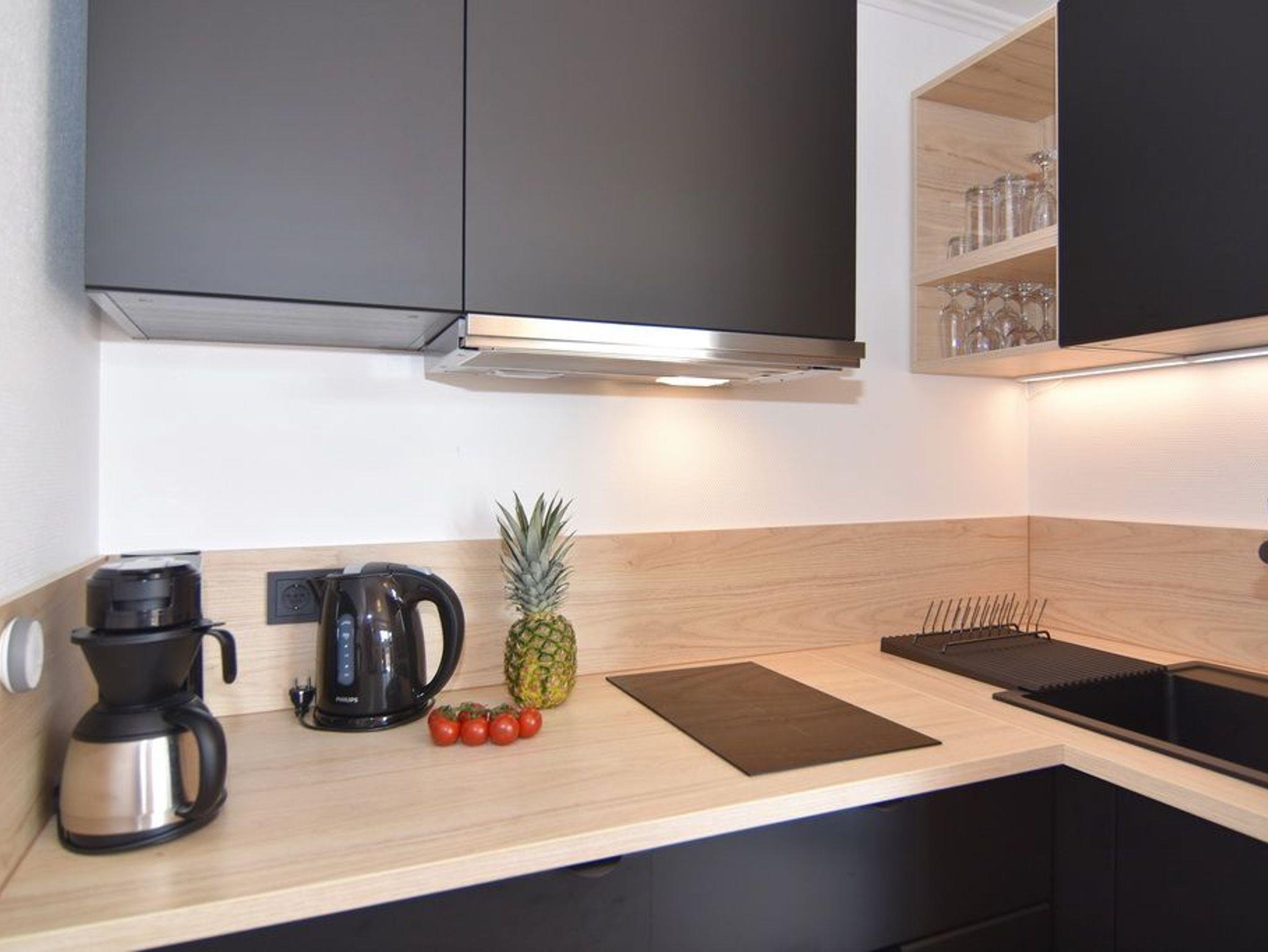 Geschmackvoll eingerichtete 1-Zimmer-Ferienwohnung im Haus Olympia 2. Nichtraucherwohnung. (1.OG). Ca. 30m². Wohn-/Schlafzimmer mit Friesenstilküche, Essplatz, 2-Sitzer-Couch, Doppelbett (160x200), Kleiderschrank, Flat-TV, Radio, W-LAN ohne Gewähr. Duschbad/WC. Südbalkon mit Balkonmöbeln. Tierhaltung nicht gestattet. Im Nebenhaus befinden sich das Schwimmbad, Dampfsauna und Finnische Sauna. Eine Waschküche mit Gemeinschaftswaschmaschine/Trockner ist vorhanden. Garagenstellplatz kann hinzugebucht werden. Bettwäsche und Handtücher sind zur Anreise aufgezogen.