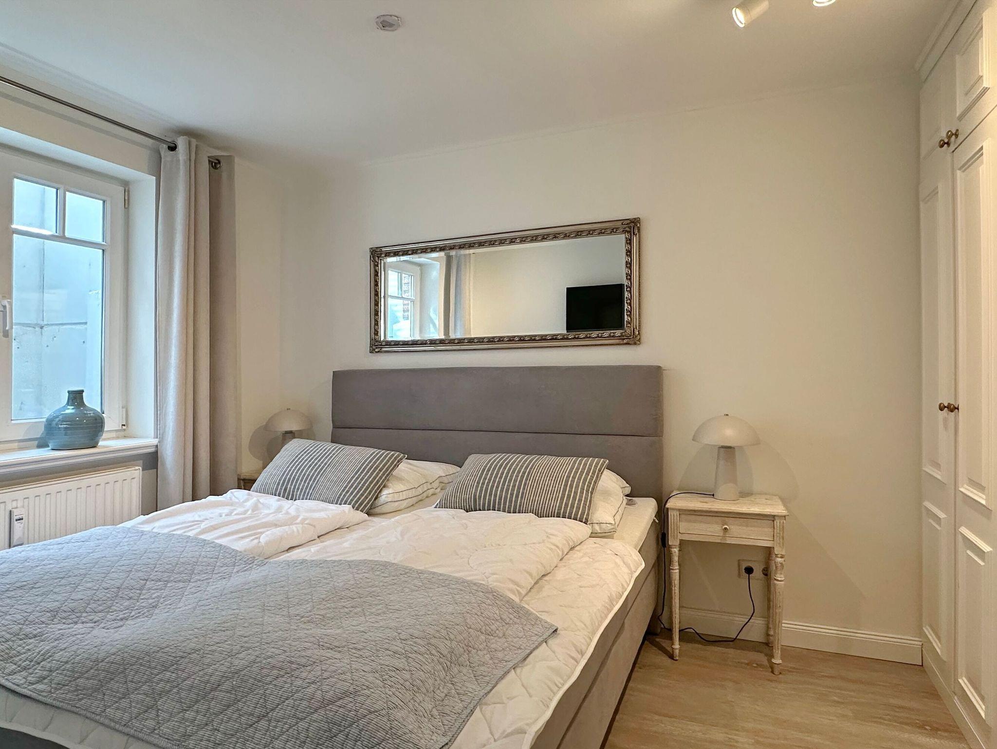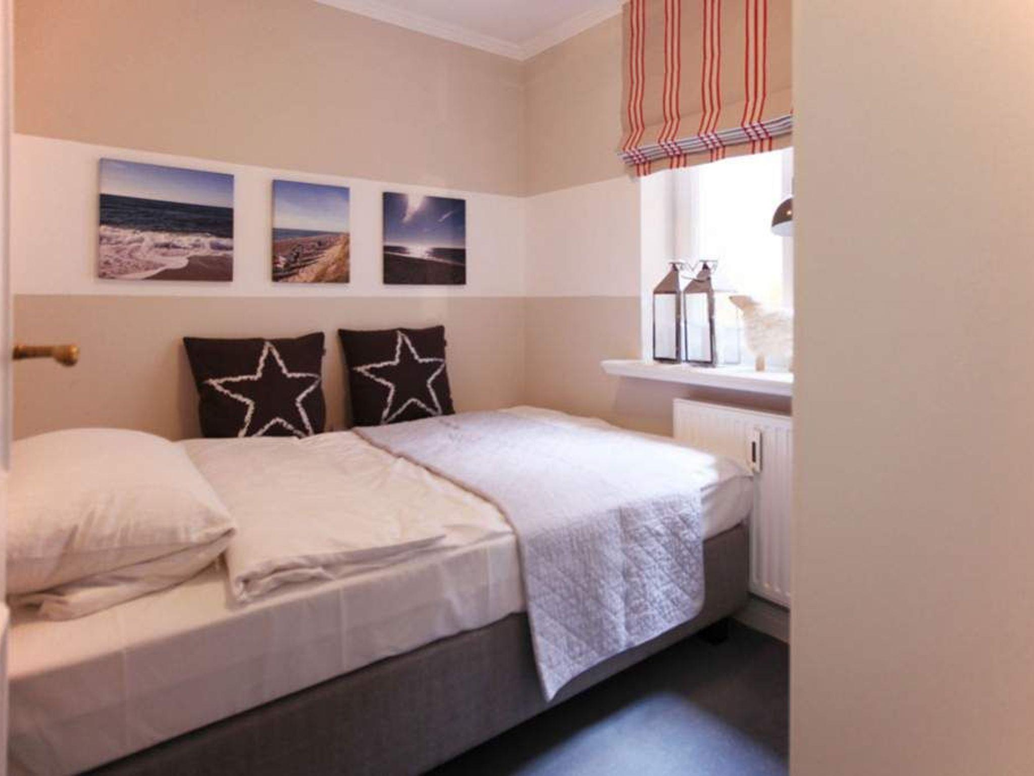 Hübsches 4-Zimmer- Apartment EG/UG im Haus Hopfengarten, ca. 67m², Nichtraucher. Gefliester Wohnraum mit Couch und Sessel, Esstisch, Radio, TV, Ost- und Südterrasse mit Strandkorb (Apr.-Okt.), offene Küche mit Geschirrspüler, Mikrowelle und Backofen, kleiner Esstresen, Duschbad/WC. UG: Schlafzimmer mit Doppelbett (180x200), Schlafzimmer mit Einzelbett (140x200), Schlafzimmer mit Einzelbett (90x200) und TV, Duschbad/WC. PKW-Stellplatz Nr. 7. Tierhaltung ist gestattet, bitte anmelden (Kampfhunde verboten). Bettwäsche und Handtücher sind zur Anreise aufgezogen.