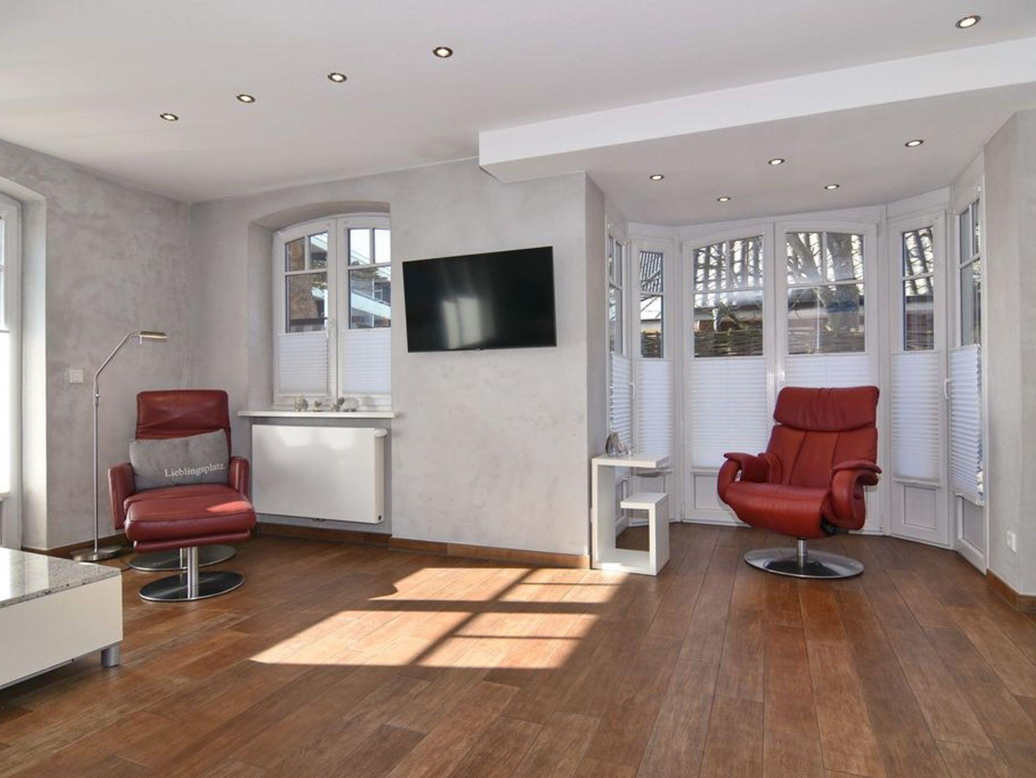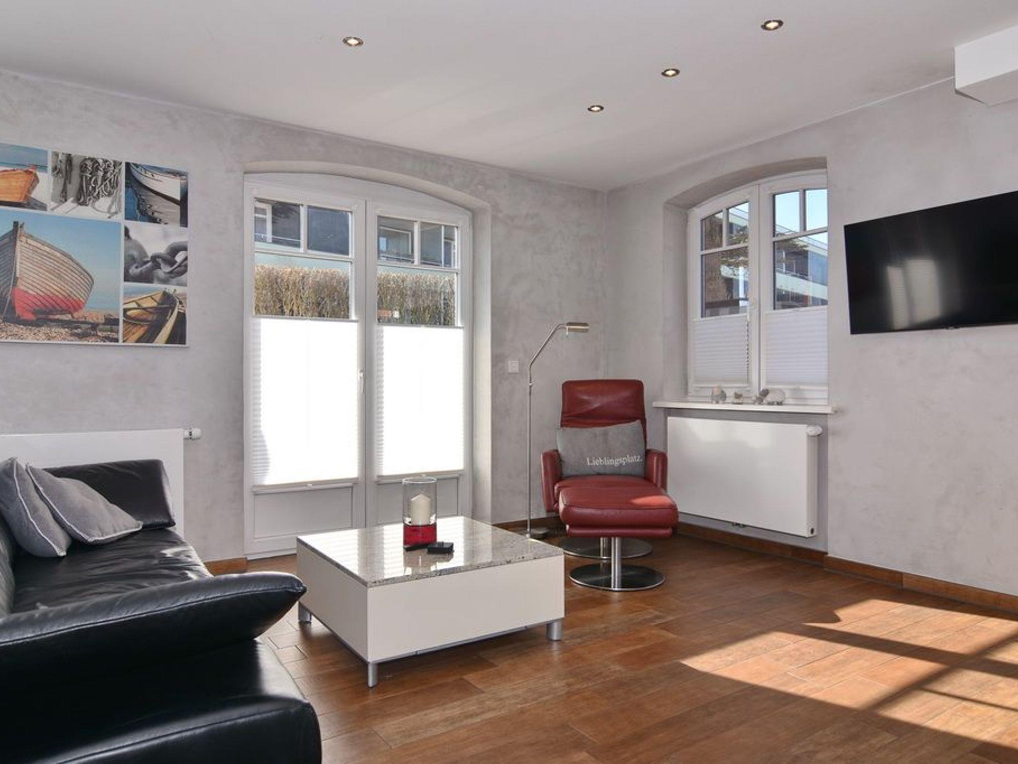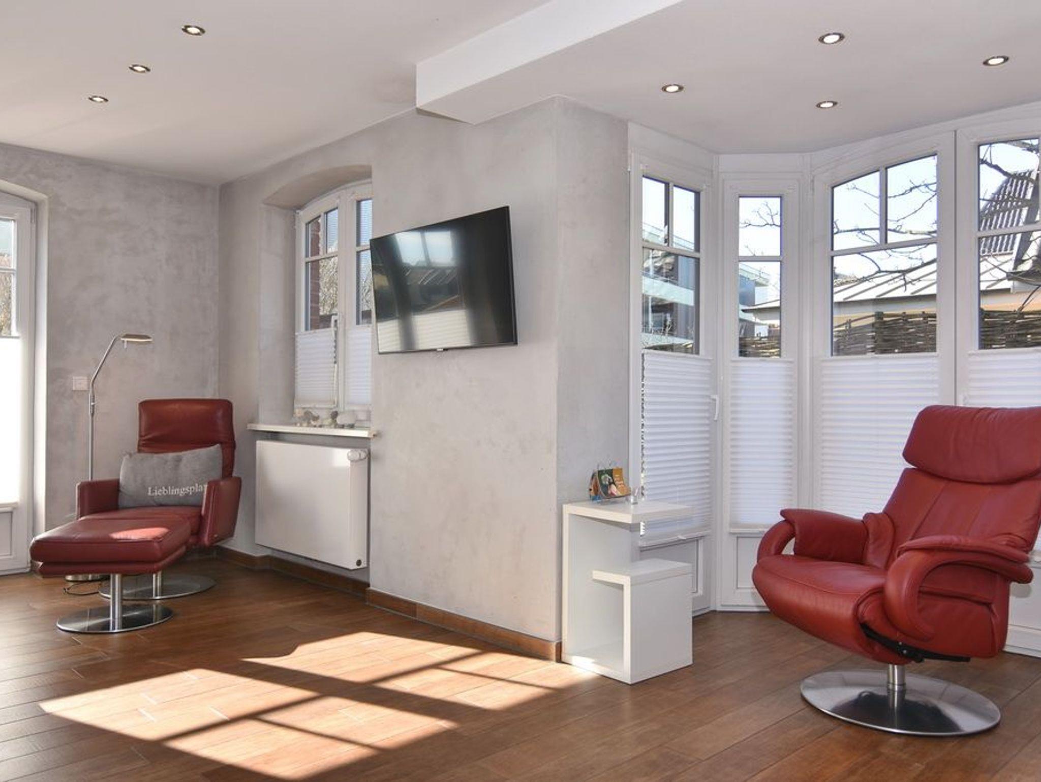 Exklusive 3-Zimmer-Ferienwohnung unweit des Badestrands. Ca. 85m², Nichtraucher! EG: großzügiges Wohnzimmer mit Ledergarnitur (3-Sitzer, 2 Sessel), Essbereich mit Lederbank und -eckbank, offene Küche mit Geschirrspüler und Mikrowelle, Süd-West-Terrasse mit Strandkorb, 4 Stühlen und Tisch, Flachbild-TV, Internet und Telefonflatrate (Festnetz), ohne Gewähr, Duschbad/WC. UG: 1 Schlafzimmer mit Boxspringbett, Flat-TV und großem Einbauschrank, 1 Schlafzimmer mit 2 Einzelbetten (190 und 200cm), Flat- TV und kleiner Abstellkammer, Duschbad /WC mit Regendusche. Waschmaschine und Trockner sind vorhanden. Pkw-Stellplatz. Tierhaltung ist nicht gestattet. Bettwäsche und Handtücher sind zur Anreise aufgezogen.