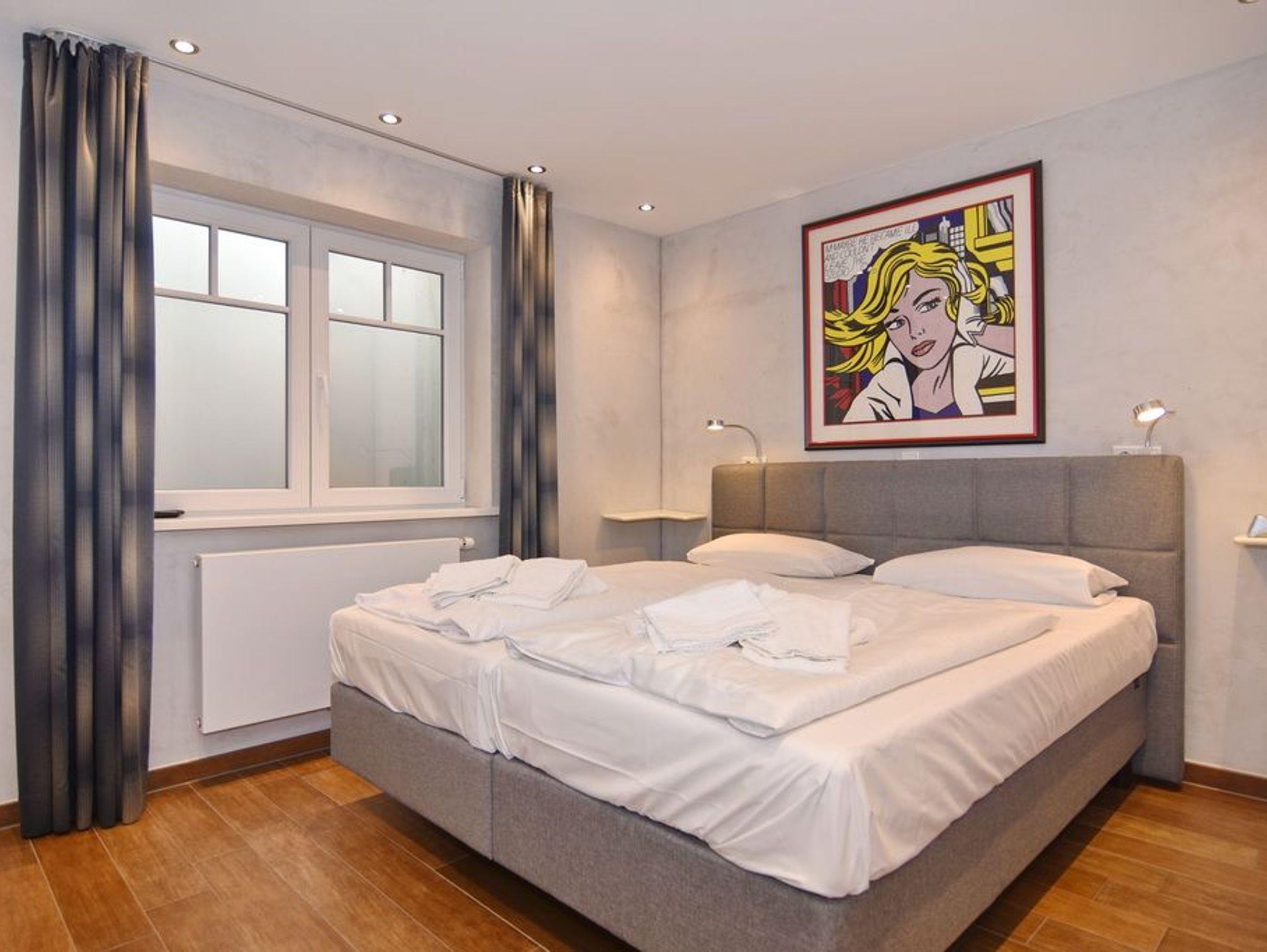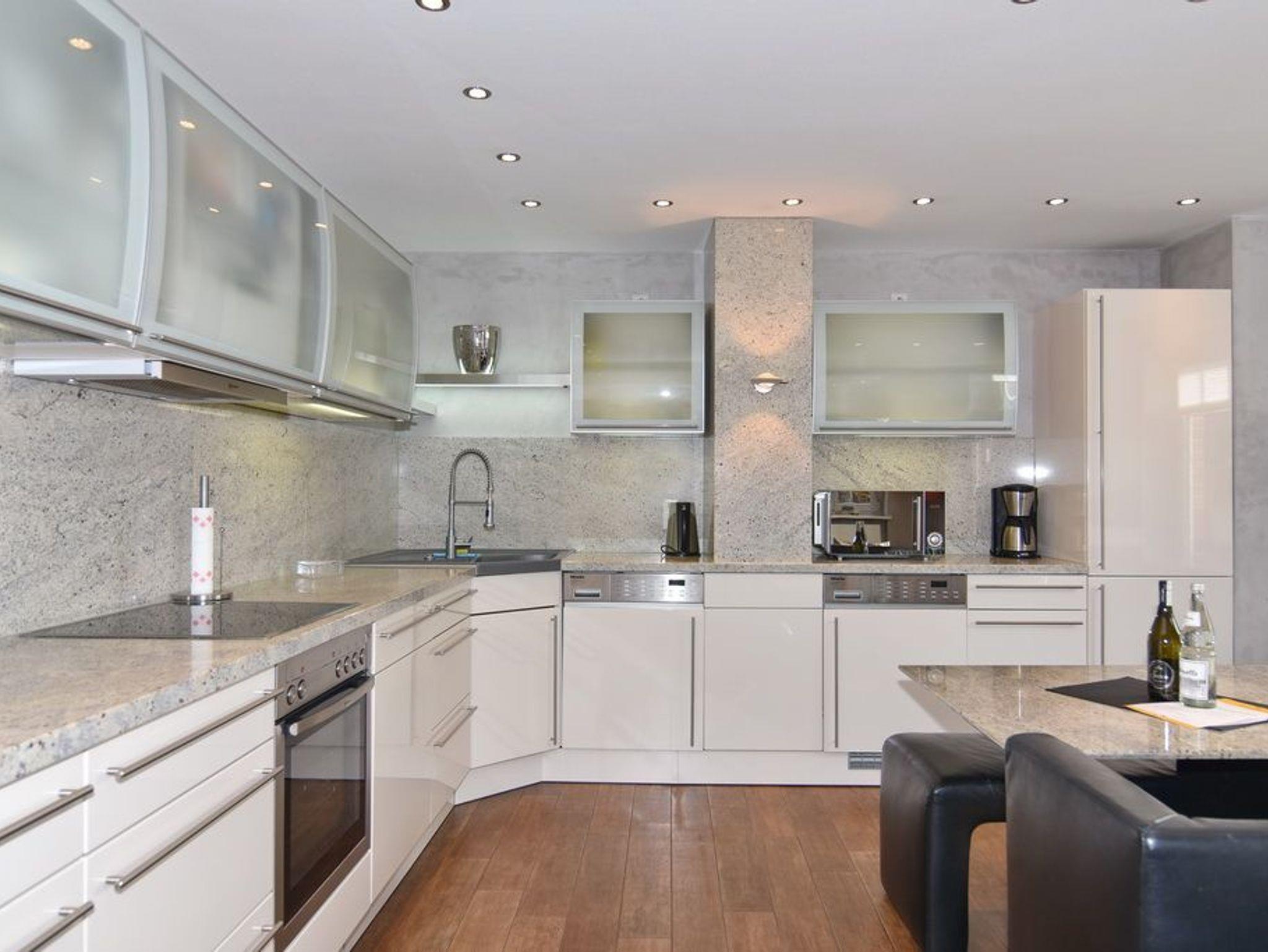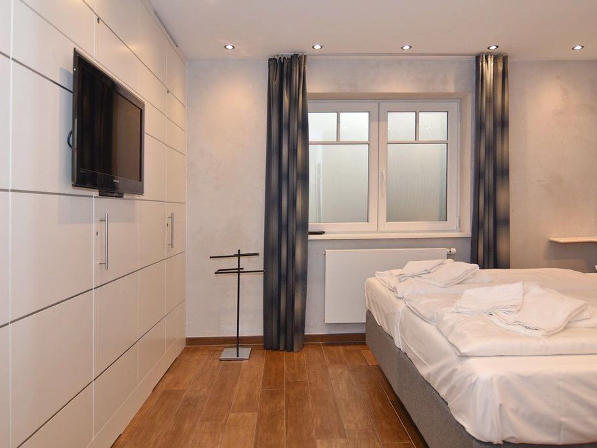 Exklusive 3-Zimmer-Ferienwohnung unweit des Badestrands. Ca. 85m², Nichtraucher! EG: großzügiges Wohnzimmer mit Ledergarnitur (3-Sitzer, 2 Sessel), Essbereich mit Lederbank und -eckbank, offene Küche mit Geschirrspüler und Mikrowelle, Süd-West-Terrasse mit Strandkorb, 4 Stühlen und Tisch, Flachbild-TV, Internet und Telefonflatrate (Festnetz), ohne Gewähr, Duschbad/WC. UG: 1 Schlafzimmer mit Boxspringbett, Flat-TV und großem Einbauschrank, 1 Schlafzimmer mit 2 Einzelbetten (190 und 200cm), Flat- TV und kleiner Abstellkammer, Duschbad /WC mit Regendusche. Waschmaschine und Trockner sind vorhanden. Pkw-Stellplatz. Tierhaltung ist nicht gestattet. Bettwäsche und Handtücher sind zur Anreise aufgezogen.