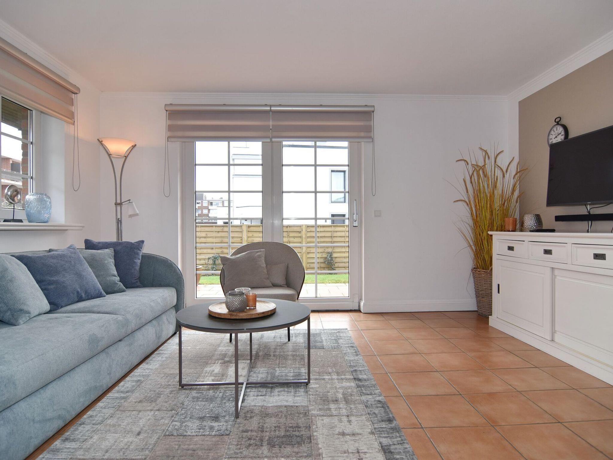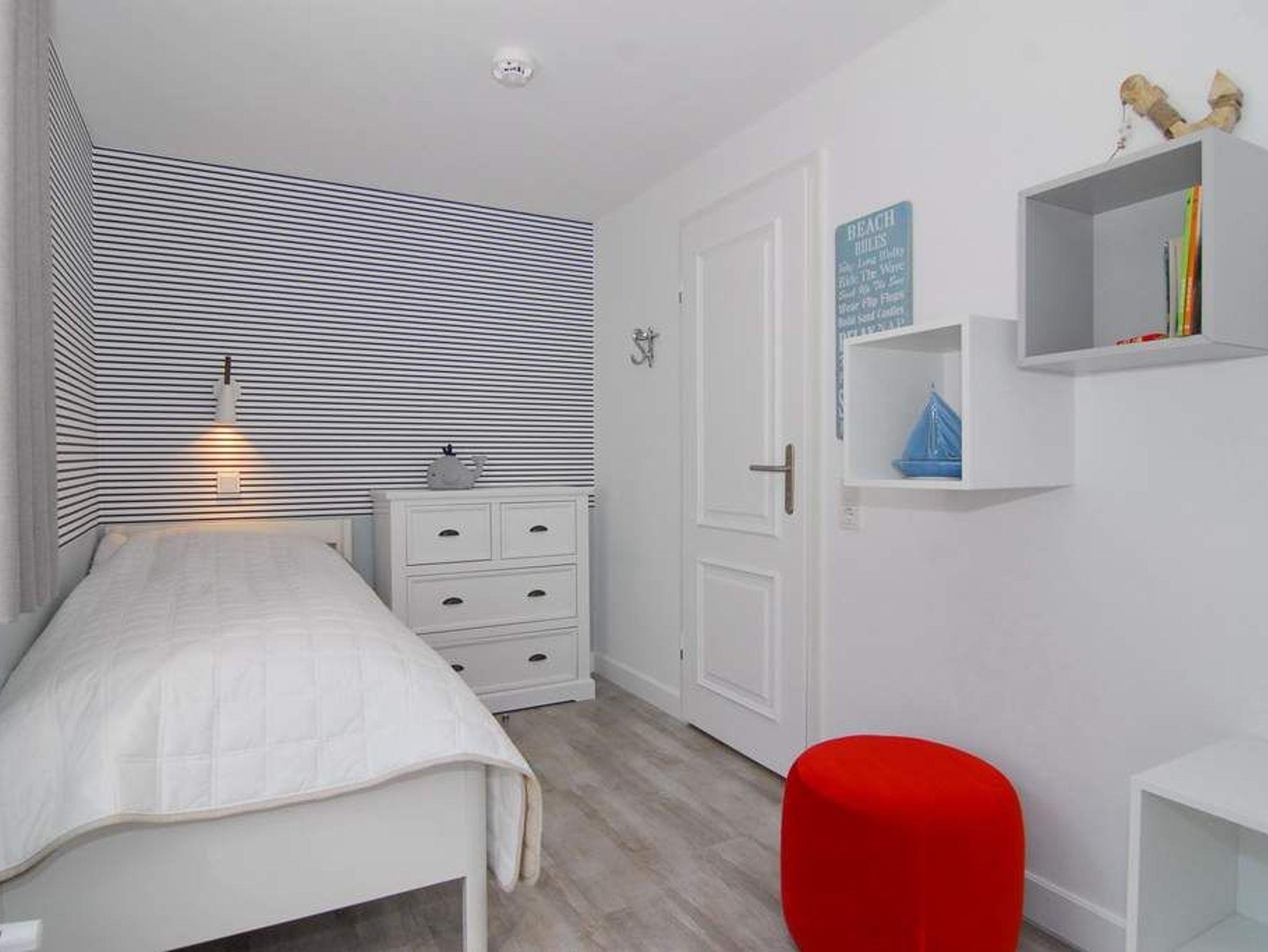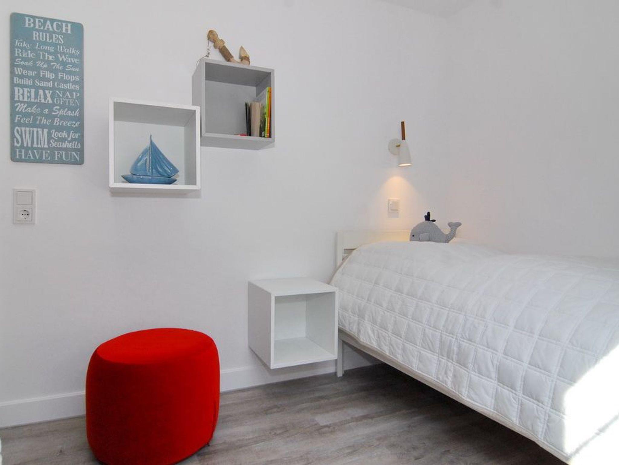 Großzügige und geschmackvolle 3-Zimmer-Ferienwohnung mit Südterrasse im Haus Olympia I, Strandkorb (Apr.-Okt.). Ca. 71m². EG: Wohnzimmer mit Sitzecke, Essecke und offener Küche mit Geschirrspüler und Mikrowelle, Kabel-TV / Stereo-Anlage mit CD, W-LAN ohne Gewähr. UG: 1 Schlafzimmer mit Doppelbett (2x90x200), 1 Schlafzimmer mit 2 Einzelbetten (2x90x190) Duschbad/WC. Nichtraucherwohnung. Tierhaltung verboten. Unter Haus 4 befindet sich das Schwimmbad mit Finnischer Sauna. Unter Haus 2 befindet sich ein separater Wellnessbereich mit Dampfsauna, Finnischer Sauna und Ruhebereich. Eine Waschküche mit Gemeinschaftswaschmaschine/Trockner ist vorhanden. Offenes W-LAN-Netzwerk steht zur Verfügung (ohne Gewähr). Bettwäsche und Handtücher sind zur Anreise aufgezogen. Ein Garagenstellplatz kann kostenpflichtig gebucht werden!