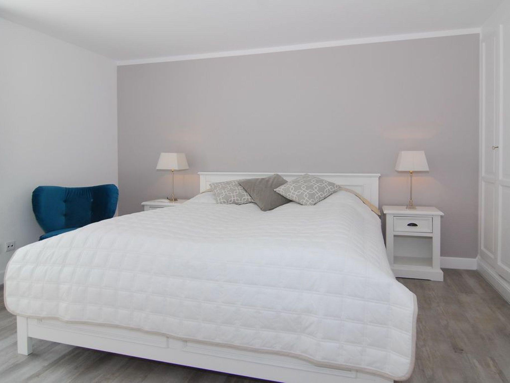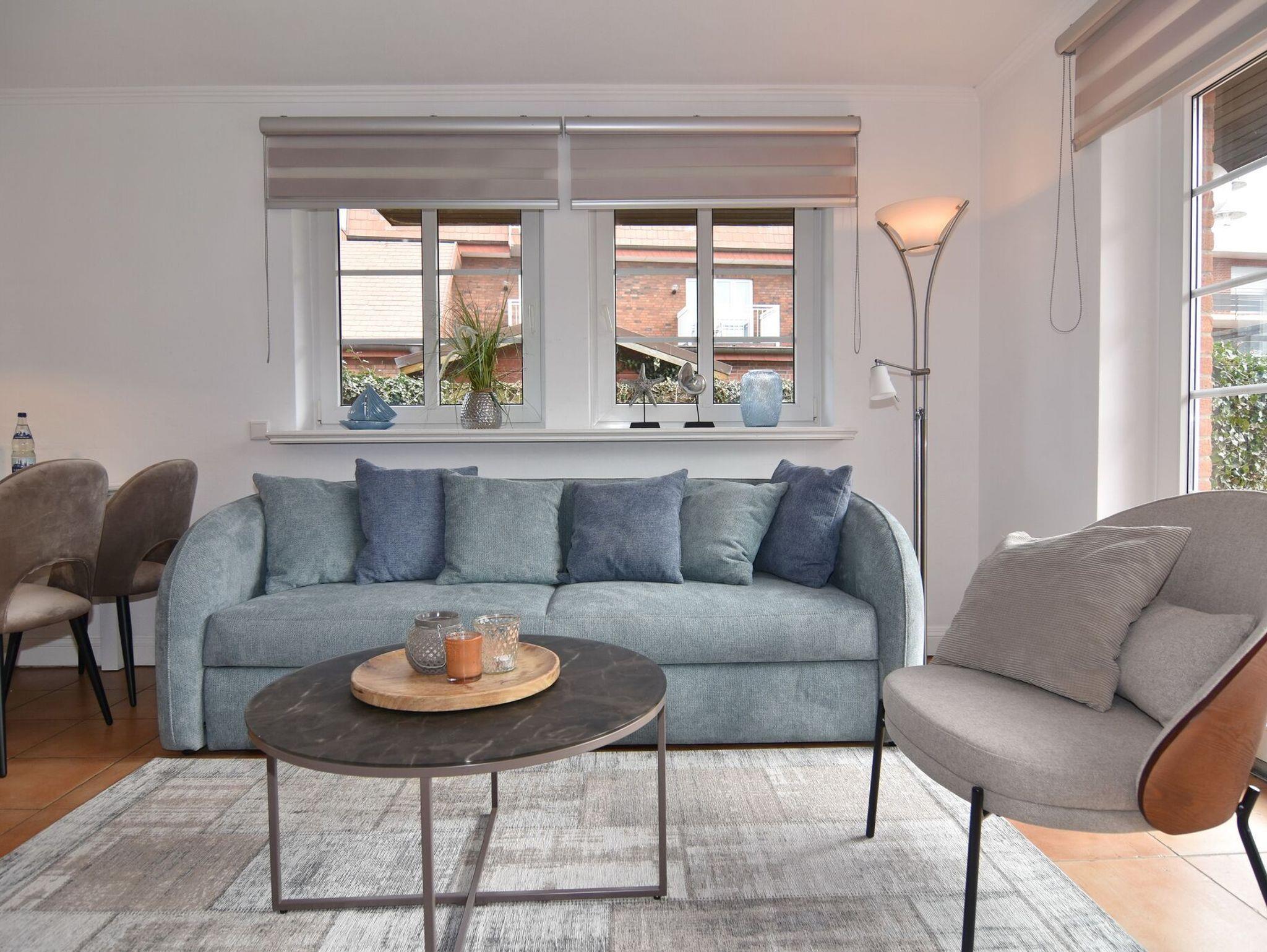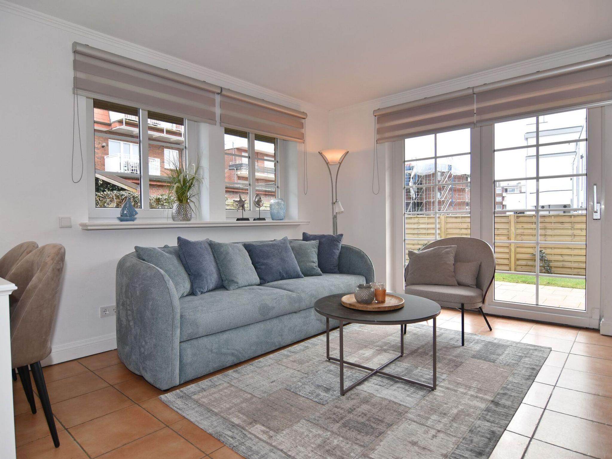 Großzügige und geschmackvolle 3-Zimmer-Ferienwohnung mit Südterrasse im Haus Olympia I, Strandkorb (Apr.-Okt.). Ca. 71m². EG: Wohnzimmer mit Sitzecke, Essecke und offener Küche mit Geschirrspüler und Mikrowelle, Kabel-TV / Stereo-Anlage mit CD, W-LAN ohne Gewähr. UG: 1 Schlafzimmer mit Doppelbett (2x90x200), 1 Schlafzimmer mit 2 Einzelbetten (2x90x190) Duschbad/WC. Nichtraucherwohnung. Tierhaltung verboten. Unter Haus 4 befindet sich das Schwimmbad mit Finnischer Sauna. Unter Haus 2 befindet sich ein separater Wellnessbereich mit Dampfsauna, Finnischer Sauna und Ruhebereich. Eine Waschküche mit Gemeinschaftswaschmaschine/Trockner ist vorhanden. Offenes W-LAN-Netzwerk steht zur Verfügung (ohne Gewähr). Bettwäsche und Handtücher sind zur Anreise aufgezogen. Ein Garagenstellplatz kann kostenpflichtig gebucht werden!