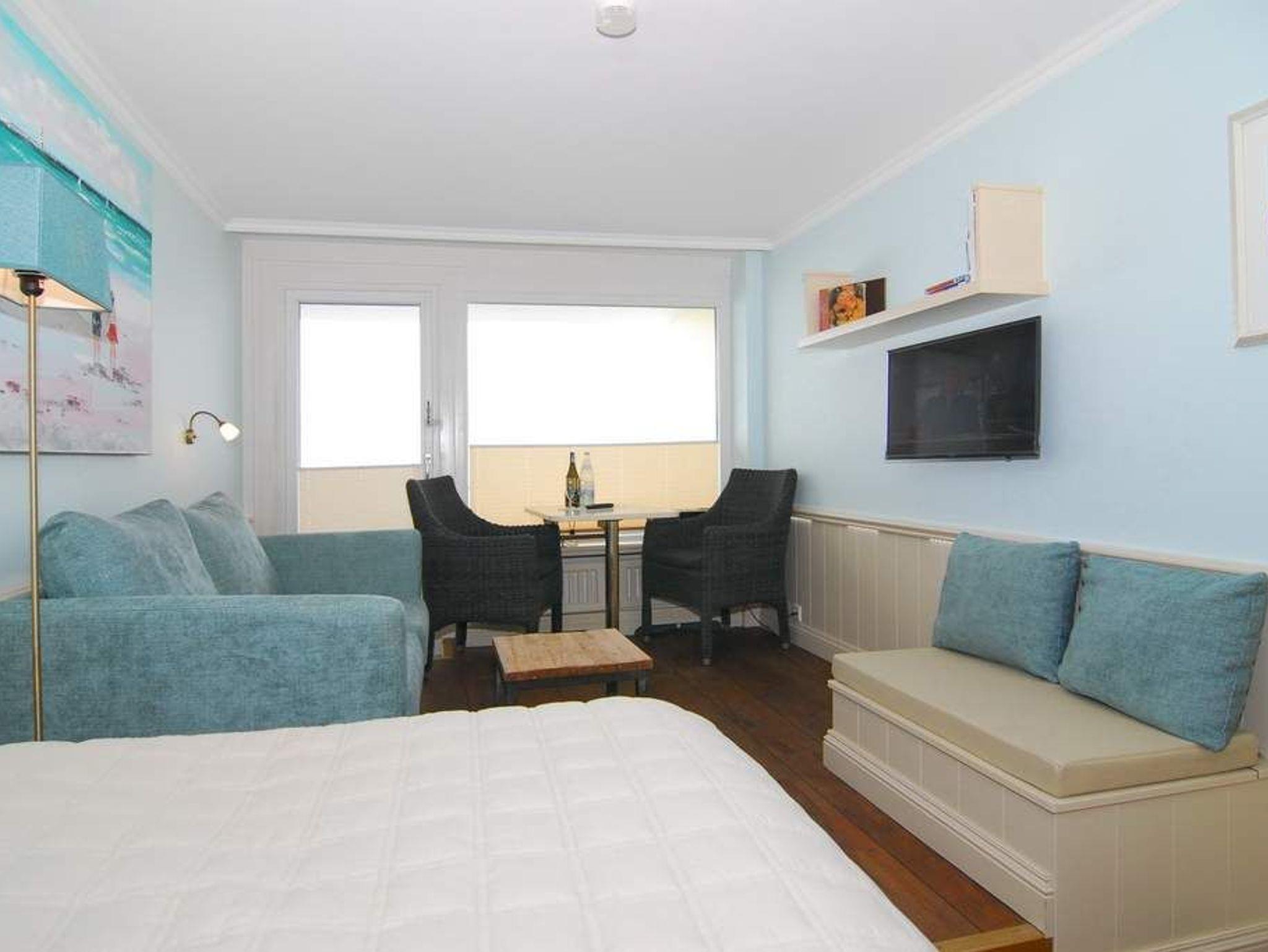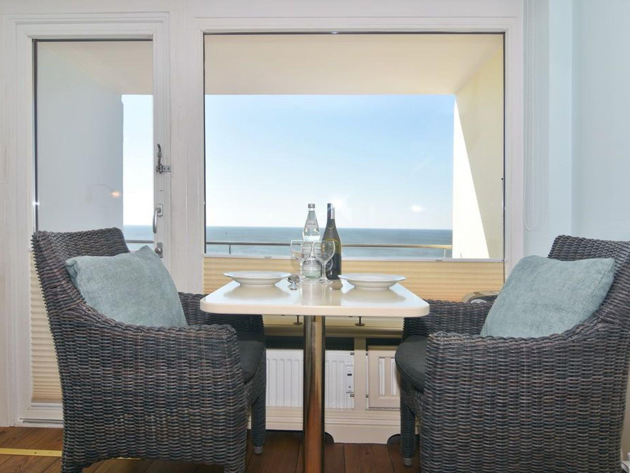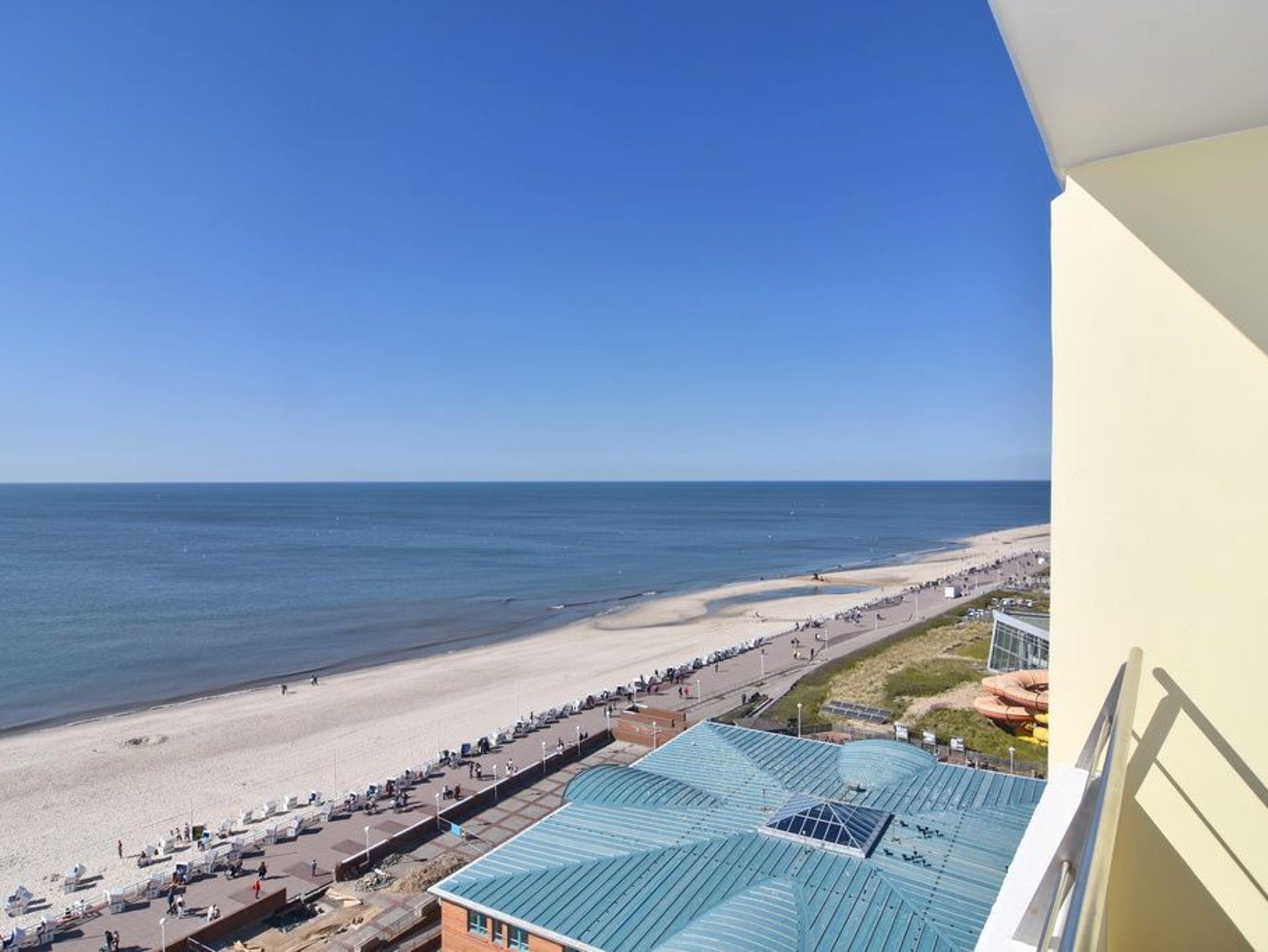 Exklusive 1-Zimmer-Ferienwohnung im 9. OG. des Haus Metropol zur Seeseite. Ca. 25m², Wohn- und Schlafzimmer mit freiem Blick auf die Nordsee, Podestdoppelbett (1,40x200), Plissees und Verdunklungsrollos. 2-Sitzer-Couch mit Beistelltisch, erhöhter Essplatz am Fenster (Achtung Stufe!). Flachbild-TV, Radio, WLAN (ohne Gewähr),[nbsp][nbsp]Badezimmer mit Dusche und Blick auf das Meer. Offene Küchenzeile im Flurbereich mit Mikrowelle, GS und Cerankochfeld. Westbalkon mit Balkonmöbeln. Tierhaltung verboten, Nichtraucherwohnung. Bettwäsche und Handtücher sind zur Anreise aufgezogen. Ein PKW-Stellplatz kann kostenpflichtig zugebucht werden.