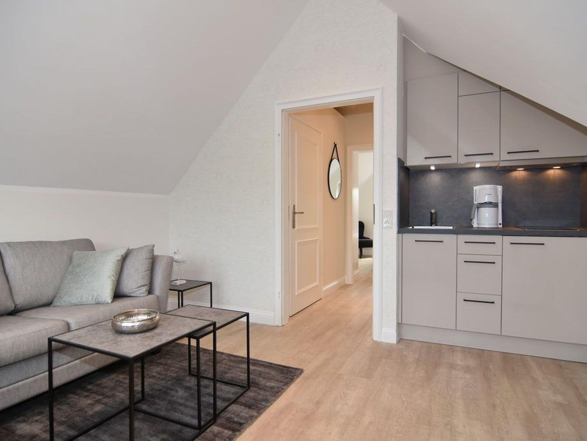 Wunderschönes 2-Zimmer-Apartment im Dachgeschoß mit moderner Ausstattung im Haus Lee. Ca. 35 m², Nichtraucher. Schönes Wohnzimmer mit moderner Kochzeile, Essplatz, bequeme 2-Sitzer-Couch, Flat-TV, Radio, W-LAN (ohne Gewähr). Duschbad/WC, separater Schlafraum mit[nbsp] (2x90x200) und Einbauschrank. Kostenlose Nutzung des Schwimmbades und der Sauna. Münzwaschmaschine und -trockner. Parken ist an der Straße möglich. Tierhaltung nicht gestattet. Bettwäsche und Handtücher sind zur Anreise aufgezogen!