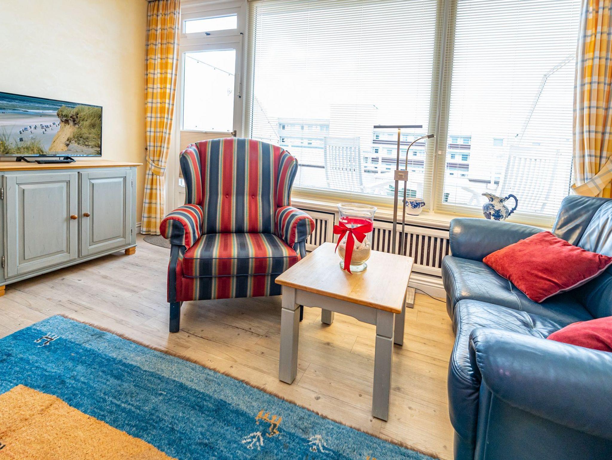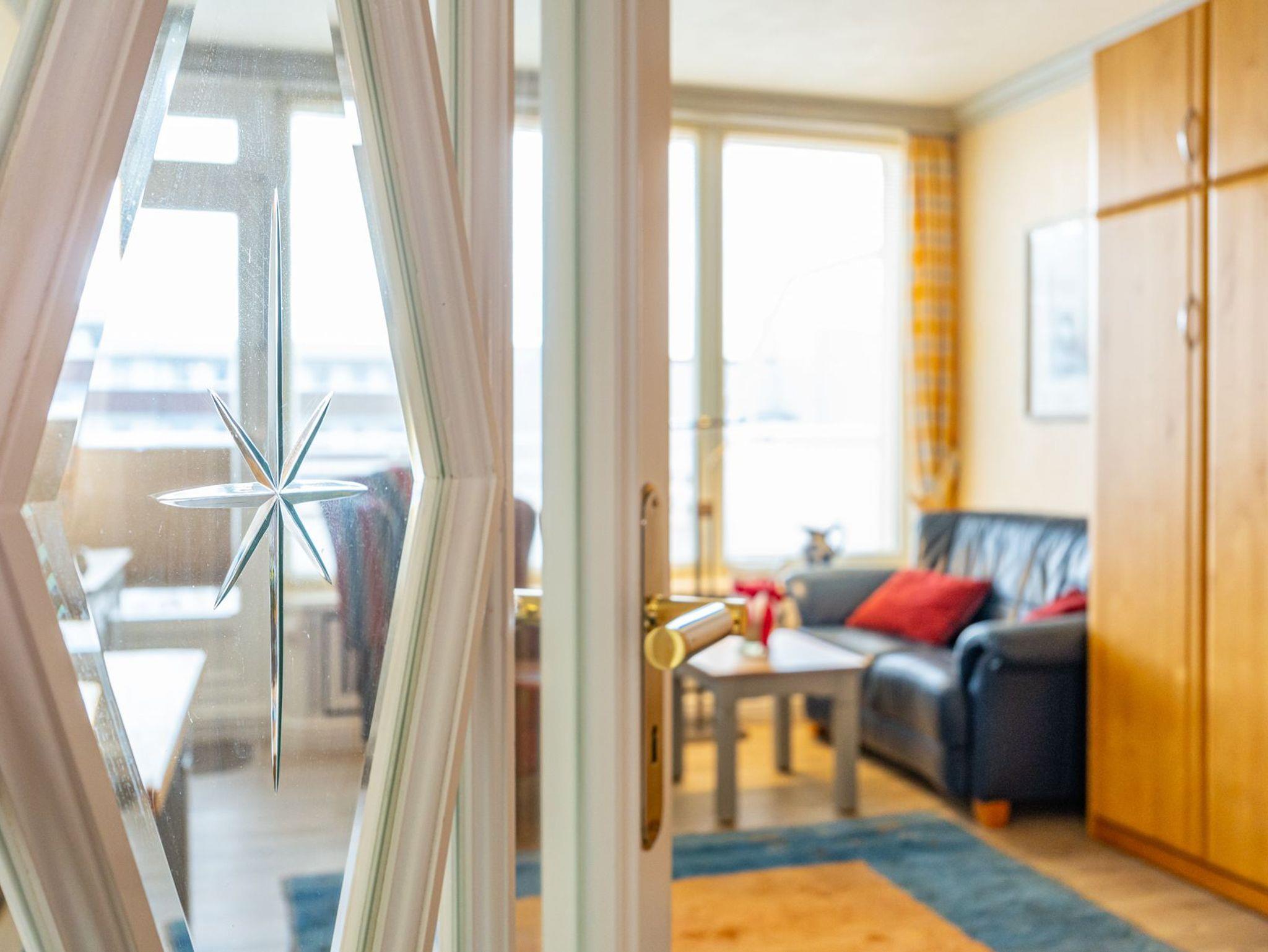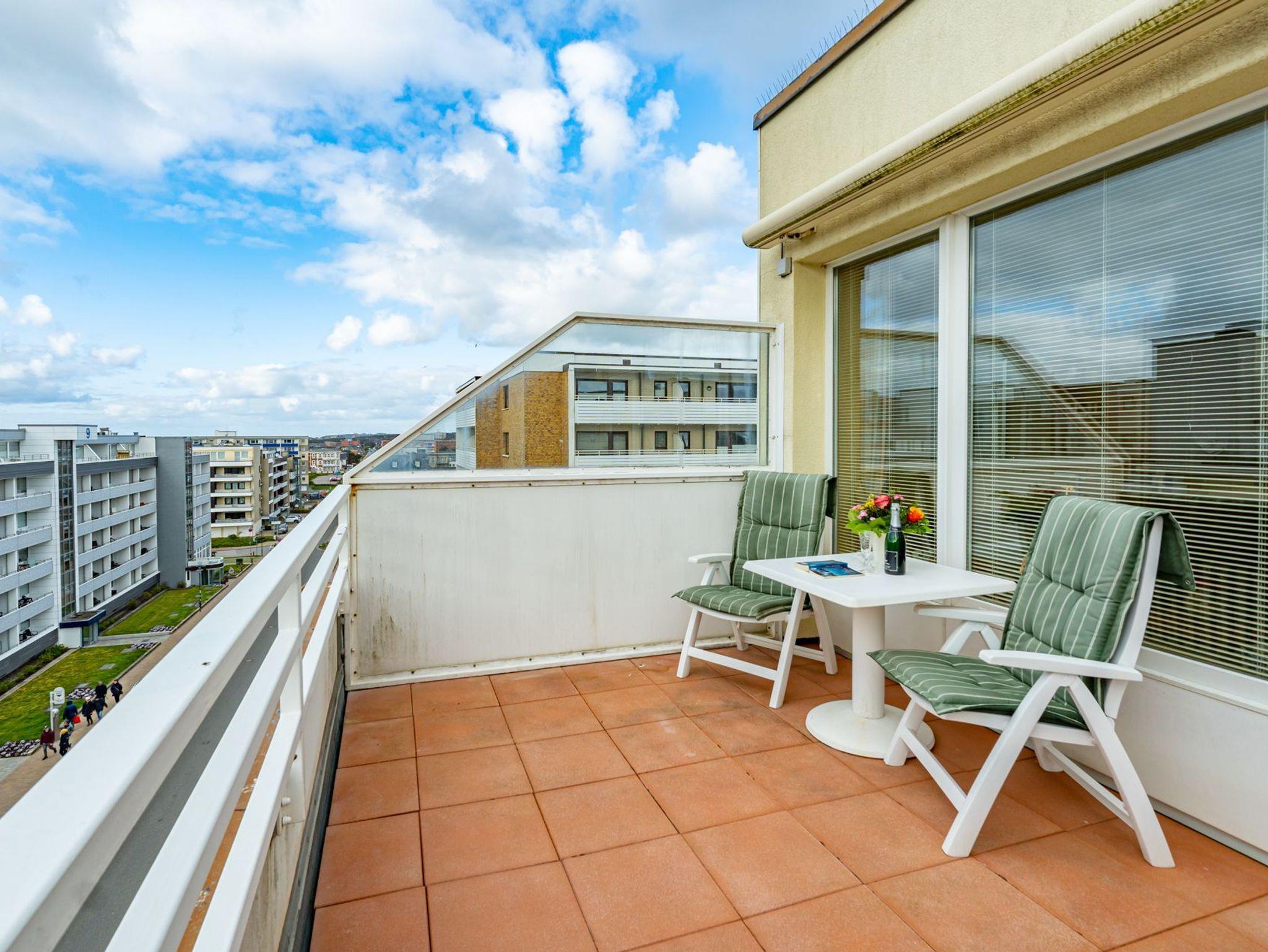 Gemütliche 1-Zimmer-Nichtraucher-Ferienwohnung (ca. 30 qm) in der 5. Etage, ganz oben, mit großzügigem Westbalkon (Nachmittagssonne mit Balkonmöbeln und ausfahrbarer Markise) ideal für 2 Personen.