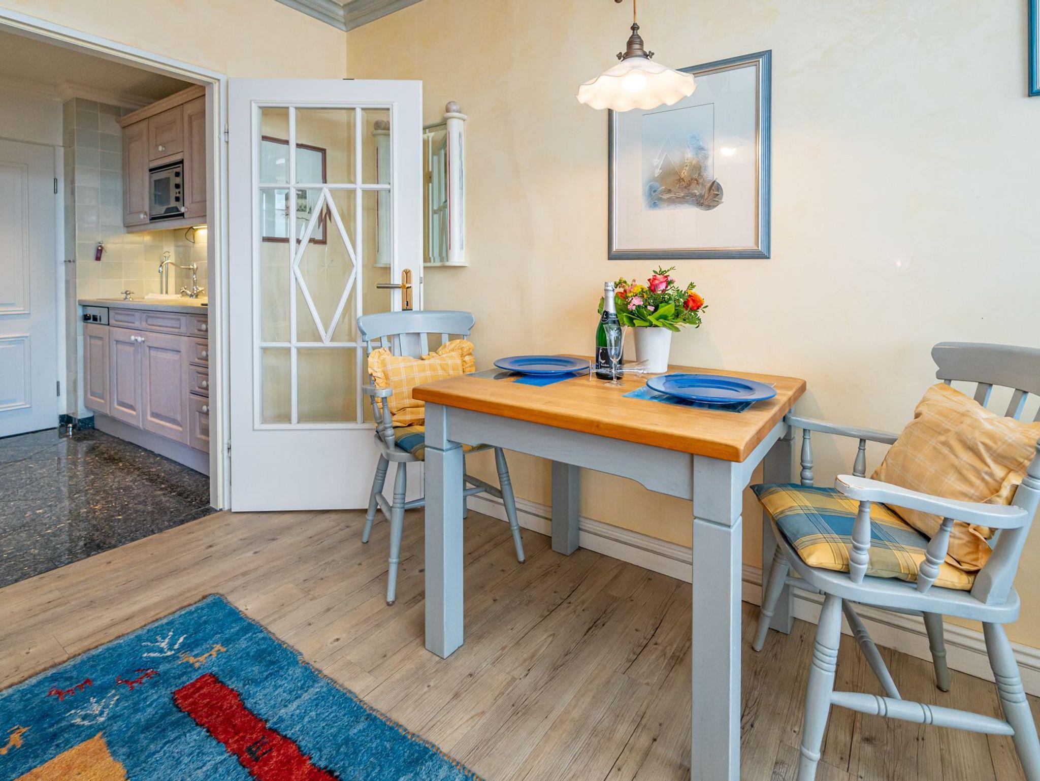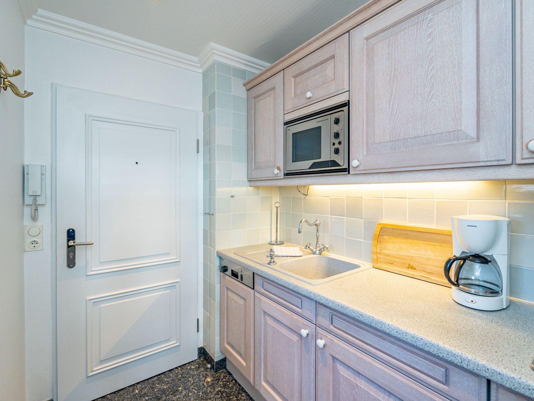Die Küchenzeile besitzt einen Geschirrspüler, ein Cerankochfeld mit 2 Feldern, eine Mikrowelle, einen Kühlschrank. Kaffeemaschine, Wasserkocher und Toaster gehören zur Grundausstattung.
