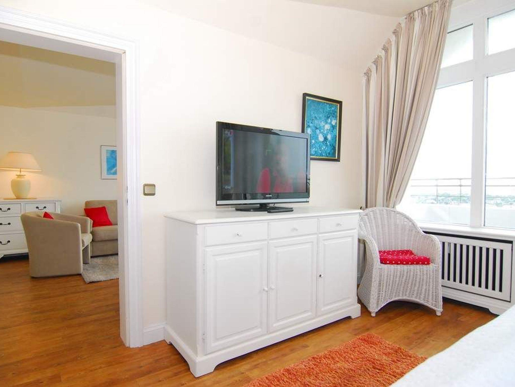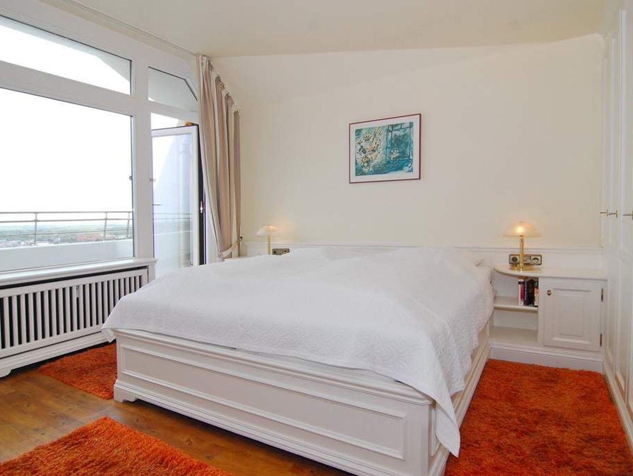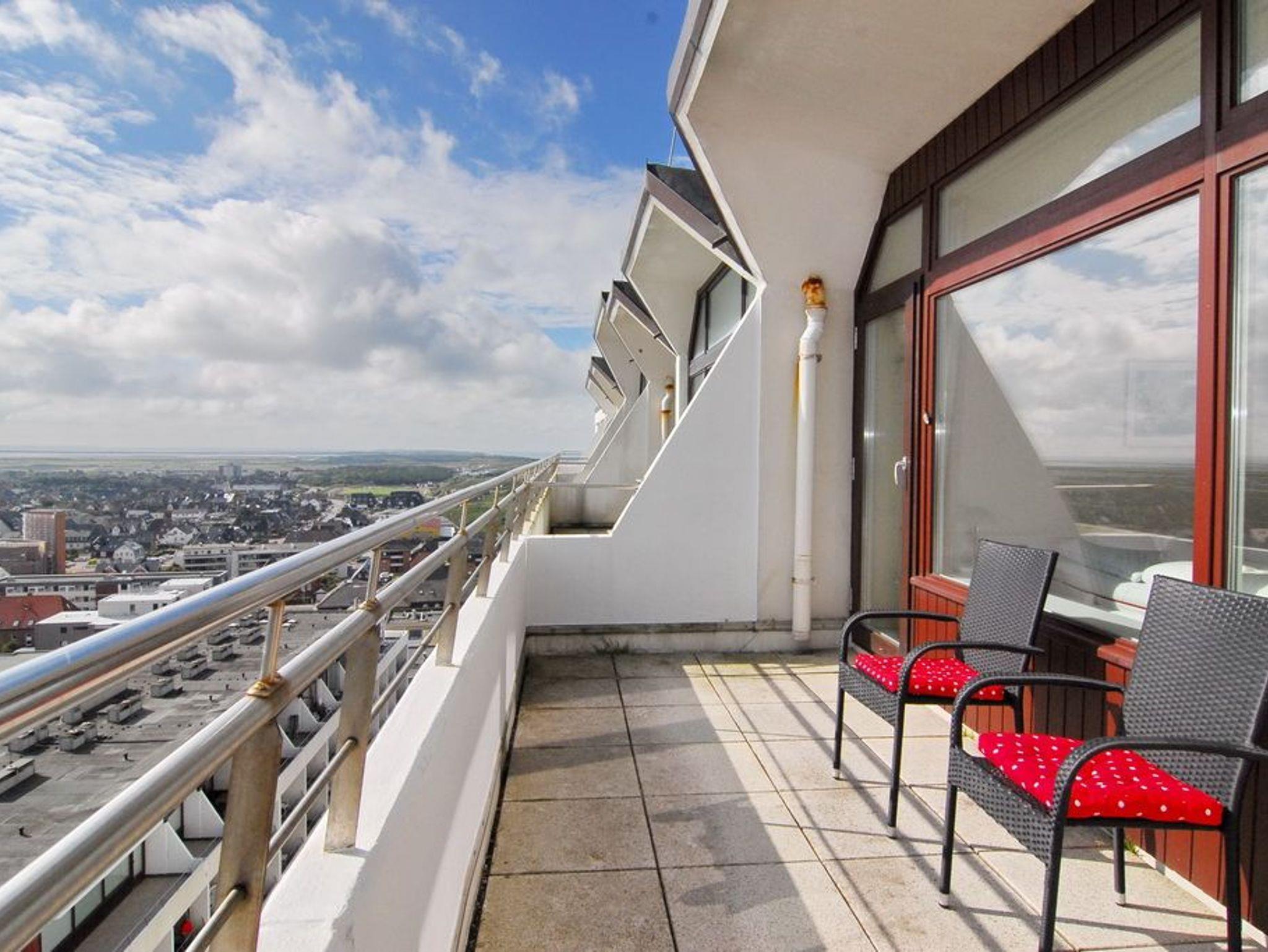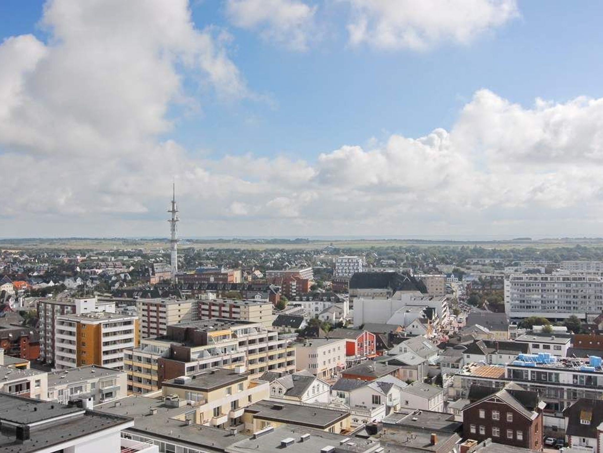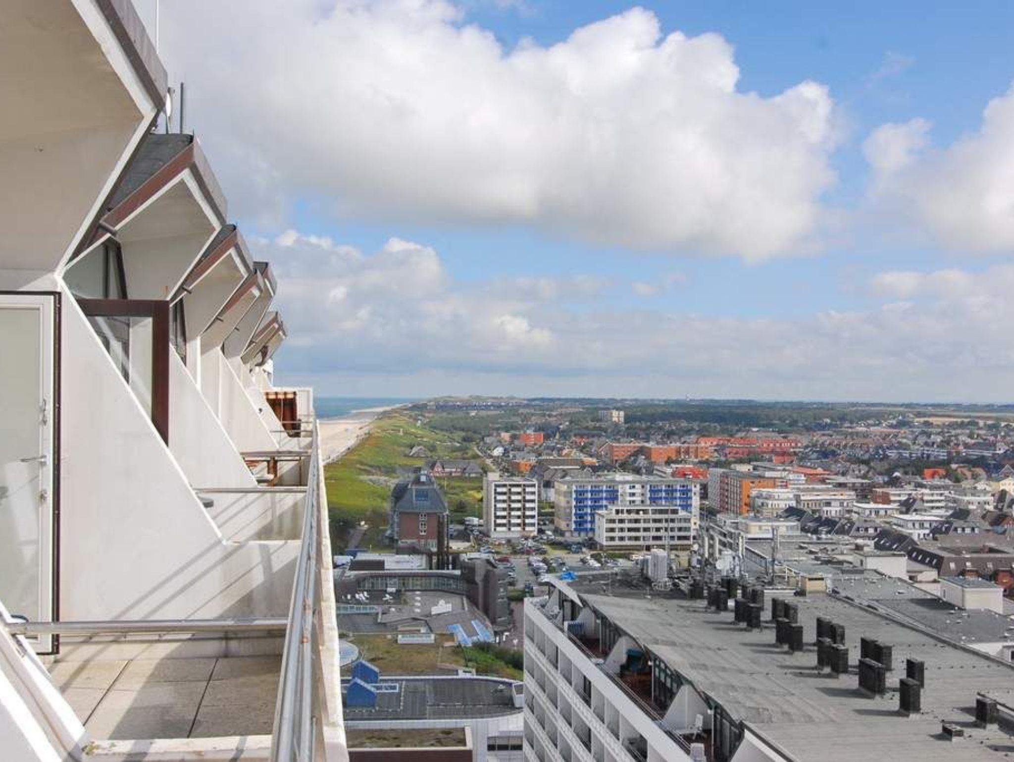 2-Zimmer-Penthouse (ca. 60m²) im Haus Metropol mit großer Dachterrasse im 14.OG und mit Traumblick über die Insel bis zum Wattenmeer. Nichtraucher-Whg.! Wohnzimmer mit Schlafcouch (150x190), Sessel, Essplatz am Fenster, Kabel-TV/Radio, WLAN (ohne Gewähr), Zugang zur Dachterrasse. Schlafzimmer mit Doppelbett (2x90x200), Einbauschränken und TV sowie Zugang zur Dachterrasse und Duschbad ensuite. Separate Küche mit Geschirrspüler/Mikrowelle. Gäste-WC und Diele mit großem Garderobenschrank. Tierhaltung ist nicht gestattet. PKW-Stellplatz/Garage kann kostenpflichtig gebucht werden. Bettwäsche und Handtücher sind zur Anreise aufgezogen. Achtung: Der Fahrstuhl geht nur bis zur 13. Etage.