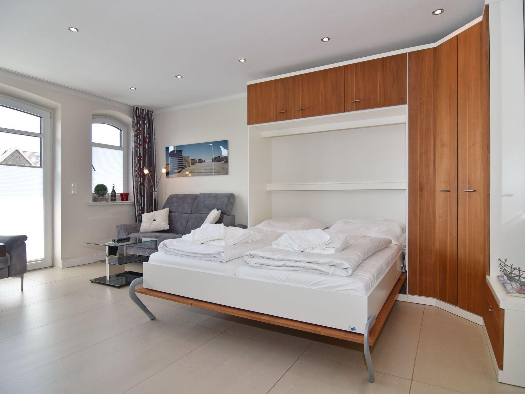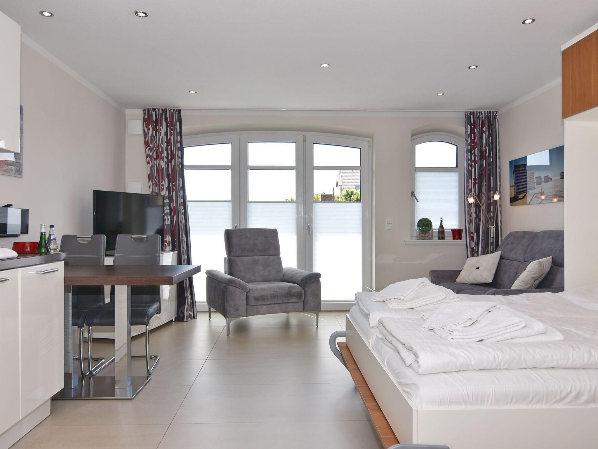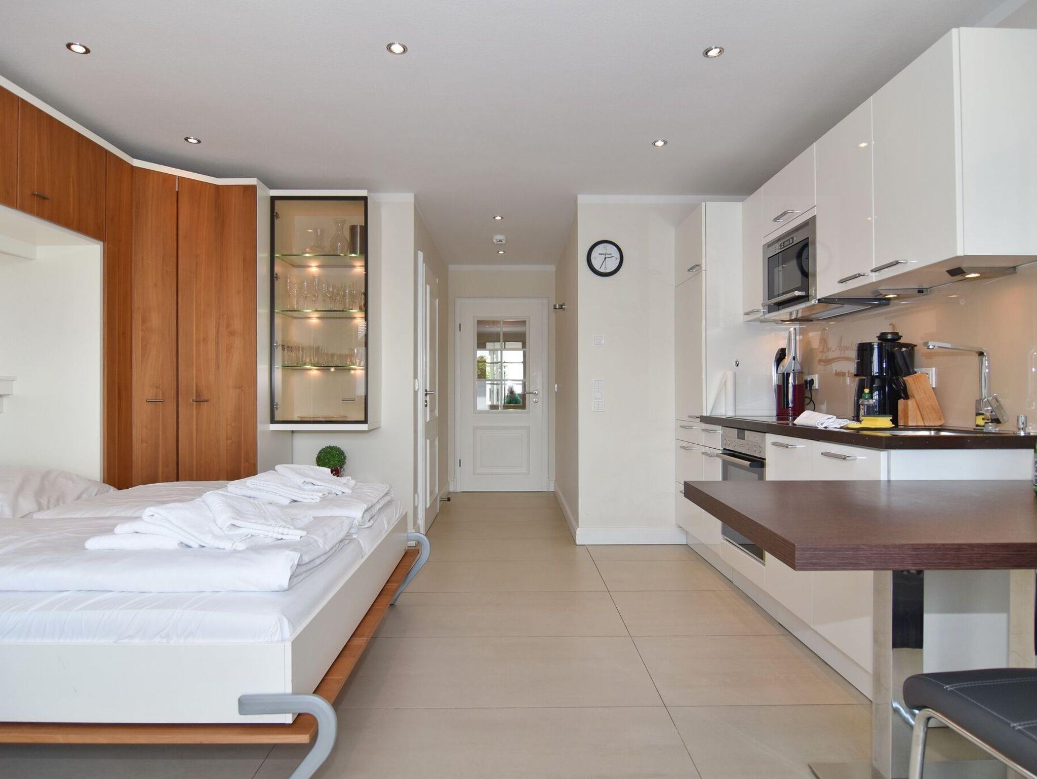 Exklusive 1-Zimmer-Ferienwohnung in der Residenz Alva mit Wellnessbereich (Pool, Sauna, Dampfsauna) unweit des Badestrands und der Fußgängerzone. Ca. 35m². Nichtraucher! 1. OG. Wohn-/Schlafraum mit Doppelschrankbett (2 Matratzen, 160*200), Couch, Sessel und Essplatz, Flat-TV mit BlueRay-Player, WLAN und Telefon-Flatrate ins deutsche Festnetz, Stereoanlage mit CD und iPhone-Adapter, Küchenzeile mit Geschirrspüler, Mikrowelle und Backofen, Südbalkon mit Balkonmöbeln, Duschbad/WC, Flur mit Einbauschrank. Pkw-Stellplatz Nr.9. Waschküche (gegen Gebühr). Bettwäsche und Handtücher sind zur Anreise aufgezogen. Tierhaltung ist nicht gestattet! Auf dem östlich angrenzenden Nachbargrundstück entsteht ab März 2024 ein Neubauvorhaben, hier kann es zu Lärmbelästigungen kommen.