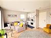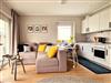 Die helle Küchenzeile besitzt ein Cerankochfeld mit 4 Feldern, Nespressomaschine und einen Kühlschrank mit 3*-Gefrierfach.