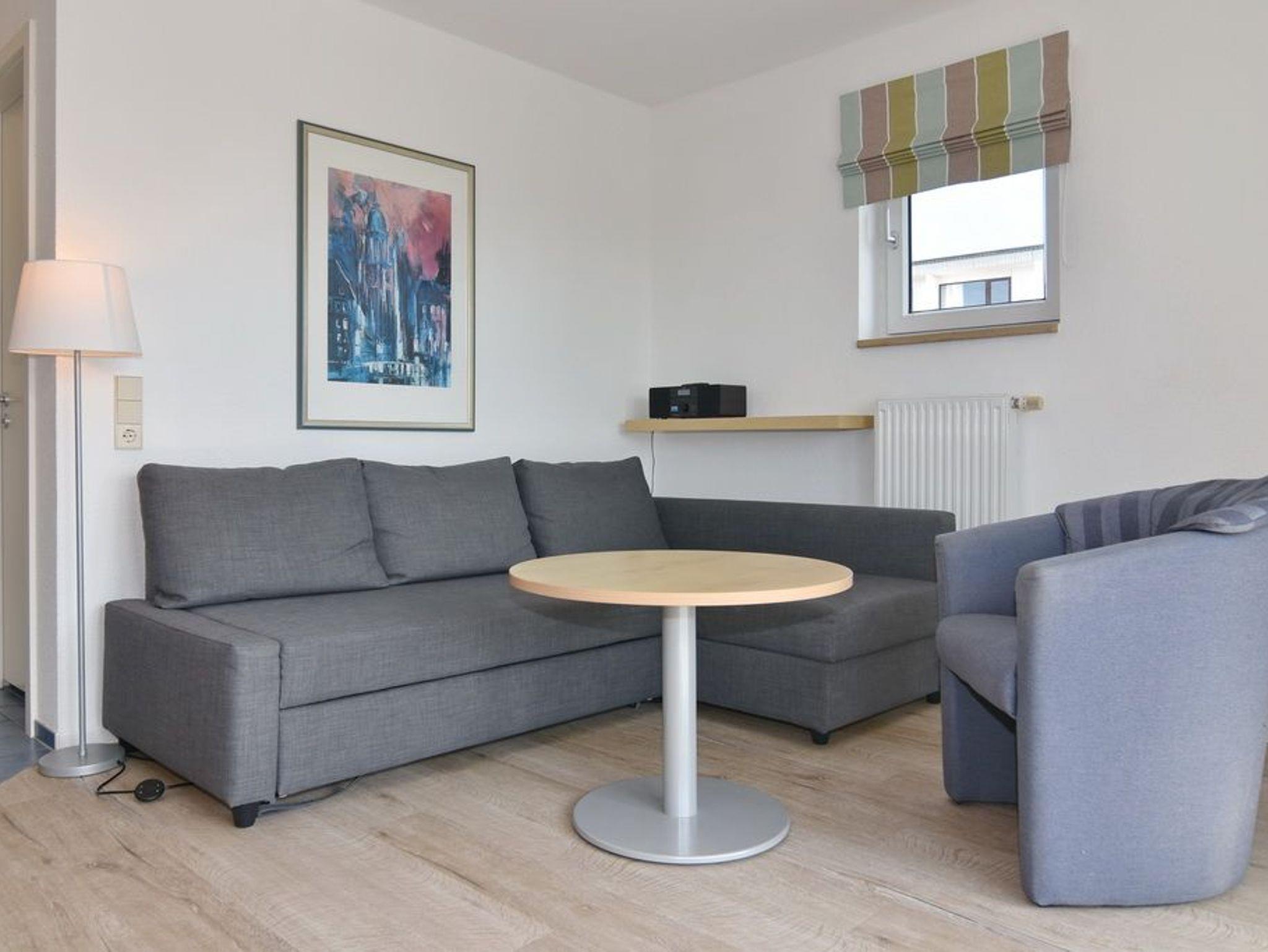 Moderne 2-Zimmer-Ferienwohnung im blauen Haus, ca. 37m². Nichtraucher-Whg.! 1. OG. Wohnraum mit Südbalkon, Essplatz, 2-Sitzer-Schlafcouch u. Sessel, Kabel-TV, Küchenzeile mit Mikrow. u. Geschirrspüler, kl. Schlafzimmer mit Doppelbett (160X200cm), Flur, Duschbad/WC. Internetanschluß. Waschküche und Fahrradkeller im Nebenhaus Mauriitus. Pkw-Stellplatz kann kostenpflichtig hinzugebucht werden. Bettwäsche und Handtücher sind zur Anreise aufgezogen! Internet (ohne Gewähr) Tierhaltung ist nicht gestattet.